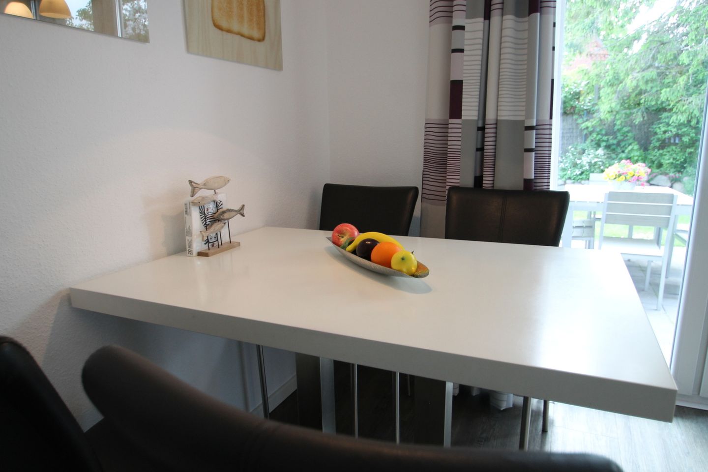 Verbringen Sie gemütliche Stunden auf der großzügigen Terrasse im Garten, die mit bequemen Gartenmöbeln ausgestattet ist. Hier können Sie das milde Ostseewetter genießen, vielleicht beim gemeinsamen Essen oder einfach beim Entspannen. Die umliegende Landschaft lädt zudem zu ausgedehnten Spaziergängen oder einer Partie Tischtennis am Strand ein.