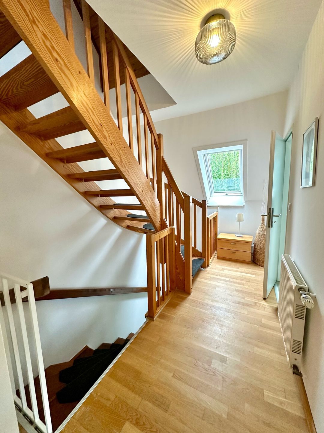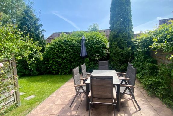 Schönes Endreihenhaus in einer ruhigen Wohnstraße unweit des Hauptstrandes (150 m) mit Südterrasse und großer Dachterrasse. Das Haus verfügt über ein Wohnzimmer mit Essplatz, separate, neue Küche, ein Schlafzimmer mit Doppelbett (2 x 90x200 cm) + TV + festes Kinderbett und ein Schlafzimmer im Dachgeschoß mit einem Doppelbett (140x200 cm - großes Laken erforderlich) und zwei Einzelbetten (90x200 cm). Neues Duschbad mit WC im OG und im Parterre ein neues Gäste-WC mit Waschmaschine. Großzügig Platz für die ganze Familie. Der PKW-Stellplatz für 2 PKW befindet sich direkt am Haus. Der Gemeinschaftsgarten bietet den Kindern viel Platz zum Spielen. Freuen Sie sich auf eine schöne Zeit an der Ostsee in ansprechender und gemütlicher Umgebung. Zentral und ruhig gelegen. Mit nur wenigen Schritten erreichen Sie den Bäcker und den Kaufmann im Ort.