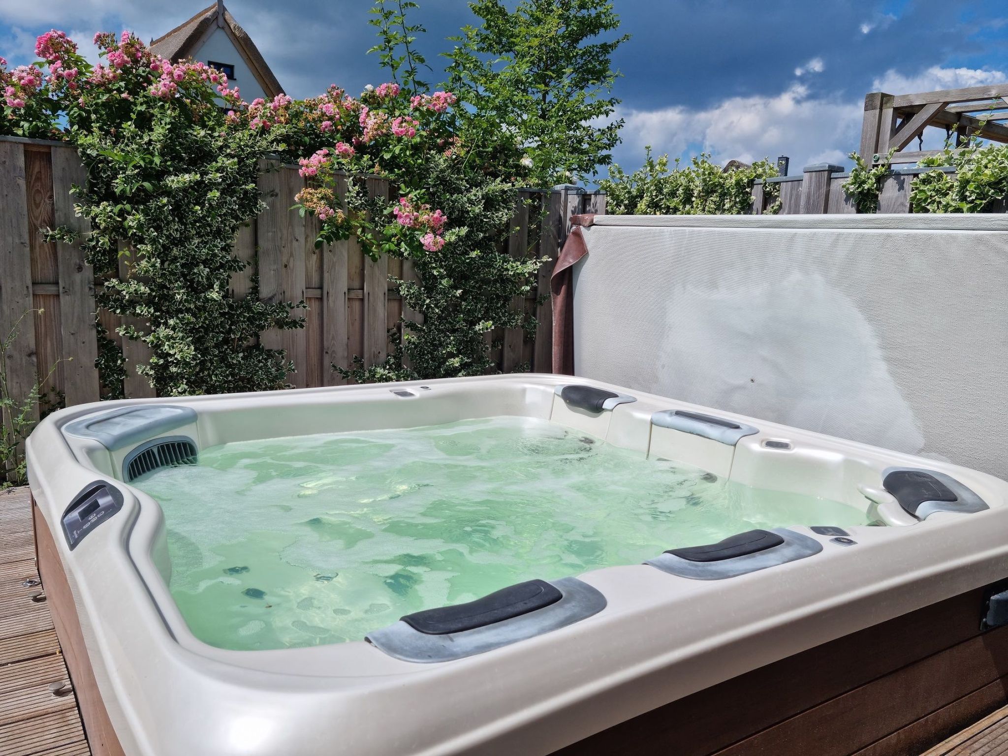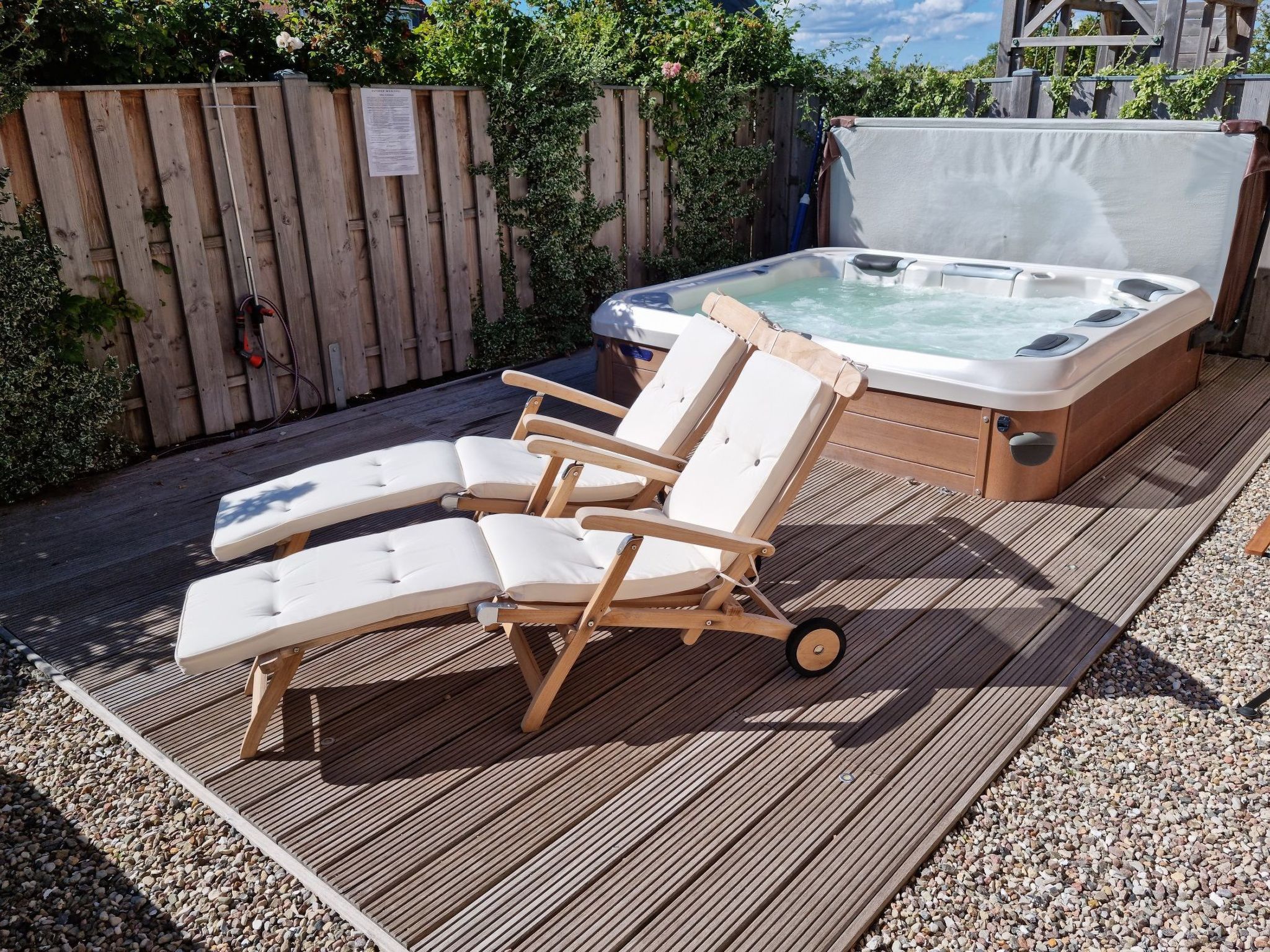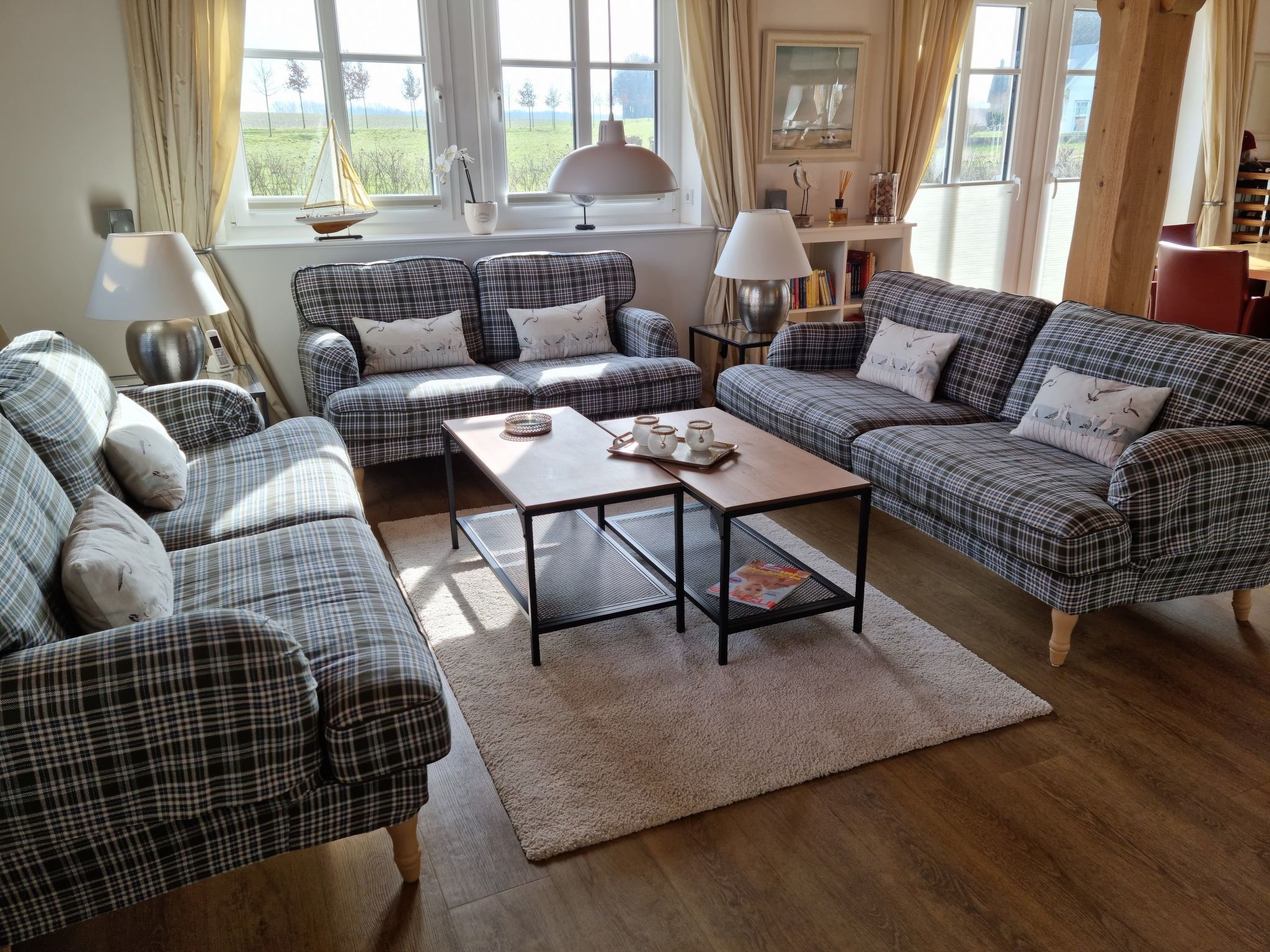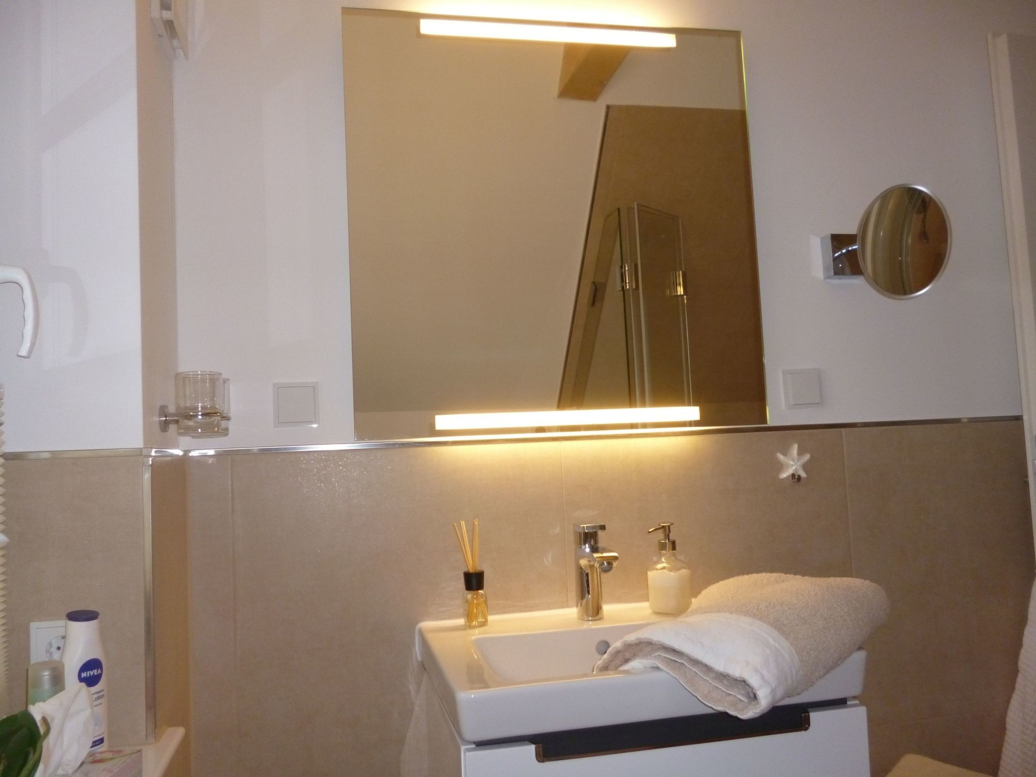 Wellness-Landhaus***** Luxus, Sauna, 2xWhirlpools, Dampfbad, Kamin, Boxspringb., Bäder en suite, WLAN Das Landhaus 4 Jahreszeiten liegt in Groß Schwansee auf einem 1.000m² großen Traumgrundstück inmitten von bunten Blumenwiesen und goldgelben Raps- und Getreidefeldern. Die Ostsee liegt in Sichtweite und der Strand ist nur wenige Gehminuten entfernt. Groß Schwansee liegt an der Ostsee zwischen Travemünde (10km) und Boltenhagen (15km), inmitten der unberührten Mecklenburger Landschaft mit herrlichem Natursandstrand, Wiesen und Feldern. Das Landhaus 4 Jahreszeiten ist bestens eingerichtet für Ihre Erholung! Das ruhig gelegene, moderne Fachwerkhaus wurde 2017 erbaut, hochwertig eingerichtet und mit viel Liebe zum Detail und Charme dekoriert. Der Fokus liegt darauf, Ihren Urlaub so komfortabel und angenehm wie möglich zu gestalten. Es soll Ihnen in dieser schönen Zeit an nichts fehlen. Der Deutsche Tourismus Verband hat unser Landhaus 2023 erneut für 8 Personen mit sehr gutem Ergebnis klassifiziert und mit 5 Sternen ausgezeichnet!!! Gruppen mit bis zu 16 Personen finden hier und in unserem zweiten baugleichen Landhaus auf demselben Grundstück Platz. Im Prüfbericht bescheinigt uns der DTV: Ein sehr exklusives Haus mit viel Liebe zum Detail, super Einrichtung, eigener Wellnessbereich, hochwertig eingerichtet - einfach toll. Schöne Außenanlage mit Außenpool, Lounge-Möbeln und Spielplatz. Auf insgesamt 150 m², die sich über zwei Etagen erstrecken, haben Sie die Möglichkeit mit bis zu 8 Erwachsenen und 2 Kleinkindern zu wohnen. Es gibt insgesamt 8 Betten in vier Schlafzimmern, eins im Erd- und drei im Obergeschoss. Drei Schlafzimmer haben direkt angrenzende „En-Suite-Badezimmer“. Zwei der Schlafzimmer, jeweils eins im OG und eins im EG, sind mit luxuriösen Boxspringbetten (180 cm x 200 cm) ausgestattet. Im dritten Schlafzimmer schlafen Sie auf einem komfortablen Doppelbett (180 cm x 200 cm) in Echtleder mit verstellbaren Kopfteilen. Das vierte, kleine Schlafzimmer besitzt zwei bequeme Einzelbetten (90 cm x 200 cm). Hier fühlen sich besonders Kinder und Jugendliche wohl. Das Aufstellen von Kinderbetten ist in den Schlafzimmern 1-3 möglich. Alle Schlafzimmer sind geschmackvoll dekoriert und mit geräumigen Kleiderschränken, Nachttischen mit Leselampen, Safes, Außenjalousien und SMART-TVs ausgestattet. Bei bis zu 4 Personen stehen Ihnen 2 Schlafräume zur Verfügung, bis zu 6 Personen 3 Schlafräume und bis zu 8 Personen 4 Schlafräume. Einzelbelegung ist mit Aufpreis möglich. Sollten 9 oder 10 Personen >3 Jahre untergebracht werden müssen, können wir bis zu 2 Gästebetten im Wohnraum oder Wellnessbereich aufstellen. Die 3 modernen En-suite-Badezimmer verwöhnen mit ebenerdigen und stufenlosen Duschbereichen mit Rainduschen, eleganten Glaswänden und beleuchteten Ablagefächern. Die V&B-Waschtische mit Unterschränken sowie weitere Ablagen bieten Ihnen viel Platz für Ihre Bad- und Kosmetikaccesoires. In zwei Bädern befindet sich ein Bidet. Exklusive beleuchtete Badspiegel, Kosmetikspiegel und Bluetooth-Radios sind hier weitere Highlights. Der Wohn- und Essbereich bietet mit seinen 50 m² genügend Platz für die ganze Familie oder größere Gruppen. An dem großen Eichen-Esstisch mit bequemen Armlehnstühlen und Platz für 8-10 Personen sowie im gemütlichen Wohnbereich, ausgestattet mit hochwertigen Sofas mit 8 Sitzplätzen, lassen sich entspannte Stunden verbringen. Für die perfekte Wohlfühl-Atmosphäre sorgt die Fußbodenheizung und der Gas-Kamin, der optional buchbar ist. Eine hochwertige Samsung/Marantz/Elac-Heimkino-Anlage mit 55-SMART-TV, Blu-Ray-Player und High-End-Receiver stehen Ihnen hier zur Verfügung. Im TV ist Netflix-Streaming installiert. Ebenfalls können Sie eine Playstation PS 4 sowie unser DVD- und CD-Sortiment nutzen. Eine Spielesammlung und eine Urlaubsbibliothek mit Auswahl für Groß und Klein stehen auch bereit. Wir bieten Ihnen hier weiterhin ein Weindepot mit erlesenen internationalen Weinen zu moderaten Preisen. Die offene moderne Küche mit Bartresen ist komplett und sehr hochwertig ausgestattet. Hier finden Sie alles, um Ihren Aufenthalt so angenehm wie möglich zu gestalten: eine Kühl- Gefrierkombination, Cerankochfeld mit Dunstabzugshaube, Geschirrspülmaschine und Backofen. Für Ihren Kaffeegenuss wählen Sie zwischen einem SAECO-Kaffeevollautomaten mit integriertem Milchbehälter für 6 Kaffeespezialitäten und einer Filterkaffeemaschine. An Elektrogeräten stehen Toaster, Eierkocher, Wasserkocher, Küchenmaschine und ein Mixer zur Nutzung bereit. Ein großes Pfannen- und Topfsortiment mit vielen Küchenutensilien ermöglichen Ihnen perfektes und angenehmes Kochen. Auch hier sorgt ein großer SMART-TV für Unterhaltung. Elegantes V&B-Geschirr, Silberbesteck und ein hochwertiges Gläser-Sortiment sorgen für den perfekt gedeckten Tisch. Ein absolutes Highlight des Hauses ist der eigene 25 m² große Indoor-Wellnessbereich im Obergeschoss mit tollem Weitblick über Wiesen und Felder. Genießen Sie die Ruhe in der großen Sauna mit Glasfront für sechs Personen, dem Klima-Dampfbad und einem Innen-Whirlpool 190 cm x 120 cm für 2 Personen. Nach dem wohltuenden Saunagang können Sie sich unter der Regendusche sowie mit dem Kneippschlauch abkühlen, um sich danach in den zwei Kneipp-Fußbadebecken oder in den Liegestühlen vor dem großen SMART-TV zu entspannen. Zur sportlichen Betätigung nutzen Sie gerne unsere Fitnessgeräte: einen Crosstrainer, eine Sit-up-Bank, Hanteln und eine Gymnastikmatte. ACHTUNG: der Indoor-Wellnessbereich muss zusätzlich gebucht werden. Es können leider keine Einzelleistungen gebucht werden. Die Buchung kann nur für den gesamten Reisezeitraum erfolgen. Im Haus gibt es eine eigene Telefonanlage, mit der Sie kostenfrei in alle deutschen Netze telefonieren können. Im Hauswirtschaftsraum stehen Ihnen eine Waschmaschine und ein Trockner kostenlos zur Verfügung. Vom Wohn- und Essbereich gelangen Sie direkt 