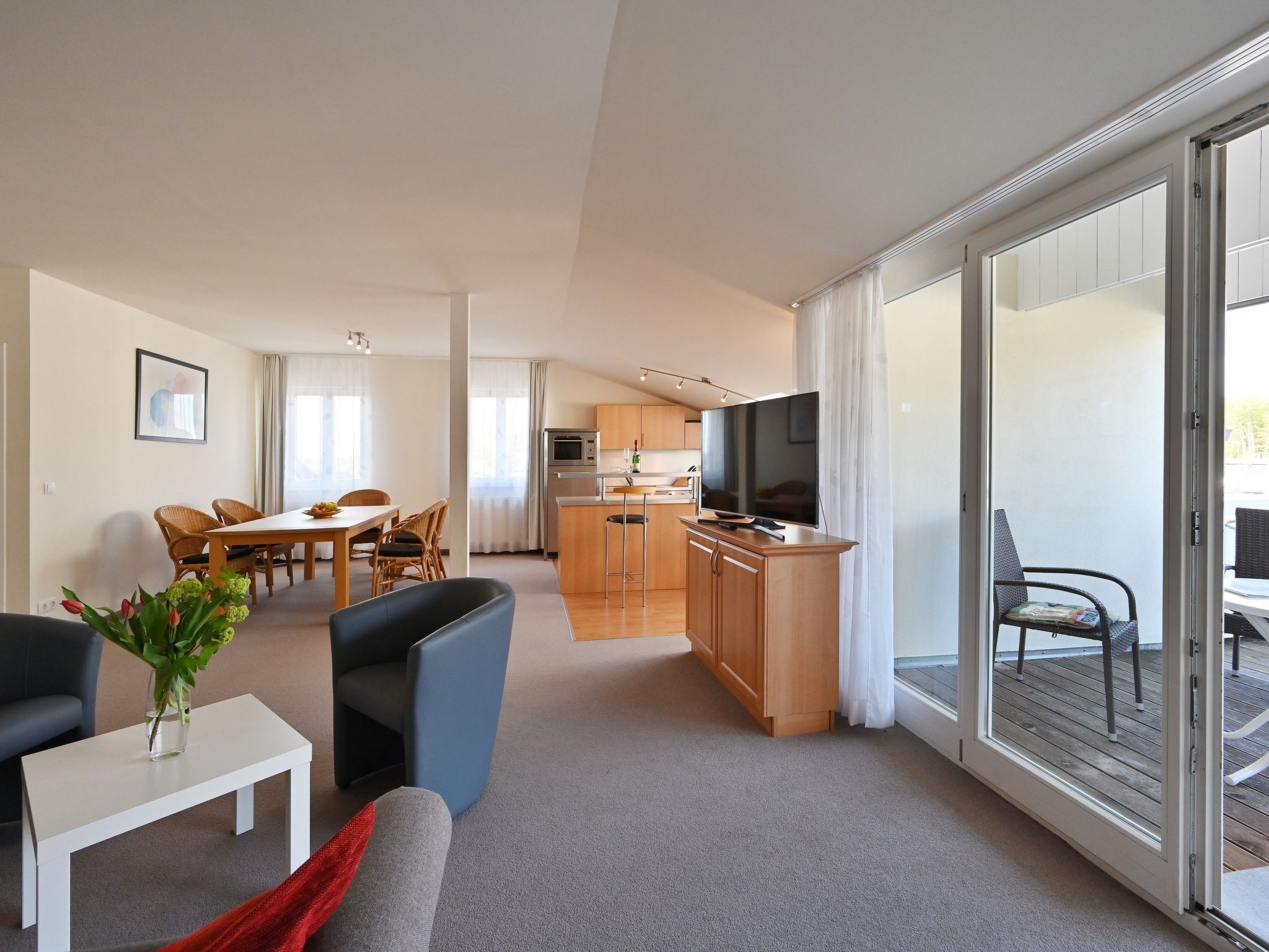Die Vier-Zimmer Ferienwohnung Nr. 13 mit einer Größe von 132 m² für bis zu sechs Personen mit einer möglichen Baby-Aufbettung liegt im dritten Obergeschoss, ist zur Straße gerichtet und gibt einen sehr guten Blick auf die Ostsee und den Selliner See. Ein ganz besonderes Highlight ist der große Penthouse-Balkon mit Gartenmöbeln. Genieße Sie die wundervolle Aussicht. Auch sollte die Sauna für zwei Personen in der Wohnung nicht vergessen werden. Es begrüßt Sie eine Ferienwohnung mit drei Schlafzimmern, zwei Badezimmern, Wohn/Küchenraum und einer Dachterrasse. Das erste Zimmer ist mit einem Doppelbett ausgestattet, 1,80m x 2,00m, das zweite mit zwei Einzelbetten (je 0,90m x 2,00m) und das dritte verfügt über ein Stockbett. Es besteht die Möglichkeit zur Aufstockung von zwei weiteren Betten. Die voll ausgestattete Küchenzeile verfügt nicht nur über einen Backofen, Herd und Kühlschrank, sondern auch über einen Toaster, Wasserkocher und eine Spülmaschine. So ist der Abwasch leicht gemacht. Das Bad ist mit Badewanne/Dusche, WC, Föhn und Waschbecken ausgestattet. Kinderbett und Kinderstuhl können kostenlos auf Anfrage hinzugestellt werden. Kostenloses WLAN darf natürlich nicht fehlen. Die Villa ist geprägt von ihrer mit viel Liebe zum Detail sanierten historischen Bäderstil-Fassade und der Verwendung von hochwertigen und ökologischen Baumaterialen (z.B. Allergiker-freundliche Farben und Dämm-Materialien). Vor Ort erwartet Sie darüber hinaus eine Gemeinschaftssauna und ein Waschraum mit Münzwaschmaschine und Trockner. Basisinformationen - Erlaubte Haustiere: keins - Art d. Wohnung: Dachgeschoss - Art d. Gebäudes: Mehrparteienhaus - Etage, auf der sich das Objekt befindet: OG3 - Gesamtanzahl d. Stockwerke im Gebäude über EG: 3 - Grundstücksfläche: 1000 m² - Baujahr: 1914 - letzte umfassende Renovierung: 2017 - freistehend - Nichtraucherunterkunft - Höhe über dem Meeresspiegel: 50 - Schlafzimmeranzahl: 3 - Badezimmeranzahl: 2 Top Merkmale - WLAN - Heizung: überall - Private PKW-Stellplätze insgesamt für diese Unterkunft: 1 - ㄴ davon Garagenstellplätze: 1 - ㄴ davon Carport-Stellplätze: keinen - ㄴ davon private Außenstellplätze: keinen Schlafen Schlafzimmer 1 - Doppelbett (1,80m Breite) Schlafzimmer 5 - 2x Einzelbett Schlafzimmer 9 - Etagenbett Badezimmer Badezimmer 1 - Dusche - Badewanne - Toilette - Föhn Badezimmer 5 - Dusche - Waschbecken - Toilette Sanitäre Einrichtungsgegenstände in der Ferienunterkunft - Dusche - Badewanne - Toilette - Föhn Kochen/Wohnen - Kaffeemaschine: Kaffeemaschine - Kühl-/Gefrierschrank: Gefrierfach, Tiefkühlschrank, Kühlschrank - Herd: Herd - Backofen - Toaster - Mikrowelle - Wasserkocher - Spülmaschine - Anzahl Esstische: keine - Gesamtzahl Sitzplätze: keine Entertainment - Fernseher: TV, Kabel-TV, Sat.-TV - Musikanlage - Radio - CD-Player Für Kinder - Kinderstuhl Hauswirtschaft - Waschmaschine: zur alleinigen Nutzung im Objekt - Wäschetrockner: zur alleinigen Nutzung im Objekt - Bügeleisen - Staubsauger Barrierefreiheit - Aufzug Außenbereich - Dachterrasse - Grill: Grill Umgebung - Aussicht: Meer/See - direkt am Waldrand - Lebensmittelhandel: 100 m - Bars/Clubs/Ausgehen: 200 m - Cafés/Restaurants: 10 m - Bahnhof: 8,0 km - Flughafen: 80,0 km - Strand: 200 m - Meer: 200 m - See: 200 m - Wassersport: 200 m - Angelplatz: 200 m - Öffentliches Schwimmbad: 300 m - Golfplatz: 12,0 km - Reitmöglichkeit: 500 m Besonderheiten - Anglerfreundlich