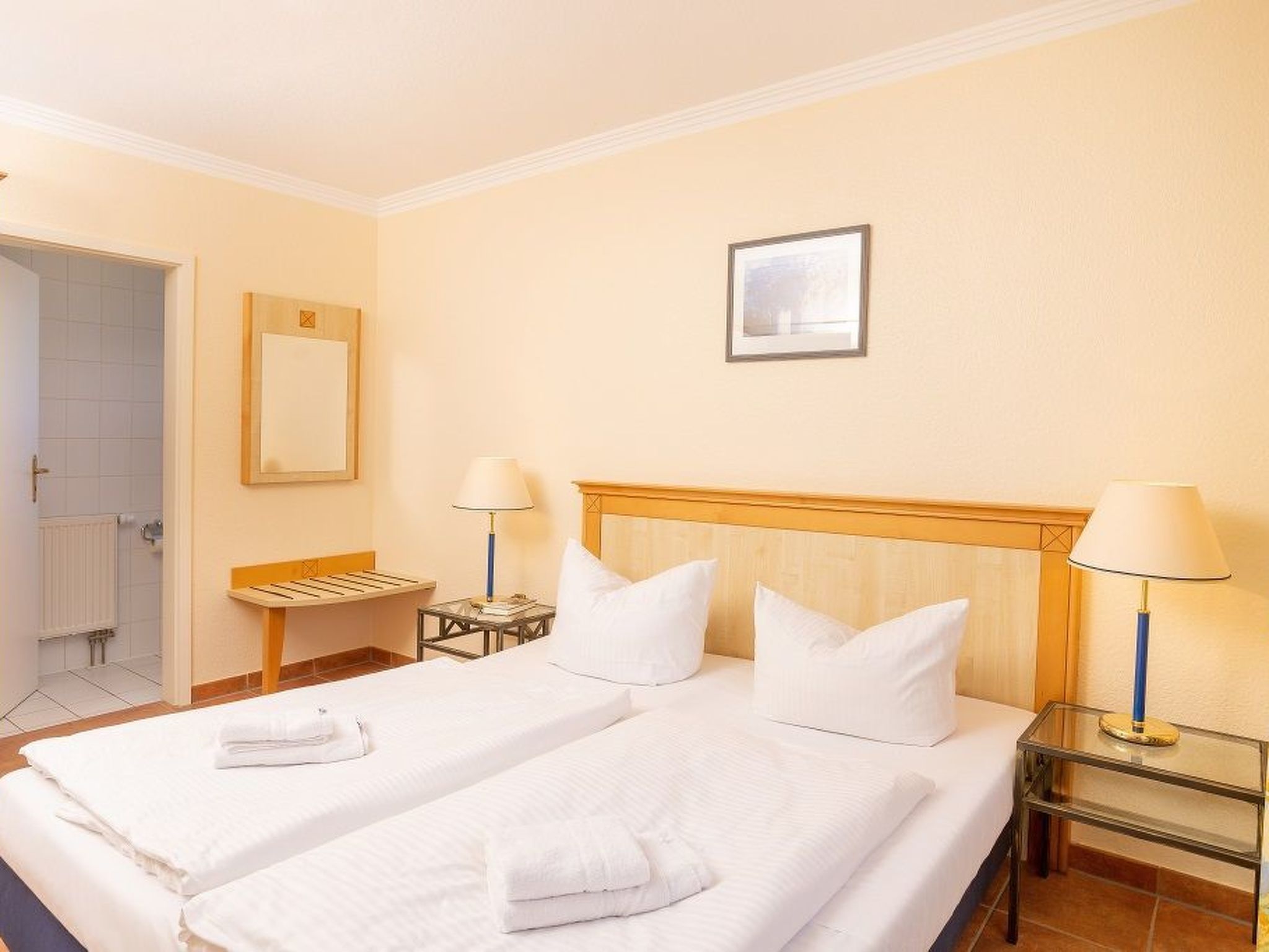 Herzlich Willkommen im Ferienapartment-ruegen, dem idealen Ort für einen unvergesslichen Aufenthalt! Gelegen in der exquisiten Hotelanlage in Sagard-Neddesitz, direkt am Nationalpark Jasmund, verspricht dieses Urlaubsdomizil Ruhe und Erholung inmitten atemberaubender Natur. Verbringen Sie Ihre Tage in einer komfortablen Umgebung und genießen Sie die Nähe zu einer Vielfalt an Freizeitaktivitäten, von spannenden Naturerlebnissen bis zu genussvollen Momenten mit frischen Meeresfrüchten. Innen überzeugt das Apartment mit einer Wohnfläche von 73 qm, die ausreichend Platz für bis zu vier Gäste bietet. Im Erdgeschoss gelegen, verfügt es über ein gemütliches Wohnzimmer, ein ruhiges Schlafzimmer mit separatem WC und eine voll ausgestattete Küche, die Selbstversorgung auf höchstem Niveau ermöglicht. Durch die moderne und zugleich heimelige Inneneinrichtung fühlen Sie sich sofort wohl und genießen jeden Moment Ihrer Auszeit. Der Außenbereich verwandelt sich in eine kleine Ruheoase. Die nach Südwesten gerichtete Terrasse bietet ab Mittag das perfekte Sonnenbad und Privatsphäre. Zudem erleichtert der naheliegende PKW-Stellplatz Ihre täglichen Ausflüge erheblich. Innerhalb der Hotelanlage wartet das 3.500 qm große Erlebnisbad SPLASH auf Sie, das für zusätzliche Entspannung und Spaß sorgt. Die unmittelbare Umgebung in Neddesitz lässt keine Wünsche offen. Die malerische Landschaft Rügens bildet den perfekten Rahmen für diverse Unternehmungen. Ob die Erkundung historischer Kreidebrüche, ein Besuch des prächtigen Herrenhauses, Entspannung an berühmten Stränden und Seebädern oder der Besuch kultureller Highlights wie Kap Arkona und den Sommer-Festspielen – hier findet jeder sein persönliches Urlaubsvergnügen. Gewährleisten Sie sich einen Aufenthalt, der geprägt ist von Komfort, Vielfalt und unvergesslichen Momenten im Ferienapartment-ruegen. Mit seiner erstklassigen Ausstattung, den endlosen Freizeitmöglichkeiten direkt vor der Tür und der idyllischen Lage ist es der perfekte Ort für alle, die Natur, Kultur und Entspannung in ihrem Urlaub vereinen möchten. Hier im Ferienapartment-ruegen werden Sie einen Urlaub erleben, an den Sie sich noch lange erinnern werden! Basisinformationen - Erlaubte Haustiere: keins - Unterkunftstyp: Ferienwohnung - befindet sich in: Ferienpark - Etage, auf der sich das Objekt befindet: EG - Gesamtanzahl d. Stockwerke im Gebäude über EG: 1 - letzte umfassende Renovierung: 2020 - keine Einsicht von der Straße - kontaktloser Check-in/out - keine Jugendgruppen - Nichtraucherunterkunft - Schlafzimmeranzahl: 1 - Badezimmeranzahl: 1 Top Merkmale - WLAN - Heizung: überall - Terrasse - Garten: zur gemeinschaftlichen Nutzung - Private PKW-Stellplätze insgesamt für diese Unterkunft: 1 - ㄴ davon Garagenstellplätze: keinen - ㄴ davon Carport-Stellplätze: keinen - ㄴ davon private Außen­stellplätze: 1 - Entfernung kostenfreie Gemeinschaftsparkplätze oder Parken an der Straße: 10 m Schlafen im Wohnbereich - Doppelbett (1,80m Breite) - Schlafzimmer abdunkelbar Schlafzimmer 1 - 2x Einzelbett - Schlafzimmer abdunkelbar Badezimmer Badezimmer 1 - Dusche - Waschbecken - Toilette - Föhn - Tageslicht Gäste-WC - Waschbecken - Toilette - Föhn - Tageslicht Kochen/Wohnen - Kaffeemaschine: Filter-Kaffeemaschine, Kaffeemaschine - Kühl-/Gefrierschrank: Gefrierfach, Kühlschrank - Herd: Glaskeramikkochfeld, Herd - Dunstabzugshaube - Backofen - Toaster - Mikrowelle - Wasserkocher - Spülmaschine - Geschirrtücher - Anzahl Esstische: 1 - Gesamtzahl Sitzplätze: 4 - Anzahl Wohnzimmer: 1 - Wohnzimmer abdunkelbar Entertainment - Fernseher: TV, Kabel-TV - Musikanlage - Radio - CD-Player - Gesellschaftsspiele für Erwachsene Für Kinder - Kinderspielzeug - Gesellschaftsspiele für Kinder Hauswirtschaft - Wäscheständer - Staubsauger - Reinigungsprodukte - Rauchmelder - Safe Nachhaltigkeit - Abfallrecycling - Papierrecycling verfügbar - Wassersparende Geräte Außenbereich - Veranda - Outdoormöbel - Grillen nicht zulässig Umgebung - Aussicht: Garten, Wald, Wiese - nächstgelegene Ortsmitte: 3,0 km - Lebensmittelhandel: 3,0 km - Bars/Clubs/Ausgehen: 250 m - Cafés/Restaurants: 100 m - Bahnhof: 3,0 km - Flughafen: 30,0 km - Autobahn: 50,0 km - Hafen: 8,0 km - nächste Haltestelle ÖPNV: 150 m - Strand: 5,0 km - Sandstrand: 5,0 km - Wasser (Meer, See etc.): 5,0 km - Meer: 5,0 km - See: 1,0 km - Wassersport: 5,0 km - Spielplatz: 80 m - Öffentliches Schwimmbad: 150 m - Golfplatz: 6,0 km - Fahrrad-Verleih: 150 m - Wanderweg: 100 m - Reitmöglichkeit: 250 m