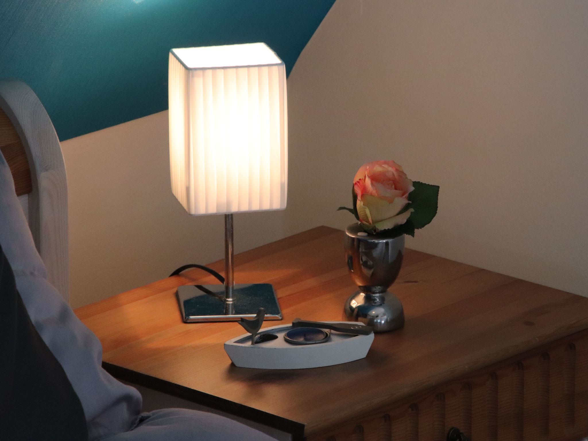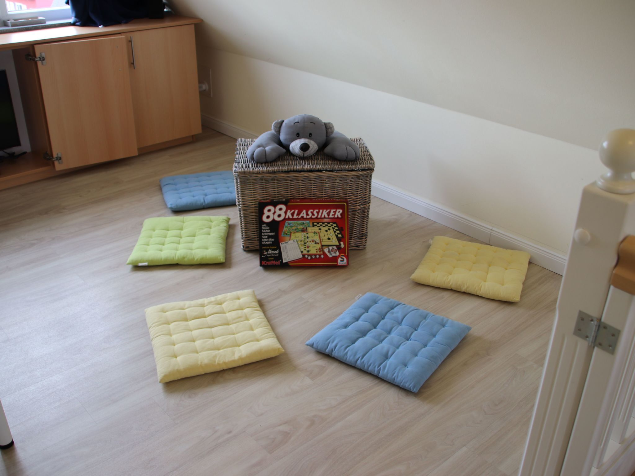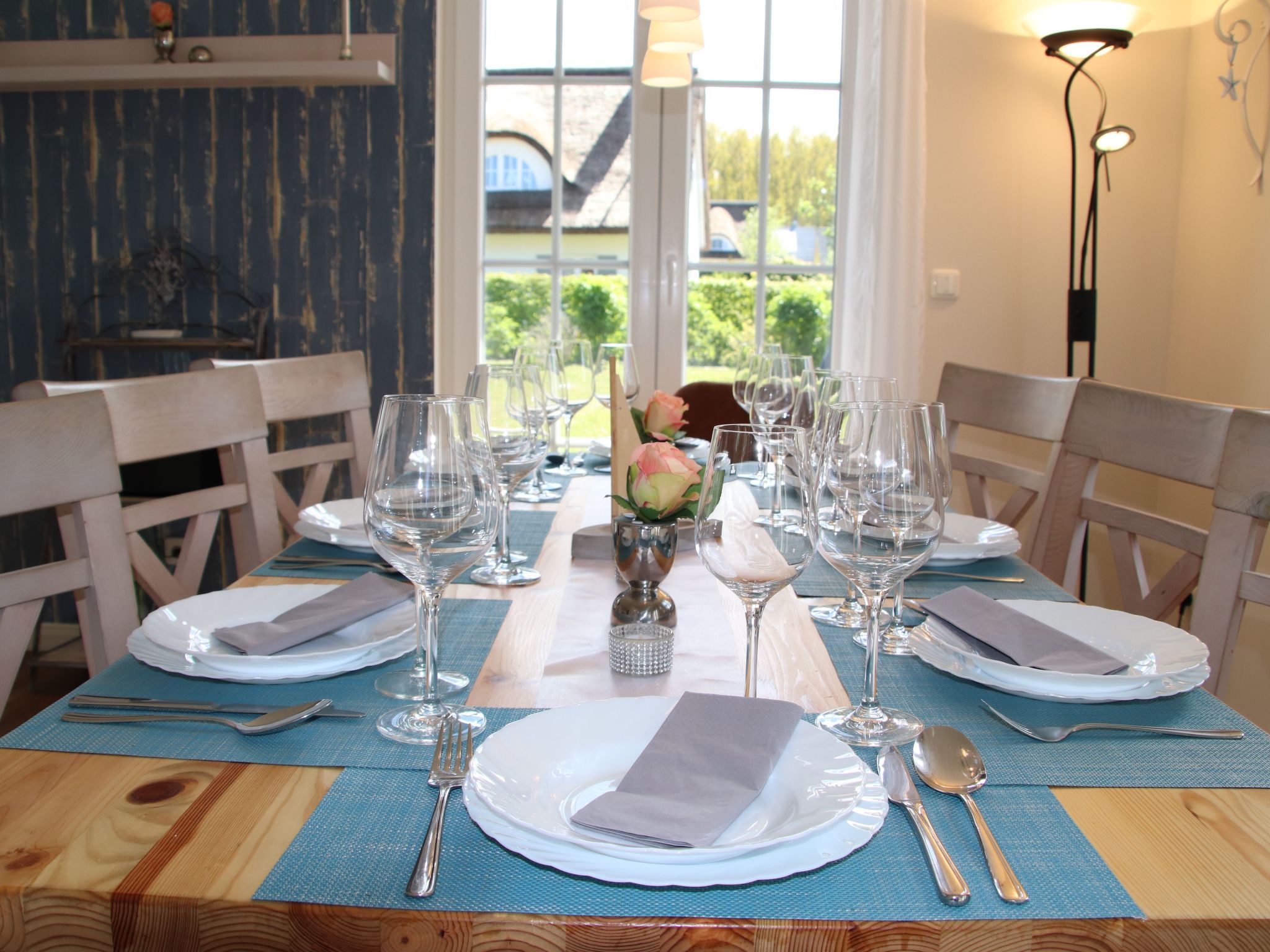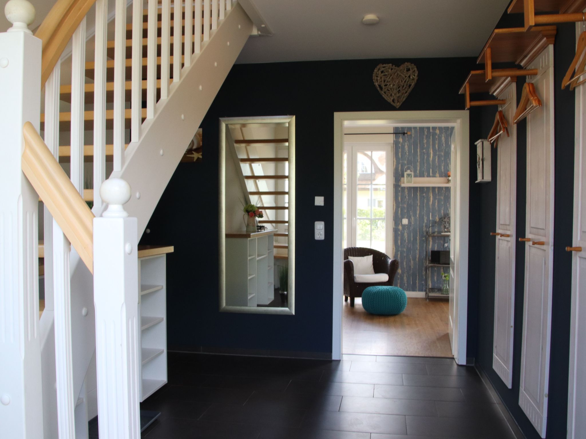 Das liebevoll bis ins Detail gestaltete Ferienhaus (für acht Erwachsene und einem Kleinkind im vorhandenen Reisebett) ist im edlen Landhausstil familienfreundlich eingerichtet, damit Sie Ihren Urlaub entspannt genießen können. Im Erdgeschoss erwartet Sie eine vollständig ausgestattete Küche, Backofen mit Ceran-Kochfeld, Geschirrspüler, Mikrowelle, großer Kühlschrank mit mehreren Eisfächern, Kaffeemaschine, Kaffeevollautomat, Toaster, Wasserkocher, alle notwendigen Utensilien und viele Extras (z. B. Espresso-Kocher, Kindergeschirr, Kinderbesteck, Waffeleisen etc.). Eine hochwertige Ausstattung im Ess-/Wohnraum. Dazu gehören ein Kaminofen, ein großer LCD- Fernseher, ein Blu-ray-System mit Radio und Apple Dock, Bücher, Kinderbücher, DVD´s und natürlich auch ein Kinderhochstuhl. Ein Hauswirtschaftsraum mit Waschmaschine und Trockner (gegen Gebühr), Wäscheständer, Bügelbrett und Bügeleisen. Ein gemütliches Badezimmer mit Waschbecken, großer Dusche, WC und ausreichend Abstellmöglichkeiten. Alle Fenster haben elektrische Rollläden. Zwei Terrassentüren und das Badezimmerfenster sind mit Insektenschutzgittern versehen. Das Obergeschoss verfügt über drei schöne, geräumige Schlafzimmer (2x Doppelbett, 1x2 Einzelbetten). Alle Schlafzimmer sind mit hochwertigen Matratzen, LCD-Fernsehern, Radioweckern und ausreichend Schränken ausgestattet. Ein Schlafzimmer verfügt zusätzlich über ein Micro Stereo System mit Apple Dock. Im großzügigen Wohlfühl-Badezimmer finden Sie zwei Waschbecken, eine Dusche, ein WC und einen herrlichen Whirlpool. Alle Räume im Obergeschoss haben elektrische Rollläden und Insektenschutzgitter vor den Fenstern. Im ausgebauten, lichtdurchfluteten Dachgeschoss befindet sich ein exklusiver, großer Raum mit zwei Einzelbetten und einer Spielecke mit Spielen und Kinderbüchern. Zusätzlich befindet sich hier ein LCD-Fernseher mit Blu-ray-System, Radio und Apple Dock. Damit auch unsere kleinen Gäste sicher spielen können, verfügt die Treppe des Dachgeschosses über ein Treppenschutzgitter. Ein idealer Raum, damit die Kinder auch bei schlechtem Wetter ungestört spielen können. Auch hier finden Sie Insektenschutzgitter vor den Fenstern und zudem Verdunkelungsgardinen. Wenn Sie abends mit Ihrem Espresso auf der großen Süd-West-Eckterrasse in ihrem Strandkorb sitzen, über Wlan im Internet surfen oder einen Wellness-Abend in der Fass-Sauna & im Whirlpool verbringen, sollen Sie Ihren wohlverdienten Urlaub rundum genießen... Es ist ein Nichtraucher Ferienhaus in dem auch keine Haustiere erlaubt sind, daher auch für Allergiker geeignet. Sie können mit bis zu vier Pkws direkt auf dem Grundstück parken. Fahrräder können im geräumigen Gartenhaus eingeschlossen werden. Das wunderschöne Reetdachhaus liegt im staatlich anerkannten Erholungsort Glowe auf der Insel Rügen im neu errichteten Ostseepark Glowe. In nur 8 Geh-Minuten erreichen Sie den kilometerlangen Sandstrand mit vielen Spielmöglichkeiten, Surf- und Segelschule, einer neuen Uferpromenade und dem schönen kleinen Hafen. Das Laden von Elektrofahrzeugen über die Haussteckdosen ist aus brandschutzrechtlichen Gründen untersagt und führt zur Verlust der Kaution. Bitte nutzen Sie die öffentliche Ladeinfrastruktur. Basisinformationen - Erlaubte Haustiere: keins - Unterkunftstyp: Ferienhaus - Art d. Gebäudes: Einfamilienhaus - Gesamtanzahl d. Stockwerke im Gebäude über EG: 2 - Grundstücksfläche: 700 m² - Baujahr: 2012 - letzte umfassende Renovierung: 2021 - freistehend - keine Jugendgruppen - Nichtraucherunterkunft - Schlafzimmeranzahl: 4 - Badezimmeranzahl: 2 Top Merkmale - WLAN - Heizung: überall - Fußbodenheizung: überall - Terrasse - Garten: zur alleinigen Nutzung - Private PKW-Stellplätze insgesamt für diese Unterkunft: 4 - ㄴ davon private Außen­stellplätze: 4 Schlafen Schlafmöglichkeiten in der Ferienunterkunft - Kinder-/Babybett Schlafzimmer 1 - Doppelbett (1,80m Breite) - Kinder-/Babybett Schlafzimmer 10 - 2x Einzelbett Schlafzimmer 4 - Doppelbett (1,80m Breite) Schlafzimmer 7 - 2x Einzelbett Badezimmer Badezimmer 1 - Dusche - Waschbecken - Toilette - Tageslicht Badezimmer 4 - Dusche - 2x Waschbecken - Toilette - Föhn - Tageslicht Sanitäre Einrichtungsgegenstände in der Ferienunterkunft - 2x Dusche - Badewanne - 2x Toilette - Föhn Wellness - Whirlpool Kochen/Wohnen - Kaffeemaschine: Espressokanne, Filter-Kaffeemaschine, Kaffeemaschine - Kühl-/Gefrierschrank: Tiefkühlschrank, Kühlschrank - Herd: Herd - Dunstabzugshaube - Backofen - Toaster - Mikrowelle - Wasserkocher - Spülmaschine - Größe der Küche: 15 m² - Anzahl Esstische: 1 - Gesamtzahl Sitzplätze: 9 - Anzahl Wohnzimmer: 1 - Wohnzimmer abdunkelbar - Kamin Entertainment - Fernseher: TV, Antenne/DVBT-TV, Sat.-TV - DVD-Player - Musikanlage - Radio - CD-Player - Gesellschaftsspiele für Erwachsene Für Kinder - Kinderstuhl - Kinderspielzeug - Gesellschaftsspiele für Kinder Hauswirtschaft - Waschmaschine: zur alleinigen Nutzung im Objekt - Wäschetrockner: zur alleinigen Nutzung im Objekt - Bügeleisen - Staubsauger - Safe Außenbereich - Grill: Holzkohlegrill Umgebung - nächstgelegene Ortsmitte: 500 m - Lebensmittelhandel: 500 m - Bars/Clubs/Ausgehen: 300 m - Cafés/Restaurants: 200 m - Bahnhof: 15,0 km - Autobahn: 80,0 km - Hafen: 800 m - nächste Haltestelle ÖPNV: 300 m - Strand: 800 m - Sandstrand: 800 m - Meer: 800 m - Wassersport: 800 m - Bootsverleih - Angelplatz: 800 m - Fahrrad-Verleih: 50 m - Reitmöglichkeit: 500 m Besonderheiten - Reetdachhaus - Anglerfreundlich