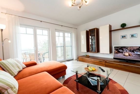 Das im Jahr 2012 neu erbaute Haus Ostseeblick befindet sich in Hanglage mit Meerblick über den Südstrand am Ortseingang von Göhren in der Feldstraße 1a und 1b. Den feinsandigen Nordstrand mit der Bernsteinpromenade sowie den Naturstrand (Südstrand) erreicht man ganz gemütlich in ca. 10 Gehminuten. Das Ortszentrum ist binnen weniger Minuten zu Fuß erreichbar. Die großzügig geschnittene 3-Raum-Wohnung ist modern und hochwertig eingerichtet und verfügt über einen Balkon mit herrlichem Blick auf den Göhrener Südstrand. Fahrräder können außerhalb des Hauses in einem Fahrradschuppen abgestellt werden. Ein kostenloser Parkplatz pro Wohnung steht jedem Gast direkt am Haus zur Verfügung. Kostenloser W-LAN in der Wohnung vorhanden. Wohnfläche: 82 m² 3-Raum-Wohnung Großer Eingangsbereich mit Garderobe und Schuhschrank. Großzügiger Wohnbereich mit Eckcouch und Couchtisch, Anrichte mit großem Flat-TV, CD-Radio-Anlage und Esstisch mit 4 Stühlen. Im Wohnraum integrierte Einbauküche, ausgestattet mit: 4-Platten-Cerankochfeld, großer Backherd, Dunstabzugshaube, Mikrowelle, großer Kühlschrank mit Gefrierfach, Geschirrspüler, Toaster, Kaffeemaschine, Wasserkocher, Mixer und hochwertigen Küchenutensilien. 2 Schlafzimmer mit je einem Doppelbett (180 x 200 cm) und großem Kleiderschrank. Davon ein Schlafzimmer mit Flat-TV. 1 Bad mit großer ebenerdiger Dusche, 2 Waschtischen, WC und Fön. 1 Balkon mit Gartenmöbeln. Die gesamte Wohnung ist mit Fußbodenheizung ausgestattet. Nichtraucher! (Auf dem Balkon kann aber gern geraucht werden.) Basisinformationen - Erlaubte Haustiere: keins - Etage, auf der sich das Objekt befindet: OG1 - Gesamtanzahl d. Stockwerke im Gebäude über EG: 2 - Baujahr: 2012 - Nichtraucherunterkunft - Schlafzimmeranzahl: 2 - Badezimmeranzahl: 1 Top Merkmale - WLAN - Balkon - Private PKW-Stellplätze insgesamt für diese Unterkunft: 1 - ㄴ davon Garagenstellplätze: keinen - ㄴ davon Carport-Stellplätze: keinen - ㄴ davon private Außenstellplätze: 1 Schlafen Schlafzimmer 1 - Doppelbett (1,80m Breite) Schlafzimmer 3 - Doppelbett (1,80m Breite) Badezimmer Badezimmer 1 - Dusche Sanitäre Einrichtungsgegenstände in der Ferienunterkunft - Dusche - Toilette Kochen/Wohnen - Kaffeemaschine: Kaffeemaschine - Kühl-/Gefrierschrank: Gefrierfach, Kühlschrank - Herd: Herd - Backofen - Toaster - Mikrowelle - Wasserkocher - Spülmaschine - Anzahl Esstische: keine - Gesamtzahl Sitzplätze: keine Entertainment - Fernseher: TV, Kabel-TV - Musikanlage - Radio - CD-Player Hauswirtschaft - Staubsauger Umgebung - Aussicht: Meer/See - Lebensmittelhandel: 400 m - Bars/Clubs/Ausgehen: 500 m - Cafés/Restaurants: 300 m - Bahnhof: 20,0 km - Flughafen: 30,0 km - nächste Haltestelle ÖPNV: 400 m - Strand: 700 m - Sandstrand: 700 m - Meer: 700 m - Angelplatz: 800 m - Öffentliches Schwimmbad: 7,0 km - Golfplatz: 30,0 km - Reitmöglichkeit: 7,0 km