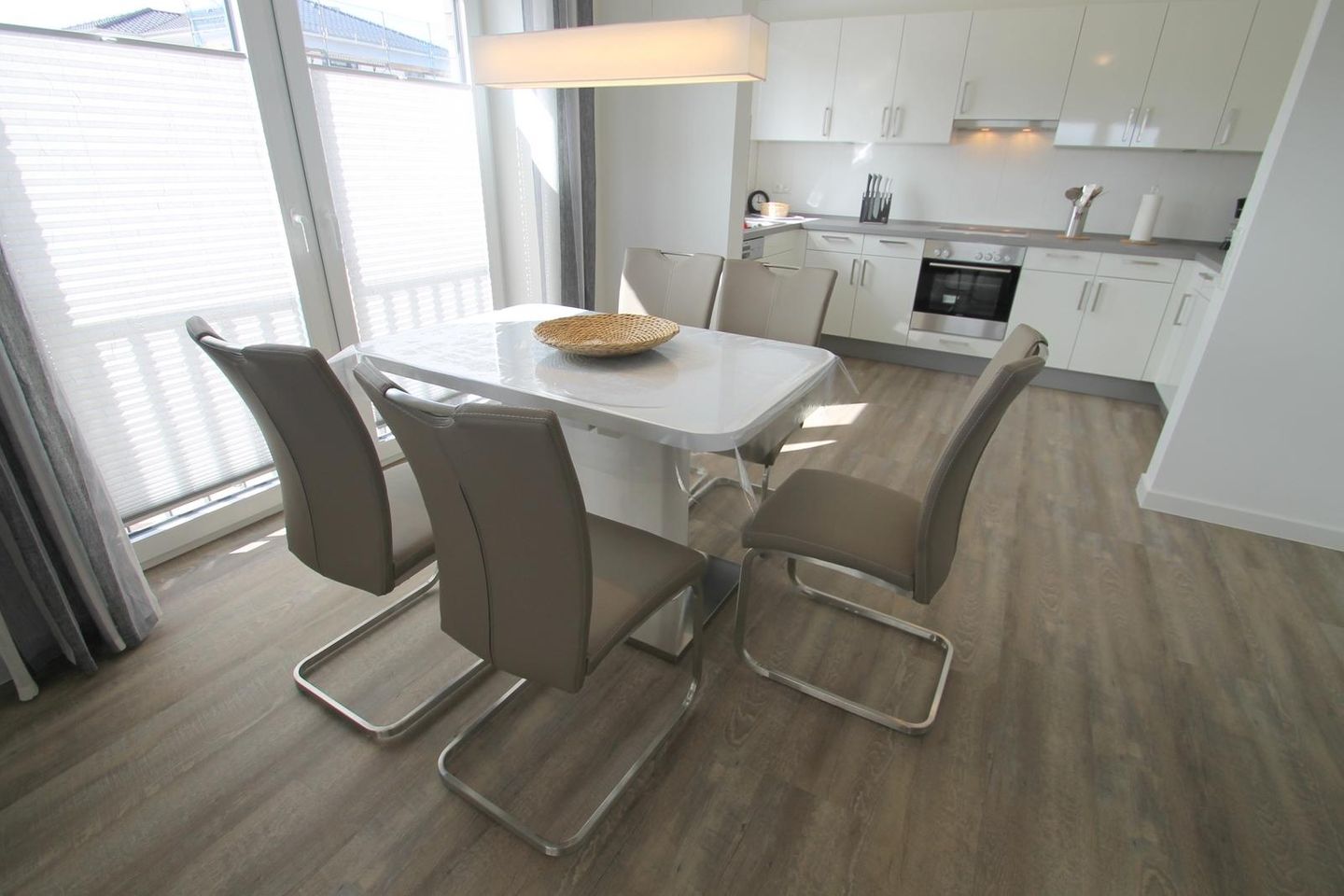 Komfortabel eingerichtete barrierefreie drei Zimmer Ferienwohnung im 1. OG einer gepflegten Ferienwohnungsanlage, nur 100 Meter vom Strand entfernt. Sie verfügt über zwei Schlafzimmer, ein Wohn-Esszimmer mit offener Küche und direktem Zugang zum Südbalkon mit Strandkorb. Ein schönes Duschbad mit bodentiefer Dusche, der separate Abstellraum und der Fahrstuhl für Ihre Bequemlichkeit vervollständigen die Ausstattung dieser Wohnung. Ein Waschtrockner steht Ihnen im Abstellraum kostenfrei zur Verfügung. Jede Wohnung verfügt über einen eigenen PKW-Stellplatz am Haus. Direkt hinter dem Deich, in absoluter Traumlage, hier wird Ihr Urlaub zum Erlebnis! Fühlen Sie sich einfach wohl, Ostseefeeling pur! In der etwas ruhigeren Jahreszeit ist der Fitness- und Wellnessbereich mit Sauna und kleinem Schwimmbecken mit Meerwasser im StrandSpa eine gute Ergänzung für Ihr Wohlfühlprogramm in Ihrem Lieblingsort Dahme. Der schöne Sandstrand ist zu jeder Jahreszeit für lange Spaziergänge eine Herausforderung.