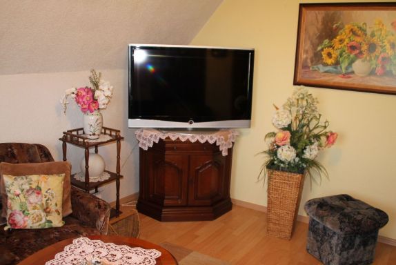 Ihr Urlaubsobjekt: Die FerienWohnung ist umgeben von einem 500 qm großen, geschlossenen Gartengrundstück mit Wiese, Bäumen, Blumen und Sträuchern. Das Grundstück ist mit einem Zaun umschlossen. Der Vermieter wohnt ständig im Haus. Im Souterrain des Hauses befindet sich die FerienWohnung Fewo I (3 Personen) mit separatem Eingang. Die hier buchbare Wohnung befindet sich im Dachgeschoss. Zur Nutzung stehen zur Verfügung: Sonnenschirm, Gartenmöbel und Grillmöglichkeit. Ihre Ferienwohnung: 3 Zimmer (davon 1 Schlafzimmer), 50 qm, max. 3 Personen. Zentralheizung. Eingang im Dachgeschoss, über eine Innentreppe in den Flur mit Garderobe. Küche mit Esstisch, Cerankochfeld (2 Platten), Kühlschrank mit Eisfach, Kaffeemaschine, Toaster, elektrischem Wasserkocher und Microwelle. Wohnzimmer mit gemütlicher Couch-Sitzecke, TV und Radio. Schlafzimmer mit 1 Doppelbett. Bad mit Dusche, 1 Waschbecken, WC und Fenster. Fernsehempfang erfolgt via Satellit. Haustier: nicht erlaubt. Lage: Putbus. Die FerienWohnung (Baujahr 1980, im Jahr 2015 renoviert) befindet sich in einem einzeln stehenden Einfamilienhaus, am Ortsrand und in ruhiger und sonniger Lage. Die Zufahrt erfolgt über eine Nebenstraße. Parkplatz auf der öffentlichen Straße. Einkauf 500 m, Restaurant 600 m, Ortszentrum 1000 m. Bahnhof in 800 m. In Sellin: Hallenbad und Sauna jeweils 17 km. Hallenspielplatz Pirateninsel 150 m, Kreidefelsen Königsstuhl 22 km, Stralsund 30 km. Im Sommer:Rügischer Bodden 2 km in Neuendorf (Strand mit Wiese und Sand). Golf in Karnitz. Minigolf in Sellin 10 km. Reiten in Altkamp 3 km. Ostsee mit Sandstrand 12 km, Störtebeker Festspiele in Ralswiek von Ende Juni bis Anfang September 14 km. KurzbeschreibungSonstiges : NichtraucherhausKurzbeschreibung 1Anzahl Küchen : 1UmgebungSportmöglichkeiten in der Umgebung : Bolzplatz, Radtouren, Reithalle, Reitplatz / Reitmöglichkeiten, Segeln, Sportcenter, Surfen, WasserskiGarten und AussenanlagenGartenausstattung : Gartenmöbel vorhanden, Grill Basisinformationen - Erlaubte Haustiere: keins - Art d. Wohnung: Maisonette - Art d. Gebäudes: Einfamilienhaus - Etage, auf der sich das Objekt befindet: OG1 - Gesamtanzahl d. Stockwerke im Gebäude über EG: 2 - Grundstücksfläche: 500 m² - Baujahr: 1980 - letzte umfassende Renovierung: 2017 - freistehend - Nichtraucherunterkunft - Schlafzimmeranzahl: 1 - Badezimmeranzahl: 1 Top Merkmale - WLAN - Heizung: überall - Terrasse - Garten: zur gemeinschaftlichen Nutzung - komplett eingefriedet (mit Mauer, Zaun oder Hecke) - Private PKW-Stellplätze insgesamt für diese Unterkunft: 1 - ㄴ davon Garagenstellplätze: keinen - ㄴ davon Carport-Stellplätze: keinen - ㄴ davon private Außenstellplätze: keinen Schlafen im Wohnbereich - Schlafsofa 1 Person Schlafzimmer 1 - Doppelbett (1,80m Breite) - Schlafzimmer abdunkelbar Badezimmer Badezimmer 1 - Dusche - Waschbecken - Toilette sanitäre Einrichtungen in der Nähe - Toilette - Föhn - Tageslicht Kochen/Wohnen - Kaffeemaschine: Kaffeemaschine - Kühl-/Gefrierschrank: Gefrierfach, Kühlschrank - Herd: Zwei-Platten-Herd - Minibackofen - Toaster - Wasserkocher - Anzahl Esstische: 1 - Gesamtzahl Sitzplätze: 4 - Anzahl Wohnzimmer: 1 - Wohnzimmer abdunkelbar Entertainment - Fernseher: TV, Sat.-TV - Musikanlage - Radio Hauswirtschaft - Staubsauger Außenbereich - Grill: Grill Umgebung - Aussicht: Meer/See, Garten, Wald, Wiese - Lebensmittelhandel: 700 m - Cafés/Restaurants: 800 m - Bahnhof: 800 m - Meer: 15,0 km - See: 500 m Besonderheiten - Inmitten der Natur gelegen