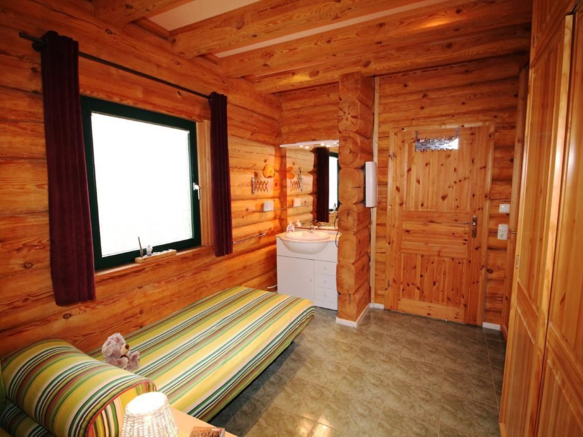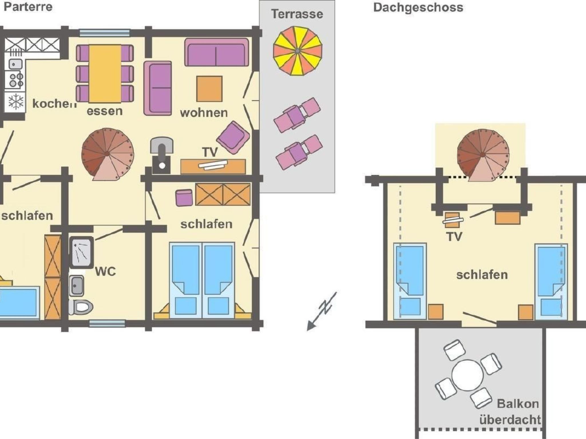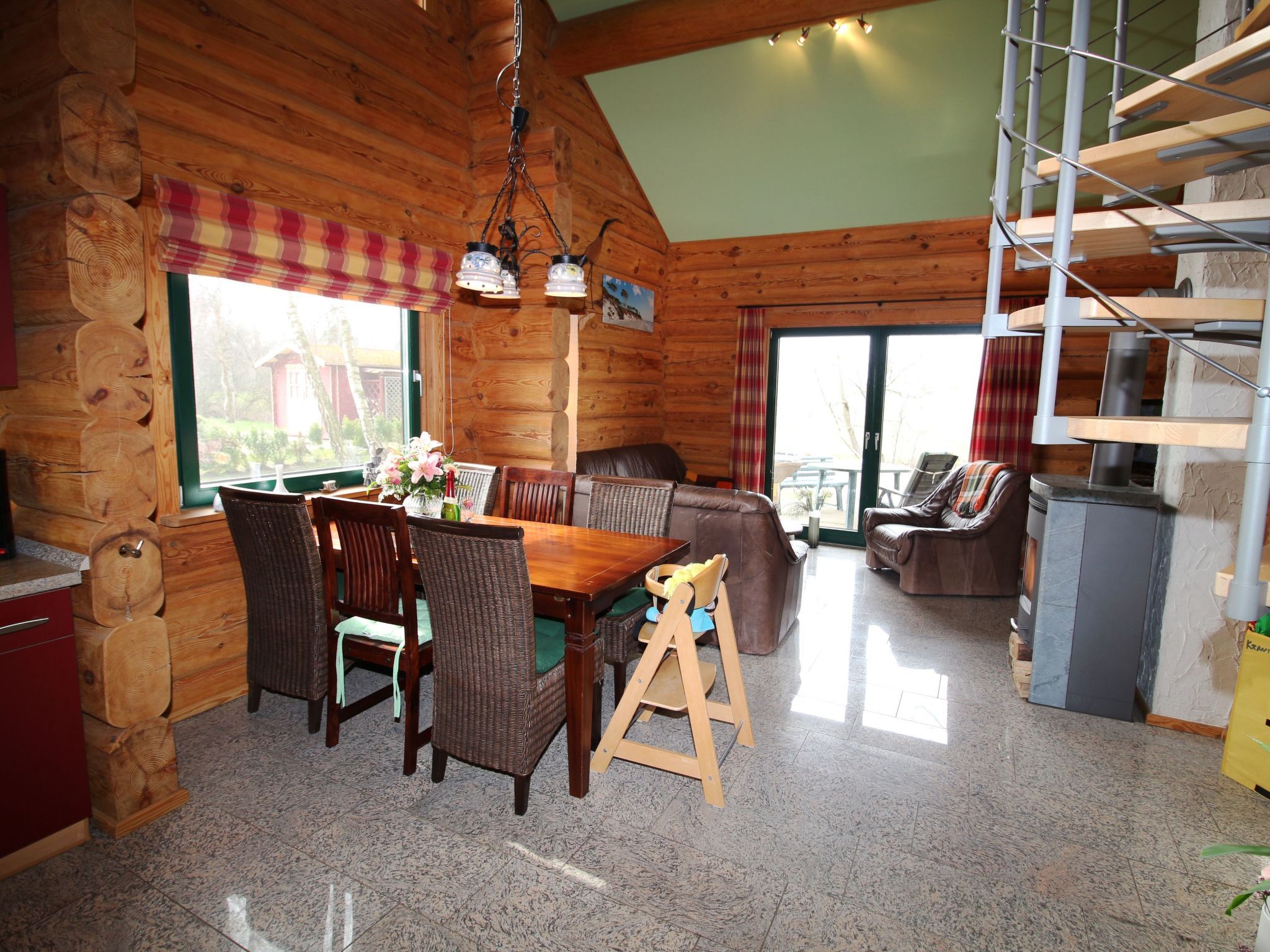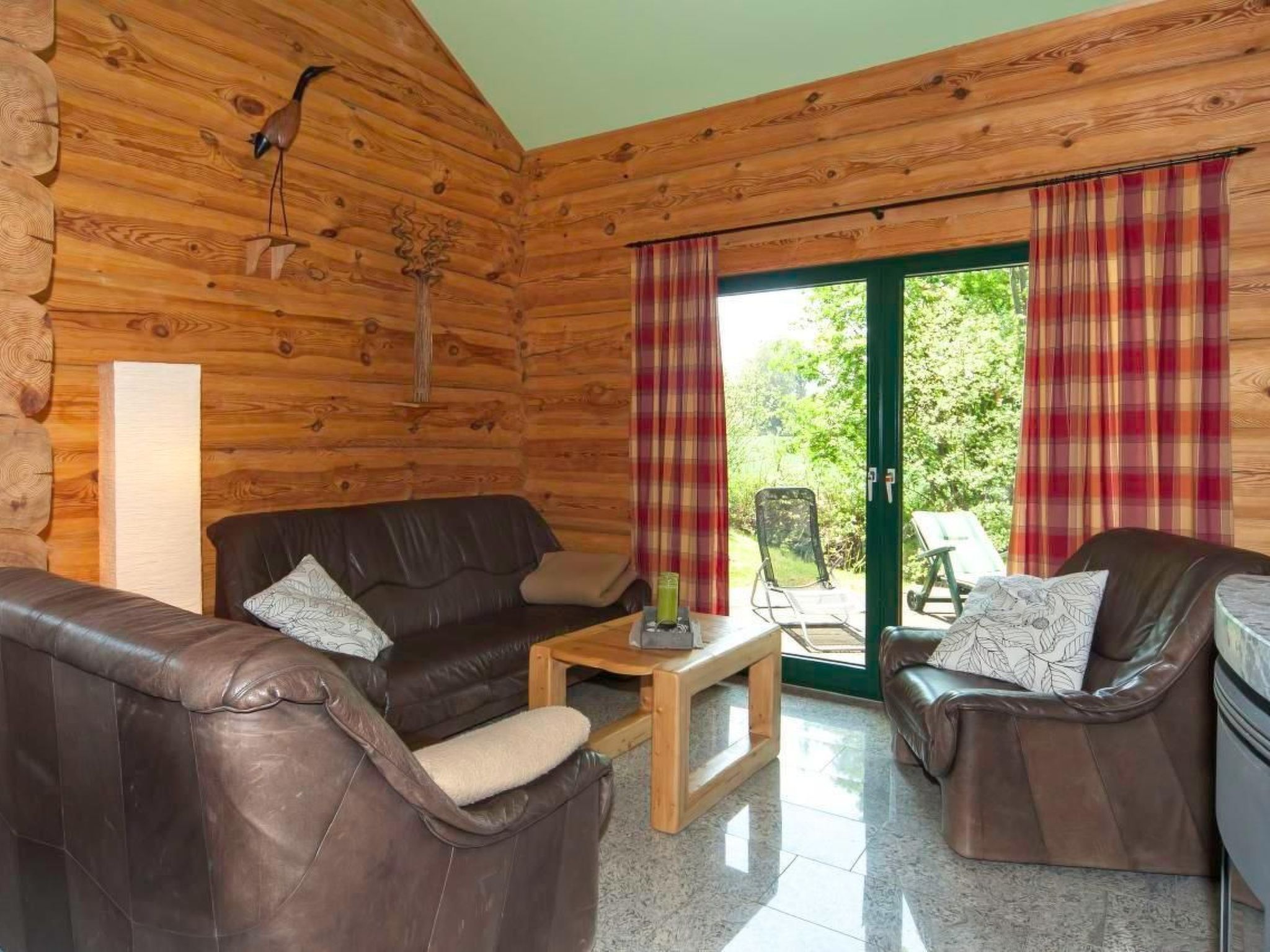 Unser urgemütliches Blockhaus „Haus Kranichblick“ befindet sich in einer im Grünen gelegenen, von pommerscher Waldlandschaft umgebenen Ferienhaussiedlung am Rande des Dorfes Bodstedt und des Naturschutzgebietes „Vorpommersche Boddenlandschaft“. Es garantiert daher einen entspannten und ruhigen Urlaub. Mildes Küstenklima, kilometerlange, feine Sandstrände und urige Wälder formen eine idyllische Lage. Auszeit im Grünen - ein idealer Ferienort zu jeder Jahreszeit abseits vom Trubel der Seebäder.Verbringen Sie Ihren Urlaub in unserem liebevoll gestalteten „Haus Kranichblick“. Das Grundstück umfasst 520 m² und die Wohnfläche im Haus beträgt ca. 100 m². t. Im Erdgeschoss befindet sich eine offene, voll ausgestattete Küche (sollte mal etwas fehlen, werden wir uns darum kümmern), das Wohnzimmer mit einer Couch und einem schönen, wohligen Kaminofen, einem Bad mit großer Dusche und Föhn sowie ein Schlafzimmer mit Doppelbett für 2 Personen und ein weiteres Schlafzimmer mit 2 Einzelbecken und Waschbecken. Das Erdgeschoss ist gefliest und mit Fußbodenheizung ausgestattet. Auf der sonnigen Terrasse kann man sich wunderbar erholen und tolle Grillabende erleben. Es stehen Gartenstühle mit verstellbaren Rückenlehnen und Auflagen zum Sonnenanbeten und ein Säulen-Umluftgrill zur Verfügung. Der Garten lädt zum Spielen, Relaxen, Verweilen und Entspannen ein.Im Obergeschoss befinden ein Schlafraum für 2 Personen sowie der Durchgang zu unserem großen schönen Balkon mit Boddenweitblick und Tierbeobachtungsposten. Selbstverständlich sind Kinderhochstuhl und Reisebett für die Kleinen vorhanden. Wir bitten um Verständnis, dass es sich bei dem Haus um ein Nichtraucherhaus handelt.Haustiere sind erwüeundliche Gastgeber sind für uns eine Selbstverständlichkeit: Der Ansprechpartner vor Ort, der Wolli (Betreiber des Café & Bar Wolli) steht ihnen gern für alle Fragen & Probleme zur Verfügung.Die Siedlung: Die Ferienhaussiedlung besteht aus 28 Ferienhäusern und dem Café & Bar Wolli. Durch die Privatstraße verirren sich nur vereinzelt fremde Autos in die Siedlung, somit ist es möglich seine Kinder weitgehend unbeaufsichtigt durch die Gegend stromern zu lassen. Oft entstehen beim Toben durch Wald und Wiesen neue Freundschaften. Die Grundstücke sind alle so groß, dass man sich zurückziehen und die Seele baumeln lassen kann. Die vielfältigen Baustile der Häuser sind interessant anzusehen und ergeben ein ausgewogenes Siedlungsbild. Vielleicht ist das eine oder andere Detail zum Abgucken für das eigene Heim r direkt vor der Siedlung gelegene Fahrradweg „Östlicher-Backstein-Rundweg“ führt Sie einmal um den gesamten Bodden, ca. 80 km. Dies ist bequem an einem Tag zu schaffen. Zum schönen Ostseestrand in Zingst sind es ca. 30 Radminuten. Der Radweg eignet sich auch für Inline-Skates, Rollschuhe und Skatebords. Joggen und Nordic Walking sind ebenso zu empfehlen.Bodstedt: Besonders der kleine Hafen mit den typischen hölzernen Fischerbooten den Zeesenbooten ist schön anzusehen. Die älteste Zeesenbootregatta findet alljährlich am ersten September Wochenende gibt eine Bootsanlegestelle für Boddenrundfahrten und Übersetzung auf den Darß, Fahrradmitnahme ist möglich. Der ortseigne Badestrand ist nur drei Radminuten entfernt. Die Flachwasserzonen sind ideal für Schwimmanfänger und Wasserratten. Erwachsene können auf der großen Wiese daneben die Seele baumeln lassen. Der Ort hat drei kleine Gaststätten in denen frischer Fisch und Bratkartoffel angeboten werden. Der Fischer versorgt Urlauber und Einheimische mit täglich frischem und geräuchertem Fisch. Ob per Rad, zu Fuß oder zu Pferd – erleben Sie die Landschaft und den Charme des Ortes pur und hautnah.UmgebungSie verbringen Ihren Urlaub in ruhiger Lage. Das von maritimen Traditionen geprägte Ostseeheilbad Zingst (10 km) und das Ostseebad Prerow (18 km) sind nicht weit entfernt. Die Prerower Bucht zählt zu den schönsten Stränden Europas. Gute Einkaufsmöglichkeiten, Restaurants und Abendveranstaltungen befinden sich in Barth (7 km). Der Bodden und die Ostsee sind ein attraktives Revier für Wassersportler, es gibt unzählige Angebote. Wandern ist In: Ein Blick abseits der Pfade lohnt sich, besonders im Herbst, wenn tausende Kraniche zum Rasten auf dem Zingst Halt machen.Highlights in der Umgebung- Störtebeker Festspiele auf Rügen (75 km)- Kletterwald in Born (23 km)- Karls Erlebnishof in Rövershagen (41 km)- Vogelpark Marlow (38 km) Basisinformationen - Erlaubte Haustiere: 5 - erlaubte Hundegröße: groß (über 60 cm) - befindet sich in: Anlage - Gesamtanzahl d. Stockwerke im Gebäude über EG: 1 - Grundstücksfläche: 520 m² - Nichtraucherunterkunft - Schlafzimmeranzahl: 3 - Badezimmeranzahl: 1 Top Merkmale - WLAN - Heizung: überall - Fußbodenheizung: überall - Balkon - Terrasse - Garten: zur alleinigen Nutzung - Private PKW-Stellplätze insgesamt für diese Unterkunft: 4 - ㄴ davon Garagenstellplätze: keinen - ㄴ davon Carport-Stellplätze: keinen - ㄴ davon private Außenstellplätze: 4 Schlafen Schlafzimmer 1 - Doppelbett (1,80m Breite) Schlafzimmer 3 - 2x Einzelbett Schlafzimmer 5 - 2x Einzelbett Badezimmer Badezimmer 1 - Dusche - Waschbecken - Toilette - Föhn - Tageslicht Kochen/Wohnen - Kaffeemaschine: Kaffeemaschine - Kühl-/Gefrierschrank: Gefrierfach, Kühlschrank - Herd: Elektroherd, Herd - Dunstabzugshaube - Backofen - Toaster - Mikrowelle - Wasserkocher - Spülmaschine - Anzahl Esstische: 1 - Gesamtzahl Sitzplätze: 6 - Anzahl Wohnzimmer: 1 - Wohnzimmer abdunkelbar - Kamin Entertainment - Fernseher: TV, Sat.-TV Für Kinder - Kinderstuhl Hauswirtschaft - Staubsauger Nachhaltigkeit - Abfallrecycling - Wassersparende Geräte - Hausisolierung Außenbereich - Grill: Grill Umgebung - direkt am Waldrand - nächstgelegene Ortsmitte: 1,5 km - Lebensmittelhandel: 5,0 km - Bars/Clubs/Ausgehen: 50 m - Cafés/Restaurants: 1,0 km - Bahnhof: 57,0 km - Flughafen: 8,0 km - Autobahn: 50,0 km - 