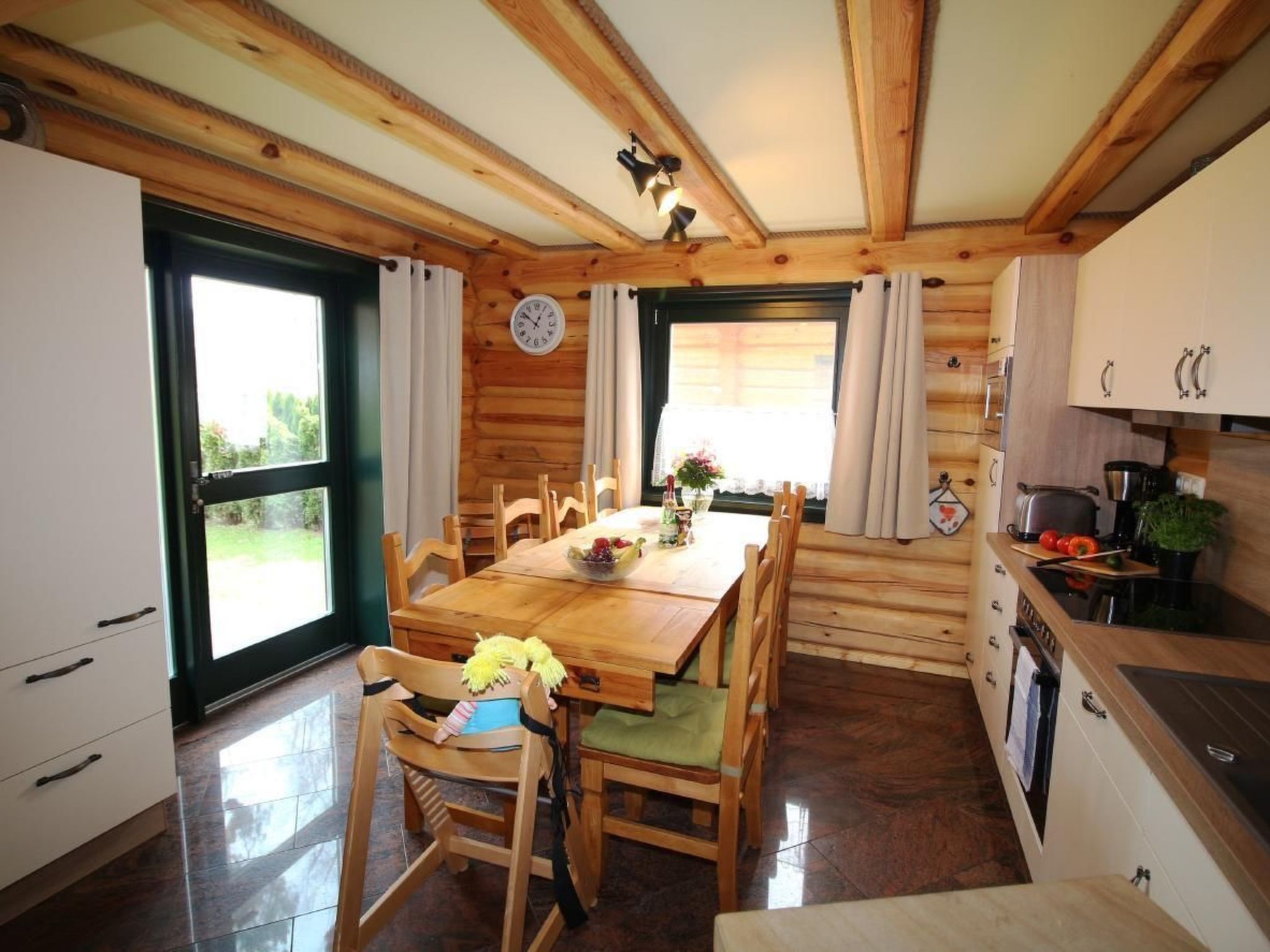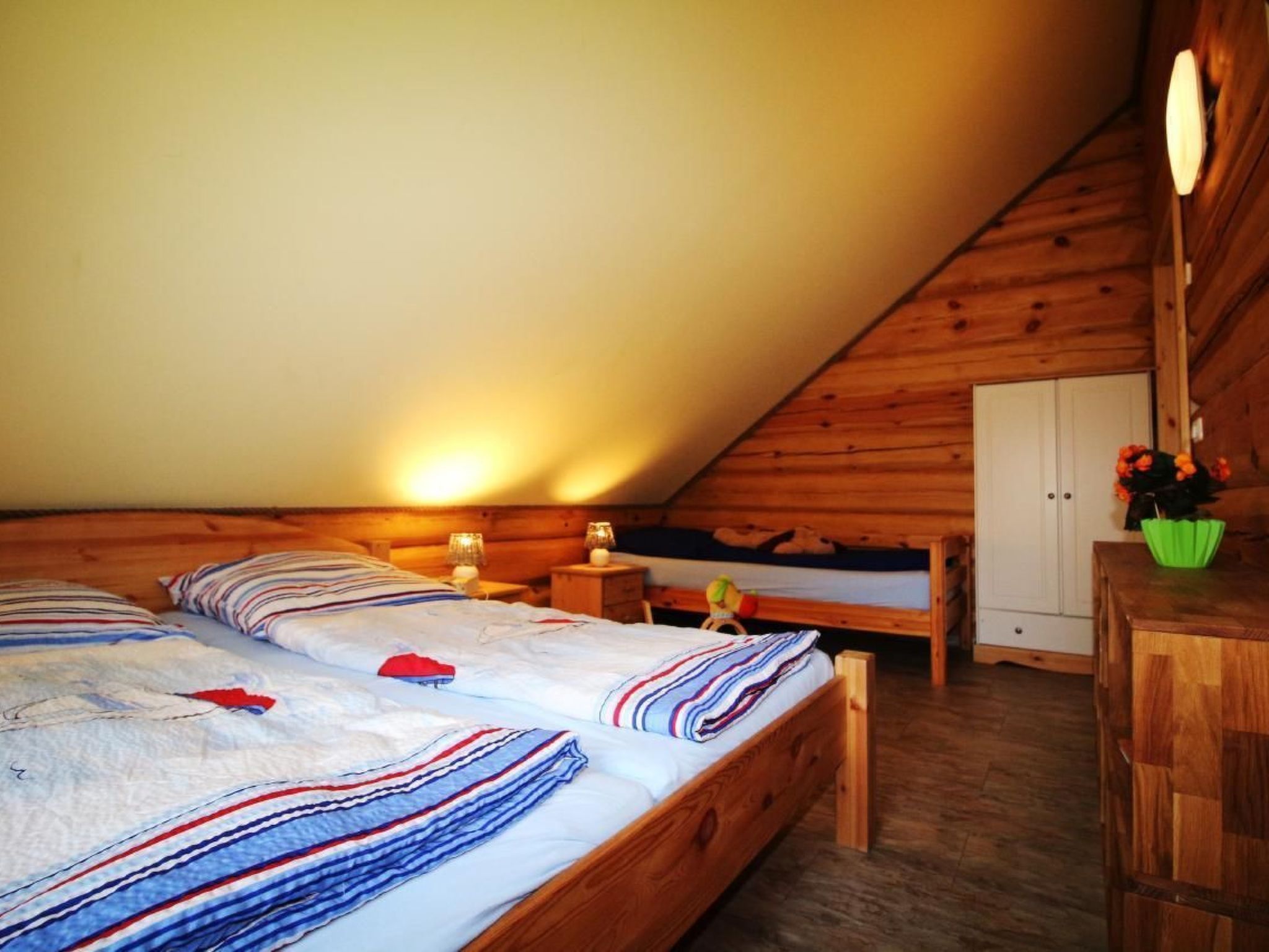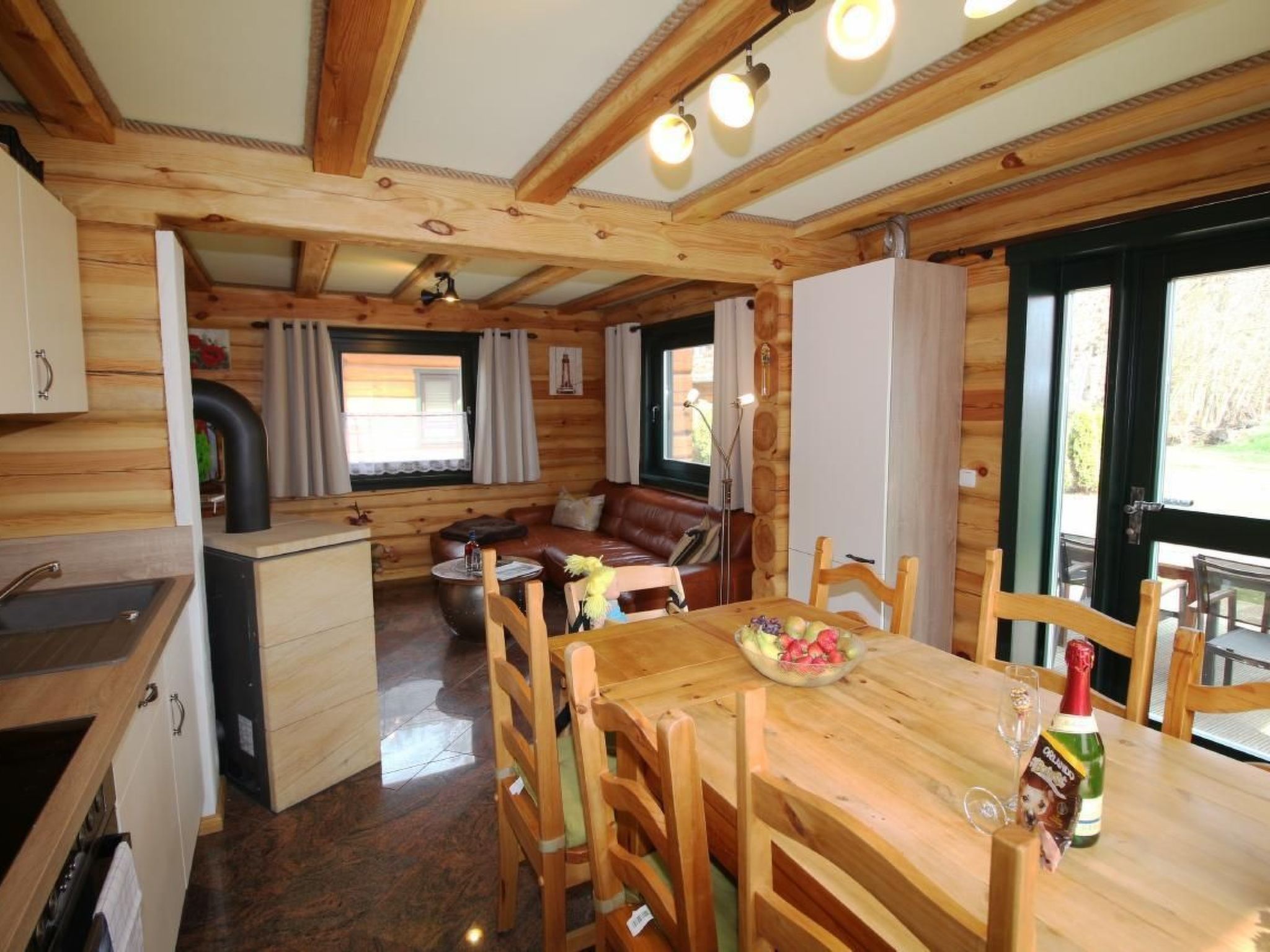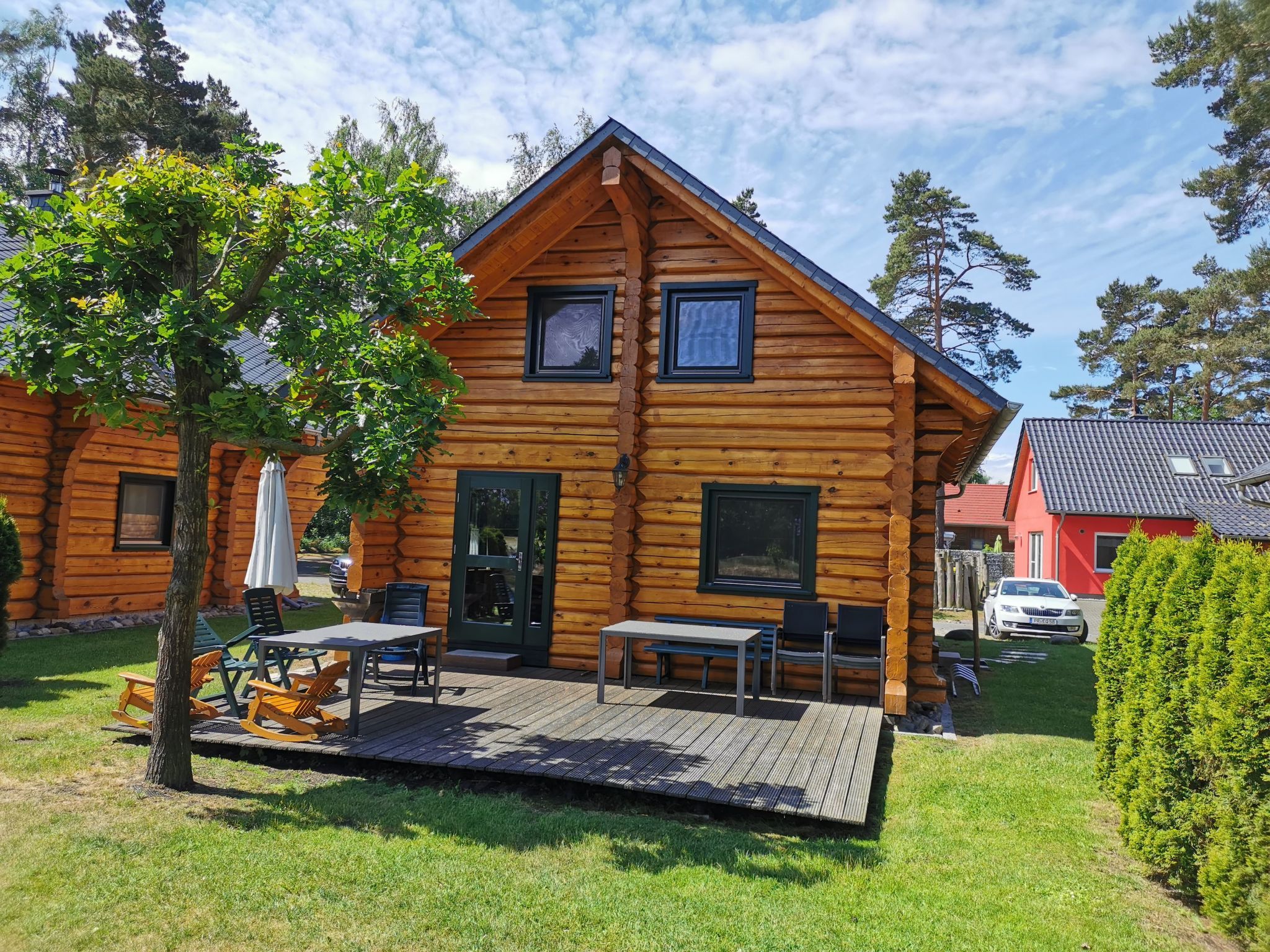 Unser urgemütliches Blockhaus „Haus Fink“ befindet sich in einer im Grünen gelegenen, von pommerscher Waldlandschaft umgebenen Ferienhaussiedlung am Rande des Dorfes Bodstedt und des Naturschutzgebietes „Vorpommersche Boddenlandschaft“. Es garantiert daher einen entspannten und ruhigen Urlaub. Mildes Küstenklima, kilometerlange, feine Sandstrände und urige Wälder formen eine idyllische Lage. Auszeit im Grünen - ein idealer Ferienort zu jeder Jahreszeit abseits vom Trubel der Seebäder.Wir sind auf der Suche nach festen/regelmäßigen Mietern für unser Wochenendhaus, die dieses für ihre Freizeit nutzen möchten. Ihre Miete ist eine jährliche Miete und errechnet sich aus saisonalen Nutzungstagen. Bei Interesse und Fragen dazu, können sie uns gerne kontaktieren.Ihre möglichen Zeiten werden mit Familie Hauschild und Tapfer abgestimmt und sind im Belegungsplan sichtbar.Verbringen Sie Ihren Urlaub in unserem liebevoll gestalteten „Haus Fink“. Das Grundstück umfasst 510 m² und die Wohnfläche im Haus beträgt ca. 140 m². Das Blockhaus wurde im Januar 2017 fertiggestellt.Im Erdgeschoss befindet sich eine offene, voll ausgestattete Küche (sollte mal etwas fehlen, werden wir uns darum kümmern), das Wohnzimmer mit einer Couch und einem schönen, wohligen Kaminofen, einem Bad mit großer Dusche und Föhn sowie ein Schlafzimmer für 2 Personen(Ehebett) und ein kleines Schlafzimmer mit Doppelstockbett. Das Erdgeschoss ist gefliest und mit Fußbodenheizung ausgestattet. Auf der sonnigen Terrasse kann man sich wunderbar erholen und tolle Grillabende erleben. Es stehen Gartenstühle mit verstellbaren Rückenlehnen und Auflagen zum Sonnenanbeten und ein Säulen-Umluftgrill zur Verfügung. Der Garten lädt zum Spielen, Relaxen, Verweilen und Entspannen ein.Im Obergeschoss befinden sich zwei schöne Schlafräume für insgesamt 5 Personen, ein Bad mit Dusche. Eine kleine Lounge läd zum Lesen ein, auch ein zweiter TV ist dort vorhanden. Selbstverständlich stehen Kinderhochstuhl und Reisebett für die Kleinen bereit. Wir bitten um Verständnis, dass es sich bei dem Haus um ein Nichtraucherhaus handelt.Haustiere sind erwüeundliche Gastgeber sind für uns eine Selbstverständlichkeit: Der Ansprechpartner vor Ort steht Ihnen gern für alle Fragen & Probleme zur Verfügung.Die Siedlung: Die Ferienhaussiedlung besteht aus 28 Ferienhäusern und dem Café & Bar Wolli. Durch die Privatstraße verirren sich nur vereinzelt fremde Autos in die Siedlung, somit ist es möglich seine Kinder weitgehend unbeaufsichtigt durch die Gegend stromern zu lassen. Oft entstehen beim Toben durch Wald und Wiesen neue Freundschaften. Die Grundstücke sind alle so groß, dass man sich zurückziehen und die Seele baumeln lassen kann. Die vielfältigen Baustile der Häuser sind interessant anzusehen und ergeben ein ausgewogenes Siedlungsbild. Vielleicht ist das eine oder andere Detail zum Abgucken für das eigene Heim r direkt vor der Siedlung gelegene Fahrradweg „Östlicher-Backstein-Rundweg“ führt Sie einmal um den gesamten Bodden, ca. 80 km. Dies ist bequem an einem Tag zu schaffen. Zum schönen Ostseestrand in Zingst sind es ca. 30 Radminuten. Der Radweg eignet sich auch für Inline-Skates, Rollschuhe und Skatebords. Joggen und Nordic Walking sind ebenso zu empfehlen.Bodstedt: Besonders der kleine Hafen mit den typischen hölzernen Fischerbooten den Zeesenbooten ist schön anzusehen. Die älteste Zeesenbootregatta findet alljährlich am ersten September Wochenende gibt eine Bootsanlegestelle für Boddenrundfahrten und Übersetzung auf den Darß, Fahrradmitnahme ist möglich. Der ortseigne Badestrand ist nur drei Radminuten entfernt. Die Flachwasserzonen sind ideal für Schwimmanfänger und Wasserratten. Erwachsene können auf der großen Wiese daneben die Seele baumeln lassen. Der Ort hat drei kleine Gaststätten in denen frischer Fisch und Bratkartoffel angeboten werden. Der Fischer versorgt Urlauber und Einheimische mit täglich frischem und geräuchertem Fisch. Ob per Rad, zu Fuß oder zu Pferd – erleben Sie die Landschaft und den Charme des Ortes pur und hautnah.Umgebung Sie verbringen Ihren Urlaub in ruhiger Lage. Das von maritimen Traditionen geprägte Ostseeheilbad Zingst (10 km) und das Ostseebad Prerow (18 km) sind nicht weit entfernt. Die Prerower Bucht zählt zu den schönsten Stränden Europas. Gute Einkaufsmöglichkeiten, Restaurants und Abendveranstaltungen befinden sich in Barth (7 km). Der Bodden und die Ostsee sind ein attraktives Revier für Wassersportler, es gibt unzählige Angebote. Wandern ist In: Ein Blick abseits der Pfade lohnt sich, besonders im Herbst, wenn tausende Kraniche zum Rasten auf dem Zingst Halt machen.Highlights in der Umgebung- Störtebeker Festspiele auf Rügen (75 km)- Kletterwald in Born (23 km)- Karls Erlebnishof in Rövershagen (41 km)- Vogelpark Marlow (38 km) Basisinformationen - Erlaubte Haustiere: 5 - erlaubte Hundegröße: groß (über 60 cm) - befindet sich in: Anlage - Art d. Gebäudes: Einfamilienhaus - Gesamtanzahl d. Stockwerke im Gebäude über EG: 1 - Grundstücksfläche: 530 m² - Baujahr: 2016 - Nichtraucherunterkunft - Schlafzimmeranzahl: 4 - Badezimmeranzahl: 2 Top Merkmale - WLAN - Heizung: überall - Fußbodenheizung: überall - Terrasse - Garten: zur alleinigen Nutzung - Private PKW-Stellplätze insgesamt für diese Unterkunft: keinen - ㄴ davon Garagenstellplätze: keinen - ㄴ davon Carport-Stellplätze: keinen - ㄴ davon private Außenstellplätze: keinen Schlafen im Wohnbereich - Schlafsofa 1 Person Schlafzimmer 1 - Doppelbett (1,80m Breite) Schlafzimmer 3 - Doppelbett (1,80m Breite) Schlafzimmer 5 - Doppelbett (1,80m Breite) - Einzelbett Schlafzimmer 7 - Etagenbett Badezimmer Badezimmer 1 - Dusche - Waschbecken - Toilette - Föhn - Tageslicht Badezimmer 3 - Dusche - Waschbecken - Toilette - Föhn - Tageslicht Kochen/Wohnen - Kaffeemaschine: Kaffeemaschine - Kühl-/Gefrierschrank: Gefrierfach, Kühlschrank - Herd: Herd - Backofen -