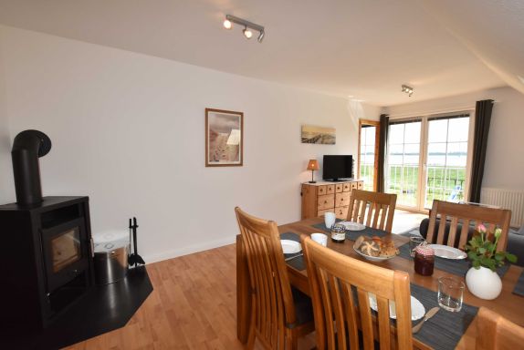 Ferienwohnung Nr. VI: 4- Raum -Fewo (6 Erw.+ 1 Kleinkind) im Dachgeschoss mit Kamin, Dachterrasse und herrlichem Blick auf das Wasser. Großzügiges Wohnzimmer mit Seeblick, Esstisch, Einbauküche (4- Platten- Herd, Backofen, Toaster, Wasserkocher, Kühlschrank mit Gefrierfach, Geschirrspüler), Wohnzimmer mit Kamin, Sitzecke und TV. Drei Schlafzimmer (1 x 1 Doppelbett 1,80 x 2,00m, 1 x 1 französischem Doppelbett (1,40 x 2,00m) sowie 1 x 2 Einzelbetten 0,90 x 2,00). Bad mit Dusche und zwei Waschbecken.
