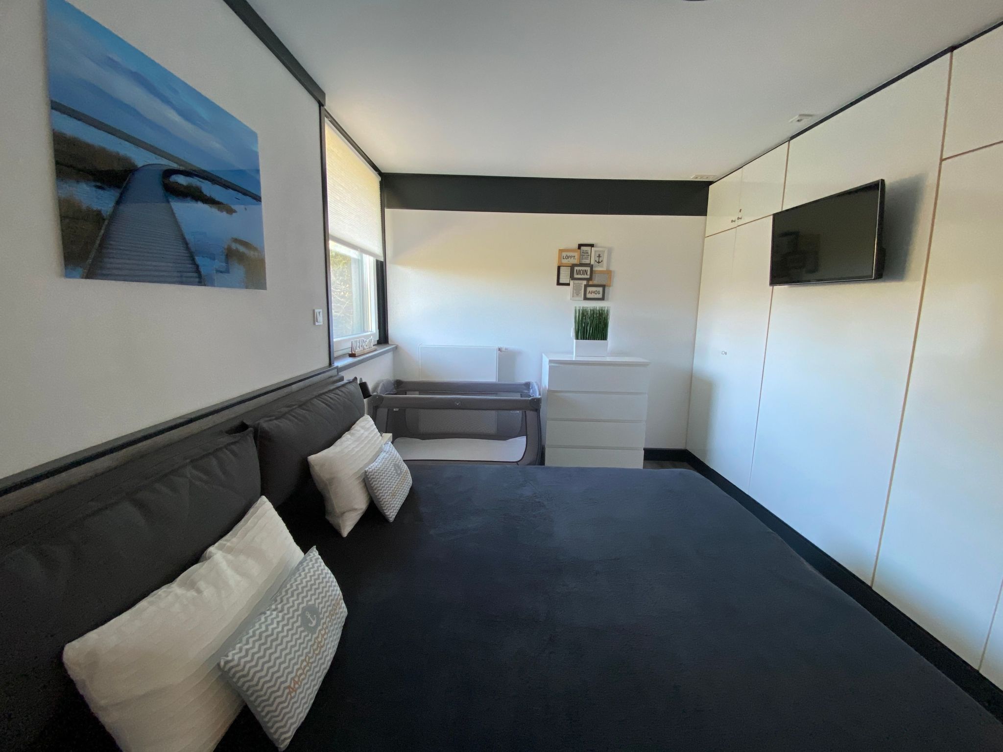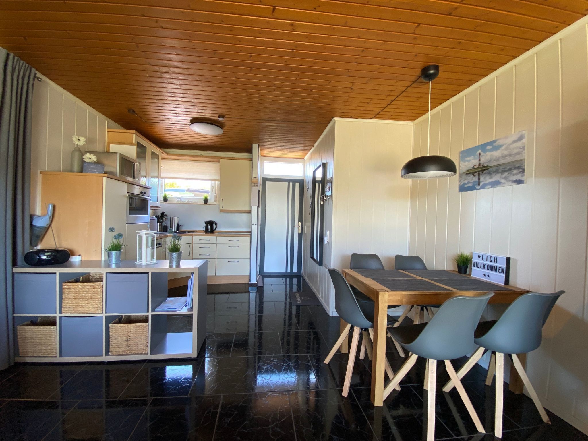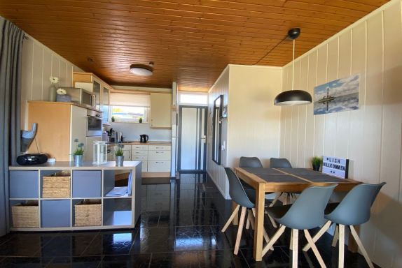 Das Ferienhaus befindet sich im Aidapark Tossens am Ende einer ruhigen Seitenstraße in unmittelbarer Nähe zum Deich. Es handelt sich um ein gut ausgestattetes Ferienhaus, das max. 5 Personen und einem Kleinkind (bis max. 3 Jahre) einen gemütlichen Nordseeaufenthalt ermöglicht. Das Ferienhaus verfügt über einen Wohn-/Essbereich mit Einbauküche + TV, ein Schlafzimmer mit Doppelbett + TV + Kleinkind-Zustellbett, ein Schlafzimmer mit 2 Einzelbetten und einem ausziehbaren Schlafhocker + TV + Nintendo Wii, ein Badezimmer mit Dusche und WC und einen kleinen Abstellraum. Vorhanden sind 3 Sat-TV, Hifi-Anlage mit CD, Bluetooth und USB, Nintendo Wii mit diversen Spielen, Mikrowelle, Backofen, Cerankochfeld, Spülmaschine, Kühlschrank mit Gefrierfach, Kaffeemaschinen (Senseo, Tassimo, Filtermaschine), Wasser- und Eierkocher, Mixer, Toaster, Kleinkind-Zustellbett mit Wickelauflage, Kinderhochstuhl, Bügelbrett, Bügeleisen, Waschmaschine, Trockner, Fön, Gesellschaftsspiele, Bücher und kostenloses W-LAN (separate Nutzungsvereinbarung erforderlich).Das Haus verfügt über eine moderne Gasheizung und wird ganzjährig vermietet. Zum Ferienhaus gehört eine weitläufige Wiese zur Alleinnutzung, eine große möblierte Terrasse mit Tisch und Stühlen, Strandkorb und Liegen. Außerdem ist eine hauseigene Grill- und Feuerstelle sowie ein Standascher zum Rauchen auf der Terrasse vorhanden. Eine Bierzeltgarnitur, ein Bollerwagen und diverse Spielgeräte für den großen Garten (Tischtennisplatte, Gartentrampolin, Fußballtore und Bälle, Boule, Bobbycar, Dreirad, Kleinkinderfahrrad, …) stehen zur kostenlosen, pflegsamen Nutzung ebenfalls zur Verfügung. Zusätzlich gibt es ein Gartenhaus, in dem mitgebrachte Fahrräder, Kinderwagen etc. eingeschlossen werden können. Der Garten ist komplett eingezäunt bzw. mit einer dichten Hecke eingefasst. Das Ferienhaus ist eines der wenigen freistehenden Häuser im Aidapark Tossens. Direkt vor dem Haus befindet sich ein Stellplatz für einen PKW. Auf einem nahegelegenen Parkplatz in ca. 300 m Entfernung befinden sich weitere kostenlose Parkmöglichkeiten. Der Aidapark Tossens befindet sich in unmittelbarer Nähe zum Deich. Der Strand und der separat abgetrennte 1. Babystrand Deutschlands ist ca. 500 m entfernt. Auch Geschäfte und Restaurants sind in dieser Entfernung zu erreichen. Weitere mögliche Freizeitbeschäftigungen: - Wattwanderungen mit Wattführer direkt ab Tossens - Erlebnisbad Aqua Mundo in Tossens - Sauna und Wellness im Aqua Mundo in Tossens - Fahrradfahren in Butjadingen (ca. 250 km Radwegenetz, Fahrradverleihe in der Nachbarschaft vorhanden) - Minigolf in Tossens und Burhave - GPS-Krimis in Burhave und Tossens (Infos bei den Tourismusinformationen) - Nordseelagune in Burhave - Spielscheune in Burhave (3000 qm große Indoorspielhalle) - Kite-Surfen zwischen Fedderwardersiel und Burhave - Nationalpark-Haus Museum in Fedderwardersiel - Krabbenkutterhafen mit Schiffsausflügen in Fedderwardersiel - Friesengolf auf dem Hof Iggewarden - Kletterpark „KiG - Klettern im Garten“ zwischen Burhave und Stollhamm - Ausflüge mit der Weserfähre von Blexen nach Bremerhaven. Dort gibt es sehr interessante Museen, wie das Klimahaus oder das Auswandererhaus, die auch für Kinder sehr spannend sind. - Ausflüge mit der Personen- und Fahrradfähre von Eckwarderhörne nach Wilhelmshaven - Ausflug in den Jaderpark (Tier- und Freizeitpark in Jaderberg) Basisinformationen - Erlaubte Haustiere: keins - Unterkunftstyp: Ferienhaus - befindet sich in: Ferienpark - Art d. Gebäudes: Bungalow - Gesamtanzahl d. Stockwerke im Gebäude über EG: 0 - Grundstücksfläche: 481 m² - Baujahr: 1977 - letzte umfassende Renovierung: 2022 - freistehend - keine Einsicht von der Straße - Nichtraucherunterkunft - Schlafzimmeranzahl: 2 - Badezimmeranzahl: 1 Top Merkmale - WLAN - Heizung: überall - Fußbodenheizung: teilweise - Terrasse - Garten: zur alleinigen Nutzung - komplett eingefriedet (mit Mauer, Zaun oder Hecke) - Private PKW-Stellplätze insgesamt für diese Unterkunft: 1 - ㄴ davon Garagenstellplätze: keinen - ㄴ davon Carport-Stellplätze: keinen - ㄴ davon private Außen­stellplätze: 1 Schlafen Schlafzimmer 1 - Doppelbett (1,80m Breite) - Kinder-/Babybett - Schlafzimmer abdunkelbar Schlafzimmer 9 - 2x Einzelbett - Schlafsofa 1 Person - Schlafzimmer abdunkelbar Badezimmer Badezimmer 1 - Dusche - Waschbecken - Toilette - Föhn - Tageslicht Kochen/Wohnen - Kaffeemaschine: Filter-Kaffeemaschine, Kapsel-Kaffeemaschine, Pads-Kaffeemaschine - Kühl-/Gefrierschrank: Gefrierfach, Tiefkühlschrank, Kühlschrank - Herd: Glaskeramikkochfeld - Dunstabzugshaube - Backofen - Toaster - Mikrowelle - Wasserkocher - Spülmaschine - Anzahl Esstische: 1 - Gesamtzahl Sitzplätze: 5 - Anzahl Wohnzimmer: 1 - Wohnzimmer abdunkelbar Entertainment - Fernseher: Sat.-TV - Smart-TV - Spielekonsole - Musikanlage - Radio - Gesellschaftsspiele für Erwachsene - Tischtennisplatte - Fitnessgeräte Für Kinder - Wickelauflage - Bettgitter - Kinderstuhl - Kindergeschirr und -besteck - Steckdosenschutz - Kinder-Toilettensitz - Kinderspielzeug - Gesellschaftsspiele für Kinder Hauswirtschaft - Waschmaschine: zur alleinigen Nutzung im Objekt - Wäschetrockner: zur alleinigen Nutzung im Objekt - Wäscheständer - Bügeleisen - Staubsauger - Feuerlöscher - Rauchmelder - Erste Hilfe Set Barrierefreiheit - Stufenfreier Eingang zur Unterkunft - ebenerdige Dusche - höheres WC Nachhaltigkeit - Abfallrecycling - Wassersparende Geräte - Wassersparende Wasserhähne (überall) - Wassersparende Dusche - Wassersparende Toilette - Fahrrad kostenlos - Hausisolierung - Isoliertes Dach - Isolierte Fassade - Energiesparfenster Außenbereich - Outdoormöbel - Grill: Holzkohlegrill - Fahrradabstellplatz überdacht und abschließbar Umgebung - nächstgelegene Ortsmitte: 1,0 km - Lebensmittelhandel: 1,0 km - Bars/Clubs/Ausgehen: 300 m - Cafés/Restaurants: 300 m - Bahnhof: 20,0 km - Flughafen: 80,0 km - Autobahn: 35,0 km -