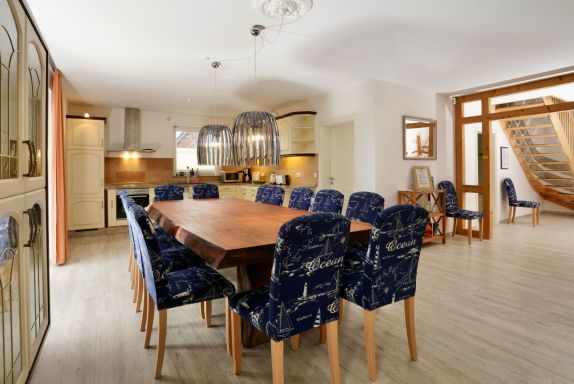 Großes Ferienhaus mit Außenpool - nur 350 m vom Strand der Ostsee entfernt. 14 Erwachsene maximal und 2 Kinder sind willkommen . Ein schöner Wohnbereich, 7 Schlafzimmer 3 Bäder + GWC . Eine Terrasse mit Grill usw. gehört ebenso dazu wie eine gut ausgestattete Küche. Ein Top-Haus für die große Familie oder Freunde. Sie buchen neben der besten Lage zum Strand ein Haus mit Swimmingpool und großer Grillterrasse. Das Haus hat 7 Schlafzimmer ( 5 x Doppelbett; 2 x 2 Einzelbetten + Gitterbett ) 3 Bäder + GWC(EG mit Dusche und Badewanne; OG Dusche ;Spitzdach Gäste WC ) Das Wohnzimmer hat einen schönen Esstisch aus Costa Rica für 14 Personen , dazu gibt es eine Sitzecke für alle am Kamin und einen Flat Screen. Ein 2./3. Fernseher ist im Obergeschoss des Hauses. 4 - auf Anfrage 5 PKW Stellplätze sind vor dem Haus . Das Haus hat ein Pool mit Glasüberdachung, das im Sommer geöffnet werden kann u. ist nutzbar ca. vom 15..4. bis Ende Oktober, vorausgesetzt es ist wärmer als 18 Grad Lufttemperatur außen. Bei der Nutzung sind Sie für die Sicherheit von Nichtschwimmern und nach Einweisung vor Ort für die Sauberhaltung des Wasser mit verantwortlich. Also vorm Baden Duschen usw. Alle Verbrauchskosten, das W-Lan sind im Preis enthalten. . Ein Grill steht auf der Terrasse Die AussenSauna,die Waschmaschine/Trockner hat einen Münzer . . Fahrräder bitte vor Anreise buchen. www. stockundsteinbikes. de. Das Haus hat ein Pool mit Glasüberdachung, das im Sommer geöffnet werden kann u. ist nutzbar ca. vom 15..4. bis Ende Oktober, vorausgesetzt es ist wärmer als 18 Grad Lufttemperatur außen. Bei der Nutzung sind Sie für die Sicherheit von Nichtschwimmern und nach Einweisung vor Ort für die Sauberhaltung des Wasser mit verantwortlich. Also vorm Baden Duschen usw. Alle Verbrauchskosten, das W-Lan sind im Preis enthalten. . Ein Grill steht auf der Terrasse Die AussenSauna,die Waschmaschine/Trockner hat einen Münzer . Sie brauchen Münzen. Fahrräder bitte vor Anreise buchen. www. stockundsteinbikes. de . - Großer Pool und Sauna zur alleinigen Nutzung - Fahrräder mieten bei www. stockundsteinbikes. de Basisinformationen - Erlaubte Haustiere: 2 - erlaubte Hundegröße: groß (über 60 cm) - Unterkunftstyp: Ferienhaus - befindet sich in: nichts zutreffend - Art d. Gebäudes: Einfamilienhaus - Gesamtanzahl d. Stockwerke im Gebäude über EG: 2 - freistehend - kontaktloser Check-in/out - Nichtraucherunterkunft - Schlafzimmeranzahl: 7 - Badezimmeranzahl: 3 Top Merkmale - WLAN - Klimaanlage: keine - Heizung: überall - Terrasse - Garten: zur alleinigen Nutzung - komplett eingefriedet (mit Mauer, Zaun oder Hecke) - Outdoorpool - ㄴ zur alleinigen Nutzung - ㄴ maximale Tiefe: 135 cm - ㄴ Länge: 650 cm - ㄴ Breite: 430 cm - Private PKW-Stellplätze insgesamt für diese Unterkunft: 5 - ㄴ davon Garagenstellplätze: keinen - ㄴ davon Carport-Stellplätze: keinen - ㄴ davon private Außen­stellplätze: 5 Schlafen Schlafzimmer 1 - Doppelbett (1,80m Breite) Schlafzimmer 11 - 2x Einzelbett Schlafzimmer 13 - 4x Einzelbett Schlafzimmer 3 - Doppelbett (1,80m Breite) Schlafzimmer 5 - Doppelbett (1,80m Breite) Schlafzimmer 7 - Doppelbett (1,80m Breite) Schlafzimmer 9 - Doppelbett (1,80m Breite) Badezimmer Badezimmer 1 - Dusche - Badewanne - Toilette Badezimmer 3 - Dusche - Toilette Badezimmer 5 - Toilette Wellness - Outdoor Hot Tub Kochen/Wohnen - Kühl-/Gefrierschrank: Gefrierfach, Tiefkühlschrank, Kühlschrank - Backofen - Toaster - Mikrowelle - Wasserkocher - Spülmaschine - Geschirrtücher - Größe der Küche: 16 m² - Anzahl Esstische: 1 - Gesamtzahl Sitzplätze: 16 - Anzahl Wohnzimmer: 1 - Kamin Für Kinder - Kinderstuhl Hauswirtschaft - Waschmaschine: zur alleinigen Nutzung im Objekt - Staubsauger - Ventilator: keinen Nachhaltigkeit - Aufladestation für Elektro-Autos Außenbereich - Veranda - Grill: Grill Umgebung - Lebensmittelhandel: 3,0 km - Cafés/Restaurants: 3,0 km - Bahnhof: 15,0 km - nächste Haltestelle ÖPNV: 300 m - Sandstrand: 300 m