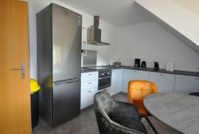 Ihre Ferienwohnung im ersten Obergeschoss hat eine Wohnfläche von ca. 100 qm und ist für die Unterbringung von vier Erwachsenen (und 2 Kleinstkinder) hervorragend geeignet. Im Obergeschoss erwartet Sie ein großer, kombinierter Wohn- und Essbereich mit einer gemütlichen Couchecke. Eine große Küche sowie ein Wannenbad befindet sich auch auf der Etage. Im Dachgeschoss sind die zwei Schlafzimmer mit je einem großen Boxspringbett 1,80 m breit (mit durchgehender Matratze) und ein schönes Duschbad mit Tageslicht. Ein Balkon lädt zum Relaxen in der Sonne ein bzw. man kann den Sonnenuntergang genießen. Auf dem Grundstück befindet sich ein abschließbarer Fahrradschuppen. Anlässlich der überproportional gestiegenen Energiekosten für Heizung und Elektroenergie müssen wir leider in der Zeit von November bis Ende April einen Zuschlag erheben. Für ein Kleinstkind ist ein Unkostenbeitrag von drei EUR pro Tag fällig. Basisinformationen - Erlaubte Haustiere: keins - befindet sich in: nichts zutreffend - Art d. Wohnung: Maisonette - Art d. Gebäudes: Mehrparteienhaus - Etage, auf der sich das Objekt befindet: OG1 - Gesamtanzahl d. Stockwerke im Gebäude über EG: 2 - Grundstücksfläche: 3500 m² - Baujahr: 1958 - letzte umfassende Renovierung: 2022 - keine Einsicht von der Straße - Nichtraucherunterkunft - Schlafzimmeranzahl: 2 - Badezimmeranzahl: 2 Top Merkmale - WLAN - Balkon - Garten: zur gemeinschaftlichen Nutzung - Private PKW-Stellplätze insgesamt für diese Unterkunft: 1 - ㄴ davon Garagenstellplätze: keinen - ㄴ davon Carport-Stellplätze: keinen - ㄴ davon private Außen­stellplätze: keinen Schlafen Schlafzimmer 1 - Doppelbett (1,80m Breite) Schlafzimmer 3 - Doppelbett (1,80m Breite) Badezimmer Badezimmer 1 - Dusche - Waschbecken - Toilette Badezimmer 3 - Badewanne - Waschbecken - Toilette - Föhn Kochen/Wohnen - Kaffeemaschine: Filter-Kaffeemaschine, Kaffeemaschine - Kühl-/Gefrierschrank: Gefrierfach, Tiefkühlschrank, Kühlschrank - Herd: Glaskeramikkochfeld, Elektroherd - Backofen - Toaster - Mikrowelle - Wasserkocher - Spülmaschine - Geschirrtücher - Größe der Küche: 15 m² - Anzahl Esstische: 1 - Gesamtzahl Sitzplätze: 4 - Anzahl Wohnzimmer: 1 - Wohnzimmer abdunkelbar - Kamin Entertainment - Fernseher: Sat.-TV - Radio Für Kinder - Kinderstuhl Hauswirtschaft - Bügeleisen - Staubsauger Umgebung - Aussicht: Meer/See - Lebensmittelhandel: 2,0 km - Bars/Clubs/Ausgehen: 7,0 km - Bahnhof: 9,0 km - Strand: 1,0 km - Sandstrand: 8,0 km - See: 50 m - Wassersport: 1,0 km - Angelplatz: 1,0 km Besonderheiten - Anglerfreundlich