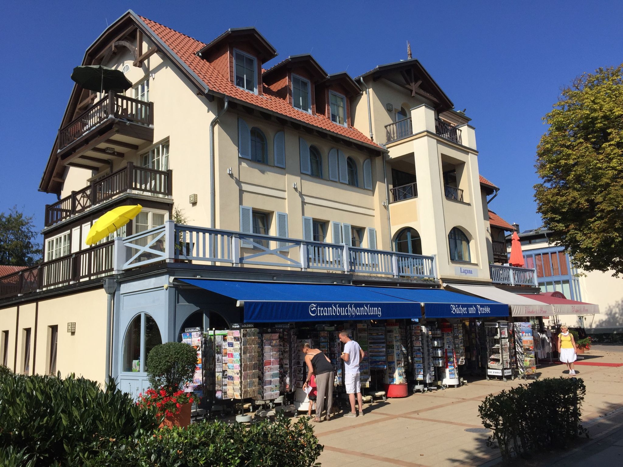 Exclusive Ferienwohnung für 2-4 Personen direkt in der Strandstraße von Kühlungsborn, inmitten einer faszinierenden Wasserlandschaft und nur 300 m von Seebrücke, Promenade und Strand sowie 800 m vom Kühlungsborner Bootshafen entfernt. Die Meerwasserschwimmhalle Ost befindet sich nur wenige Schritte entfernt. Ihr Auto parken Sie bequem in der Tiefgarage. Alle Einkaufsmöglichkeiten in unmittelbarem Umfeld - hier wohnen Sie in äußerster Ruhe und dennoch mitten im Zentrum ... Die wunderschöne 2-Zi-Ferienwohnung in der LAGUNA-Residenz am Meer befindet sich im Erdgeschoß eines kleinen Hauses mit nur 3 Wohnungen innerhalb dieser beliebten Anlage und besteht aus Wohnbereich mit bequemer Schafcouch sowie Eßecke, Küchenbereich, Schlafzimmer mit Doppelbett, Bad mit Dusche/WC und Fenster und schöner 10 qm großer Balkonterrasse inmitten dieser faszinierenden Wasserlandschaft, auf die Sie aus allen Fenstern Ausblick haben … Mit einer Größe von 49 qm ist die Wohnung ideal für 2-4 Personen geeignet. Die Ostseeallee als Flaniermeile verbindet die beiden Ortsteile Kühlungsborn West und Ost und führt vom Baltic-Platz, Kühlungsborn „größtem Balkon“, zur 240 m langen Seebrücke und dem Yachthafen, der sich mit vielen kleinen Bars und Cafés zum quirligen neuen Anziehungspunkt entwickelt hat. Wie an einer Perlenkette reiht sich zwischen Strand und Stadtwald in der Ostseeallee eine alte Villa an die andere. Liebevoll wurden die prächtigen Jugendstilfassaden restauriert, verblichener Glanz wieder aufpoliert, Neubauten gelungen ins Stadtbild integriert: Hier blicken keine Hochhäuser auf Jugendstil-Villen herab! Die über 3 km lange und damit längste Strandpromenade Deutschlands führt vorbei an Dünen, reetgedeckten Cafés und Spielplätzen und lädt genauso zu ausgedehnten Spaziergängen ein wie der 133 ha große Stadtwald direkt hinter dem Strand oder aber die wunderschöne urwüchsige Natur der „Kühlung“, einem Landschaftsschutzgebiet im Hinterland. Weitere Ausflugsmöglichkeiten sind z. B. Heiligendamm, die weiße Stadt am Meer (Deutschlands ältestes Seebad, gegr. 1793 und „wiedereröffnet“ in 2003), Bad Doberan mit dem berühmten Münster oder aber das Seebad Warnemünde - ein Bummel dort am „Alten Strom“ mit vielen kleinen Geschäften, Restaurants und Kneipen sowie den vielen Ausflugsschiffen ist unbedingt empfehlenswert (ca. 30 km)! Unmittelbare Zentrumslage, daher ideal gerade auch außerhalb von Saisonzeiten durch die Nähe zu allen Einkaufsmöglichkeiten und den vielen Cafés, Restaurants, Bank und vielen kleinen Geschäften ... Die Lage ist absolut ruhig, zum Strand sind es ca. 300 m. Ideal für Senioren, Singles oder verliebte Pärchen :-) Die Gestaltung der gesamten LAGUNA-Residenz am Meer im mediterranem Stil stellt sicherlich nicht nur für Kühlungsborn etwas Besonderes dar! Im Haus befindet sich eine attraktive SAUNA, die von den Gästen der LAGUNA-Residenz (gegen Gebühr) jederzeit genutzt werden kann, für die Fahrräder gibt es einen Fahrradraum in der Tiefgarage. Zur Meerwasserschwimmhalle in Kühlungsborn Ost, dem KÜBOMARE, sind es nur wenige Schritte. Basisinformationen - Erlaubte Haustiere: 1 - Art d. Wohnung: Einliegerwohnung - Art d. Gebäudes: Mehrparteienhaus - Gesamtanzahl d. Stockwerke im Gebäude über EG: 2 - Baujahr: 2004 - keine Einsicht von der Straße - Schlafzimmeranzahl: 1 - Badezimmeranzahl: 1 Top Merkmale - Heizung: überall - Terrasse - Garten: zur gemeinschaftlichen Nutzung - komplett eingefriedet (mit Mauer, Zaun oder Hecke) - Private PKW-Stellplätze insgesamt für diese Unterkunft: 1 - ㄴ davon Garagenstellplätze: 1 Schlafen im Wohnbereich - Schlafsofa 2 Personen Schlafzimmer 1 - Doppelbett (1,80m Breite) Badezimmer Badezimmer 1 - Dusche - Waschbecken - Toilette Kochen/Wohnen - Kaffeemaschine: Kaffeemaschine - Kühl-/Gefrierschrank: Gefrierfach, Kühlschrank - Herd: Herd - Backofen - Toaster - Mikrowelle - Wasserkocher - Spülmaschine - Anzahl Wohnzimmer: 1 Entertainment - Fernseher: Kabel-TV - Musikanlage - Radio - CD-Player Hauswirtschaft - Waschmaschine: zur alleinigen Nutzung im Objekt - Wäschetrockner: zur alleinigen Nutzung im Objekt - Staubsauger Barrierefreiheit - Aufzug Umgebung - Lebensmittelhandel: 50 m - Bars/Clubs/Ausgehen: 50 m - Cafés/Restaurants: 100 m - Bahnhof: 1,5 km - Sandstrand: 300 m - Meer: 300 m - Öffentliches Schwimmbad: 300 m - Golfplatz: 5,0 km - Reitmöglichkeit: 1,0 km Besonderheiten - Anglerfreundlich