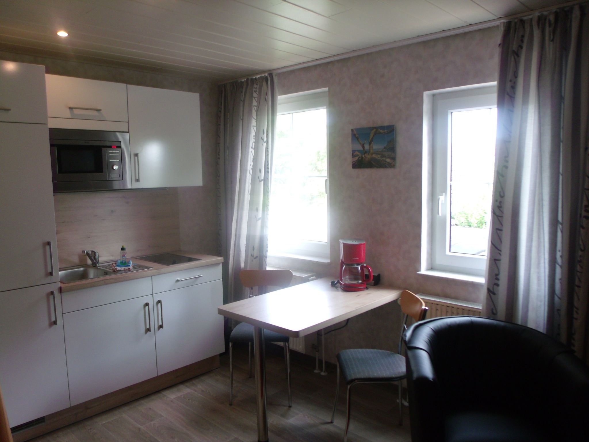 Ferienappartementhaus Rügen / Appartement Arkona Appartementhaus mit Ferienwohnungen (1-2 Raum) umgeben von einem großen Garten... in ruhiger, attraktiver Lage am Rande des Kurparks (große Parkanlage u.a. mit Spielplatz) vom Seebad Breege-Juliusruh, nur ca. 10 Gehminuten vom langen weißen Sandstrand der Ostsee (Schaabe) und auch nur ca. 10 Gehminuten vom Breeger Bodden entfernt. ALLE Fewos mit Küchenzeile incl. üblicher Küchengeräte, KFZ Stellplatz im eingezäunten Grundstück, Grillplatz, Sat-TV, wlan Im großen Garten stehen verschiedene Sitzgruppen und Grill zur freien Verfügung bereit. Das Einraumappartement befindet sich im OG. Im Wohnbereich lädt eine kleine gemütliche Couchecke mit Sessel und Sat-TV zum Verweilen ein. Die Küchenzeile verfügt über 2-Platten-Cerankochfeld, Mikrowelle, Kühlkombi sowie übliche E-geräte und eine kleine Essecke. Das Badezimmer ist mit Dusche,WC und Waschbecken ausgestattet. Das 1,40 Bett befindet sich im Empore (Dachgeschoß) welches man über eine Raumspartreppe erreicht. Appartementhaus mit Ferienwohnungen (1-2 Raum) umgeben von einem großen Garten... in ruhiger, attraktiver Lage am Rande des Kurparks (große Parkanlage u.a. mit Spielplatz) vom Seebad Breege-Juliusruh, nur ca. 10 Gehminuten vom langen weißen Sandstrand der Ostsee (Schaabe) und auch nur ca. 10 Gehminuten vom Breeger Bodden entfernt. Haustiere in diesem Appartement nur auf Anfrage. Bitte den Zugang/Treppe zum Schlafempore beachten. Basisinformationen - Erlaubte Haustiere: beliebig - befindet sich in: Wohnsiedlung - Art d. Wohnung: Maisonette - Etage, auf der sich das Objekt befindet: EG - Gesamtanzahl d. Stockwerke im Gebäude über EG: 1 - Baujahr: 2006 - letzte umfassende Renovierung: 2017 - Anbieter wohnt auf dem Grundstück - Nichtraucherunterkunft - Schlafzimmeranzahl: Studio (kein separates Schlafzimmer) - Badezimmeranzahl: 1 Top Merkmale - WLAN - Heizung: überall - Garten: zur gemeinschaftlichen Nutzung - Private PKW-Stellplätze insgesamt für diese Unterkunft: 2 - ㄴ davon private Außenstellplätze: 2 Schlafen im Wohnbereich - Doppelbett (von 1,31 m bis 1,50 m Breite) Badezimmer Badezimmer 1 - Dusche - Waschbecken - Toilette Kochen/Wohnen - Kaffeemaschine: Filter-Kaffeemaschine - Kühl-/Gefrierschrank: Gefrierfach, Kühlschrank - Herd: Zwei-Platten-Herd, Glaskeramikkochfeld - Toaster - Mikrowelle - Wasserkocher - Geschirrtücher Entertainment - Fernseher: Sat.-TV Für Kinder - Kinderstuhl Hauswirtschaft - Staubsauger Außenbereich - Grill: Holzkohlegrill Umgebung - Lebensmittelhandel: 700 m - Cafés/Restaurants: 300 m - Hafen: 900 m - nächste Haltestelle ÖPNV: 300 m - Sandstrand: 800 m - Spielplatz: 650 m - Öffentliches Schwimmbad: 900 m - Fahrrad-Verleih: 300 m