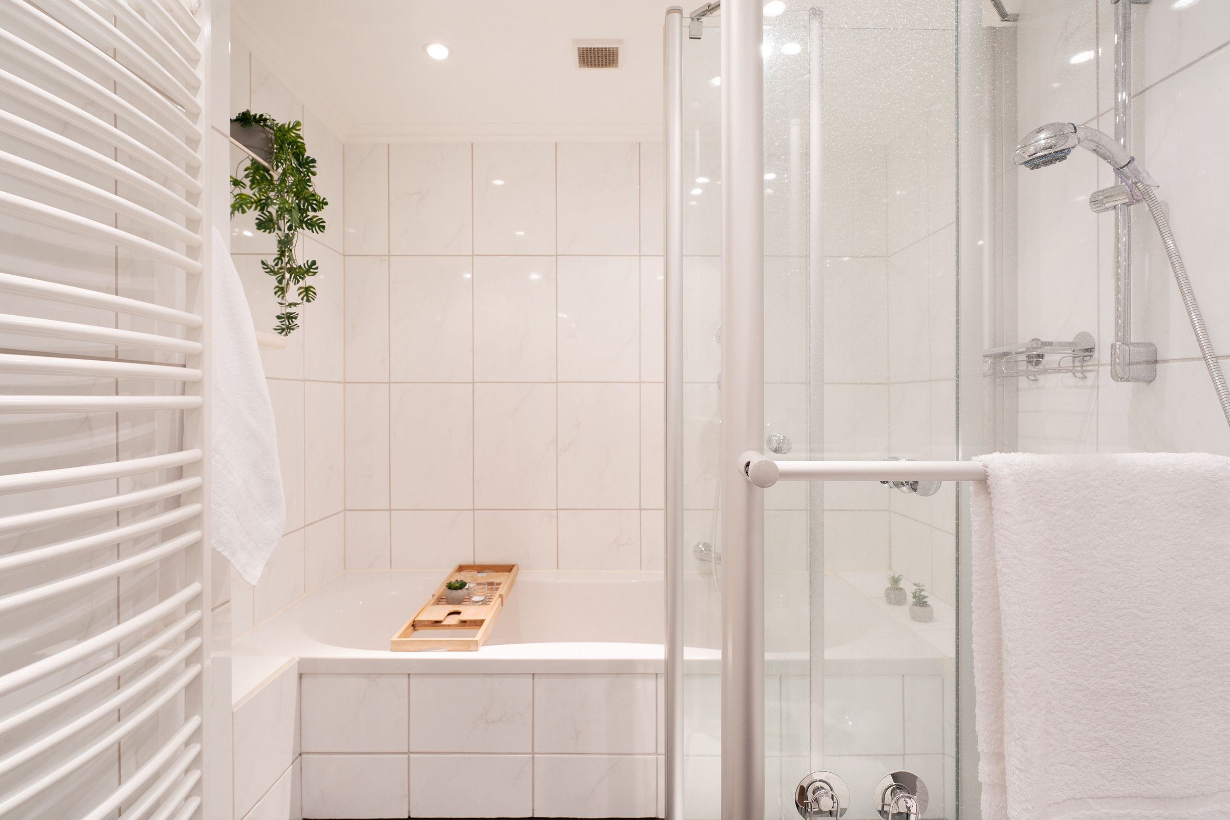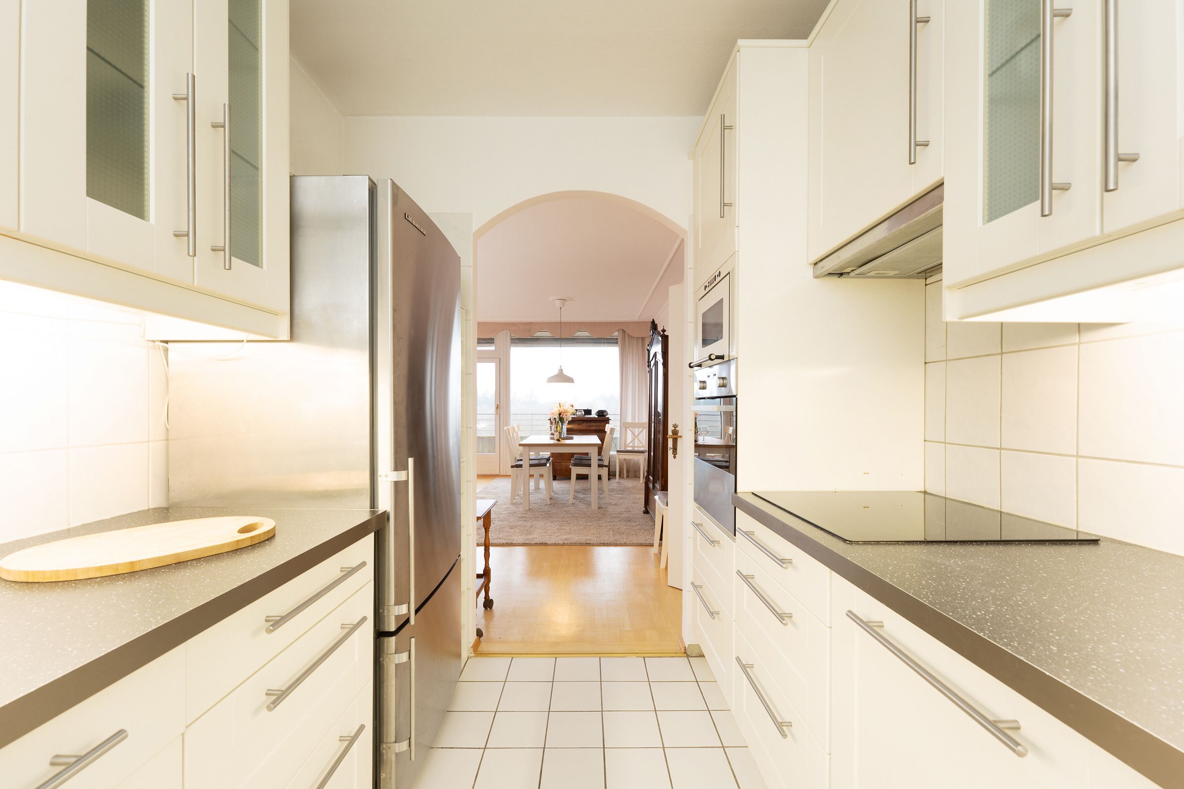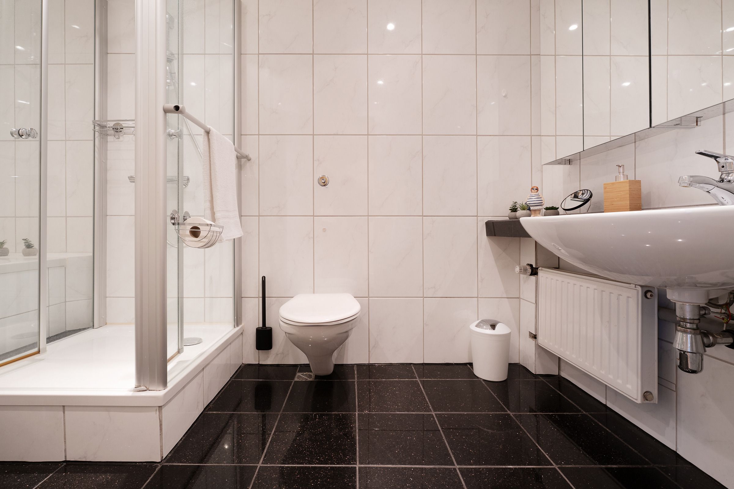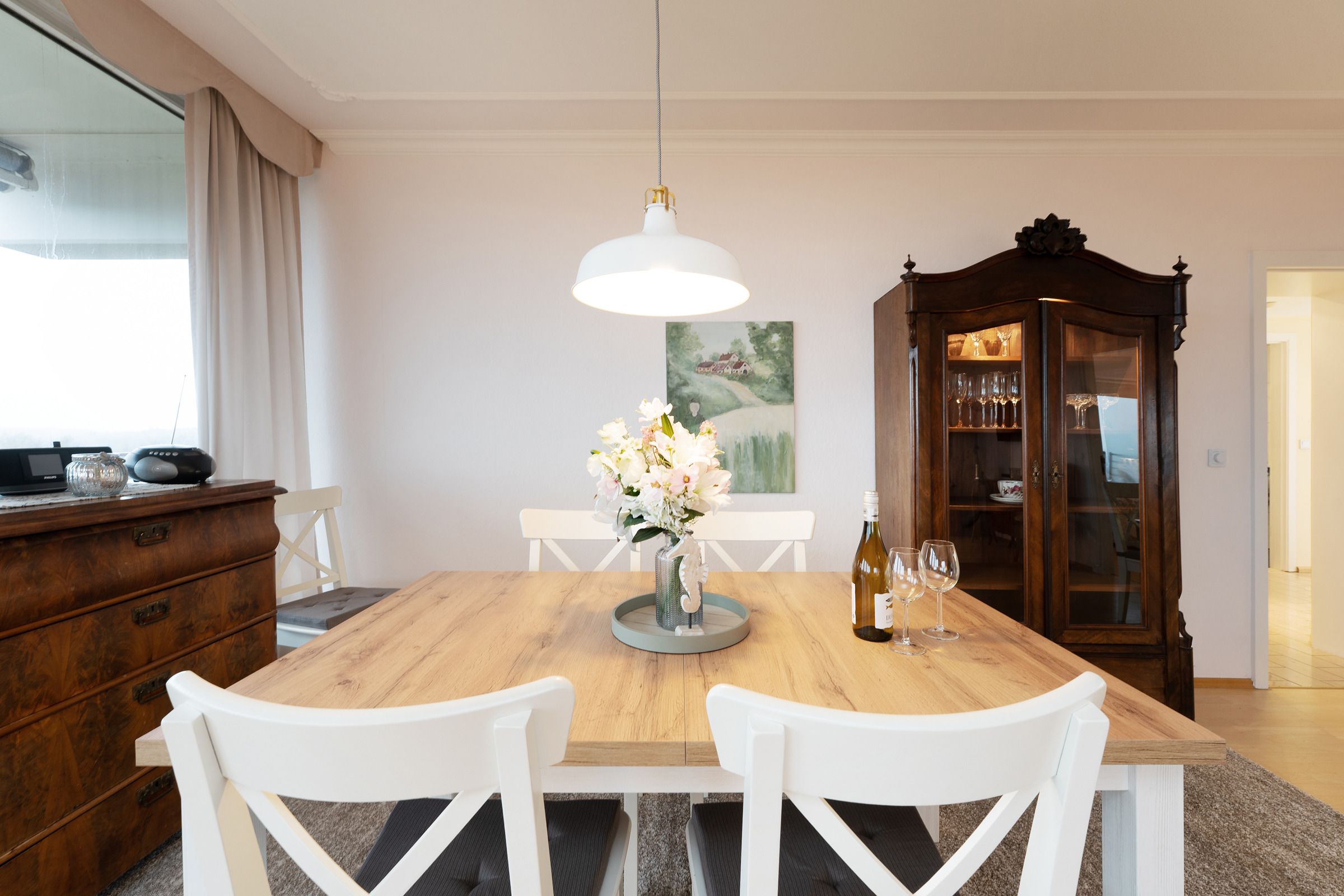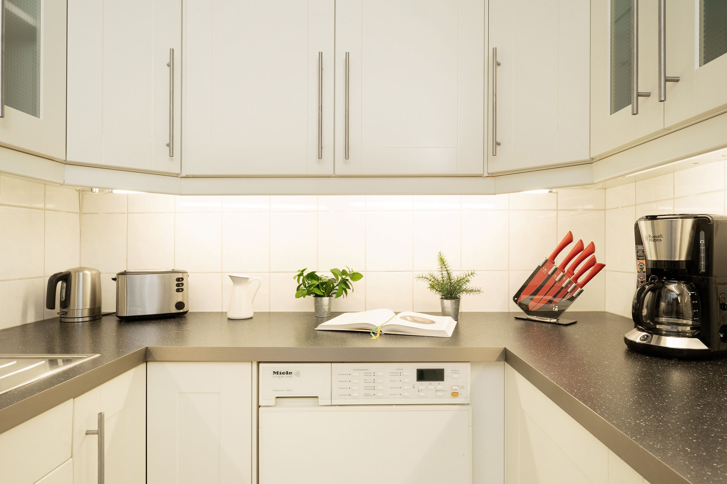 Die moderne Küche ist mit Backofen, Cerankochfeld, Geschirrspülmaschine, Kühlschrank mit Gefrierfach, Kaffeemaschine, Mikrowelle, Wasserkocher und Toaster bestens ausgestattet. Im angrenzenden Essbereich können Sie gemeinsame Mahlzeiten genießen und den Tag planen. Die beiden Schlafzimmer sind gemütlich eingerichtet – eines mit einem komfortablen Doppelbett, das zweite mit einem Schlafsofa. Das moderne Badezimmer verfügt über Dusche, Badewanne, WC, Handtuchheizkörper und Haartrockner.