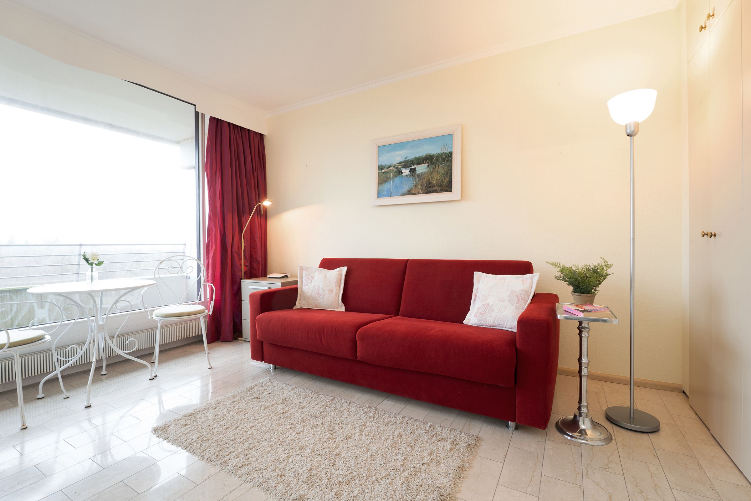 Diese geschmackvoll eingerichtete Ferienwohnung liegt im 11. Stock und bietet alles, was Sie für einen erholsamen Ostseeurlaub benötigen. Der helle Wohnbereich ist mit einer gemütlichen Sofaecke und einem großen Flachbild-TV ausgestattet – perfekt für entspannte Abende. Große Fenster lassen viel Licht herein und führen direkt auf den möblierten Balkon, der nach Südwesten ausgerichtet ist und zum Frühstücken im Freien einlädt.