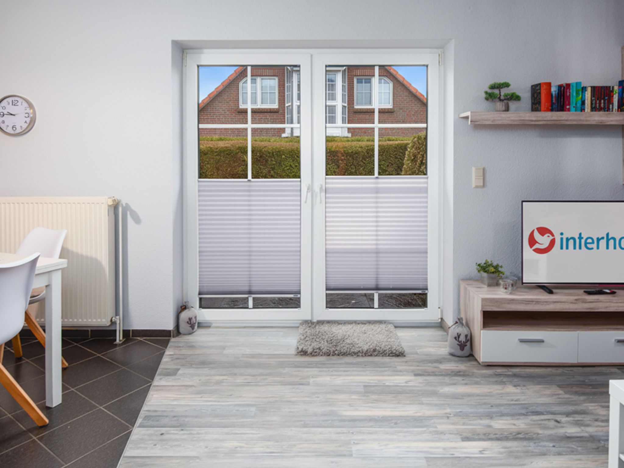 Mehrfamilienhaus. Am Ortsrand, 1.4 km vom Zentrum von Norden, 3.5 km vom Meer, 3.5 km vom Strand. Im Hause: Zentralheizung. Parkplatz beim Haus. Einkaufsgeschäft 700 m, Lebensmittelgeschäft, Supermarkt, Bäckerei 700 m, Fahrradverleih 350 m, Bushaltestelle 350 m, Bahnstation 3.2 km, Fähre 3 km, Sandstrand 3.5 km, Freibad 11 km, Hallenbad 2.4 km. Golfplatz (18 Loch) 6 km, Surfschule 3.5 km, Minigolf 2.4 km.