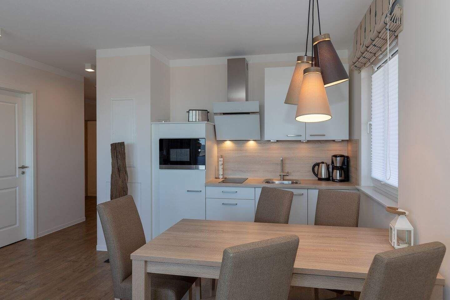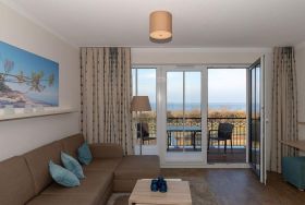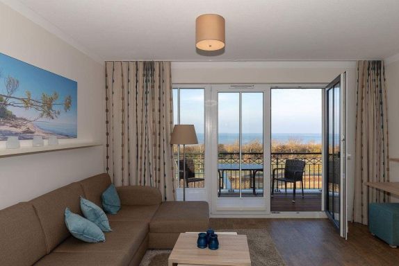 Die 77 m² große 3-Zimmer Suite ist für max. 5 Personen geeignet und befindet sich in nördlicher Lage mit Blick auf die Ostsee.