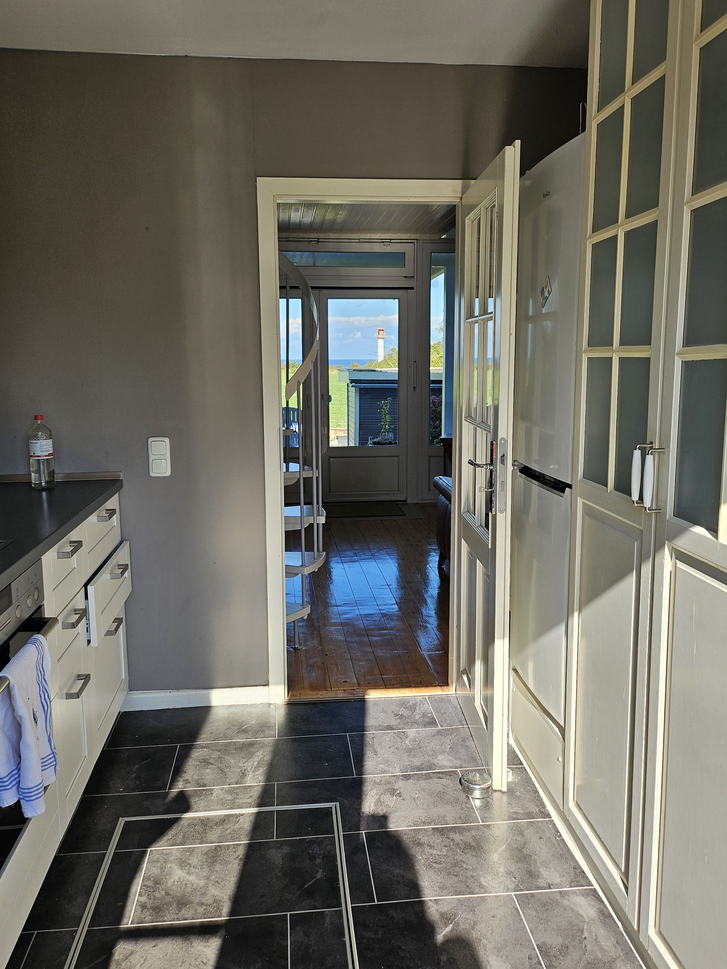 Die unverbaute Aussicht auf die Ostsee, ergänzt durch einen kleinen Leuchtturm, tagsüber ausgeschmückt durch die Segelboote, die nach Langeland oder Kiel gleiten und nachts begleitet vom Polarstern, der direkt über dem Betrachter scheint.