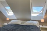 das Elternschlafzimmer mit Doppelbett (1 x 180x200 cm) und das Kinderzimmer mit Tagesbett wo im Handumdrehen Platz für Übernachtungsgäste geschaffen wird. Einfach die Liegefläche herausziehen und schon haben Sie ein bequemes Doppelbett (2 x 80x200 cm)!! Selbstverständlich können Sie die Veluxfenster in den Schlafzimmern verdunkeln. Ein Wohlfühlbad mit bodengleicher Dusche und ein Gäste-WC gehören ebenfalls zur Wohnung. Besonderes Highlight dieser Wohnung ist zweifelsohne die zirka 30 m² große Dachterrasse mit Lounge Möbeln und einem Strandkorb in Südwest-Sonnenlage. Der PKW-Stellplatz vor dem Haus gehört zu dieser Wohnung. Ihre mitgebrachten Fahrräder können Sie im Garten abstellen. Ein Kinderbett und ein Kinderhochstuhl sowie ein Bollerwagen für die kleinen Gäste gehören zur Grundausstattung.
