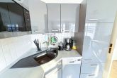 Die Küchenzeile ist gut ausgestattet und verfügt über Geschirrspüler, Backofen, Kühlschrank mit Gefrierfach, Kaffeemaschine und Toaster.