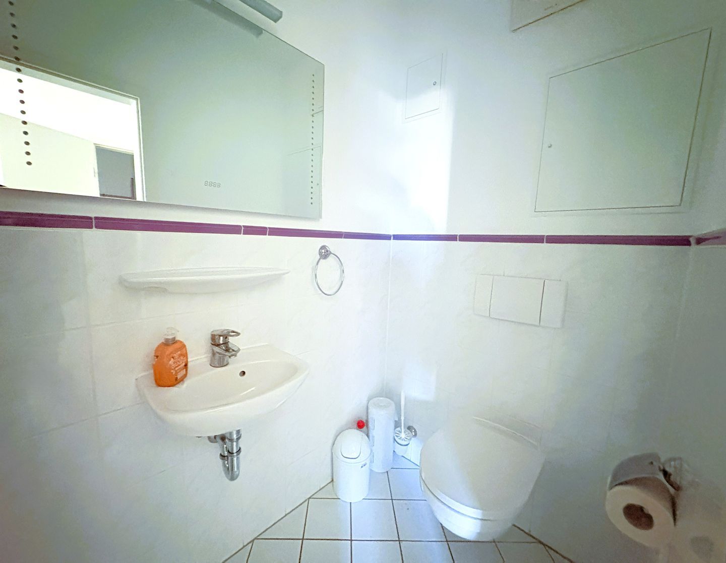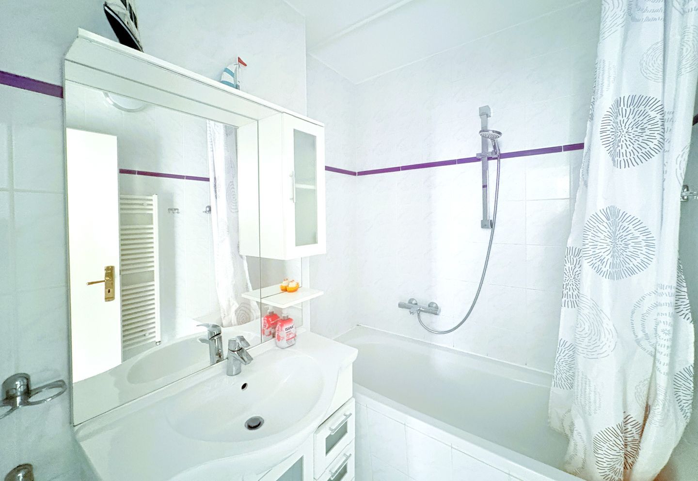 Das Badezimmer ist mit Badewanne und Waschbecken ausgestattet, das WC ist separat.