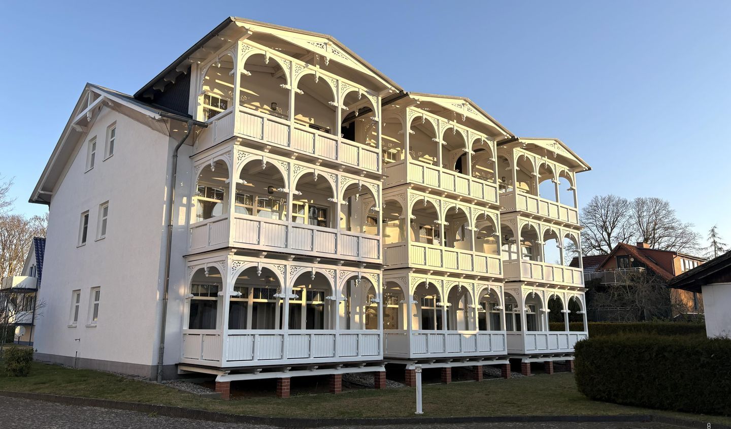 Diese 3-Zimmer-Ferienwohnung im Erdgeschoss mit Balkon befindet sich in der Strandresidenz Juliusruh - Haus II, nur 150 m vom feinsandigen, 12 km langen Badestrand Schaabe entfernt.
