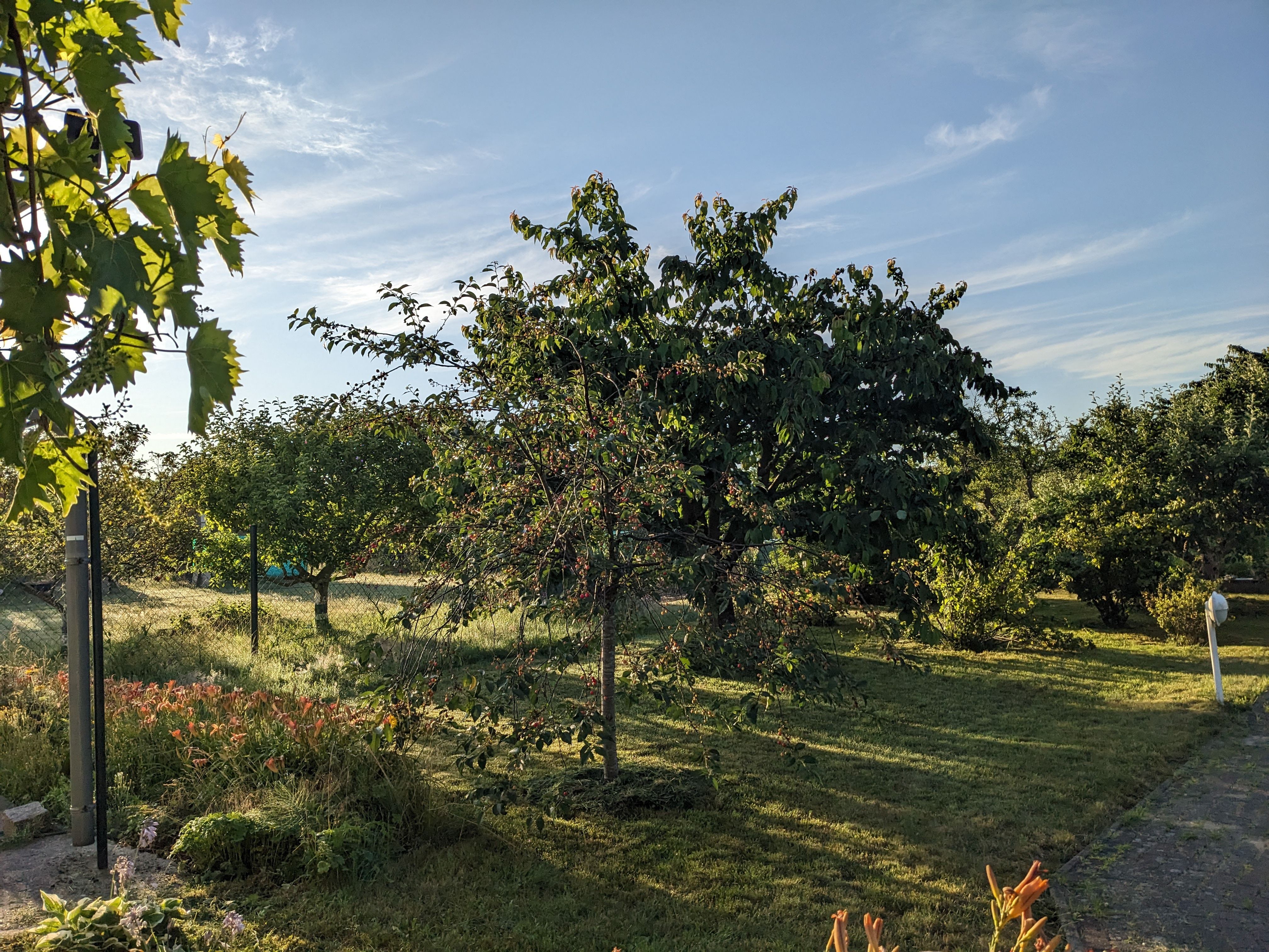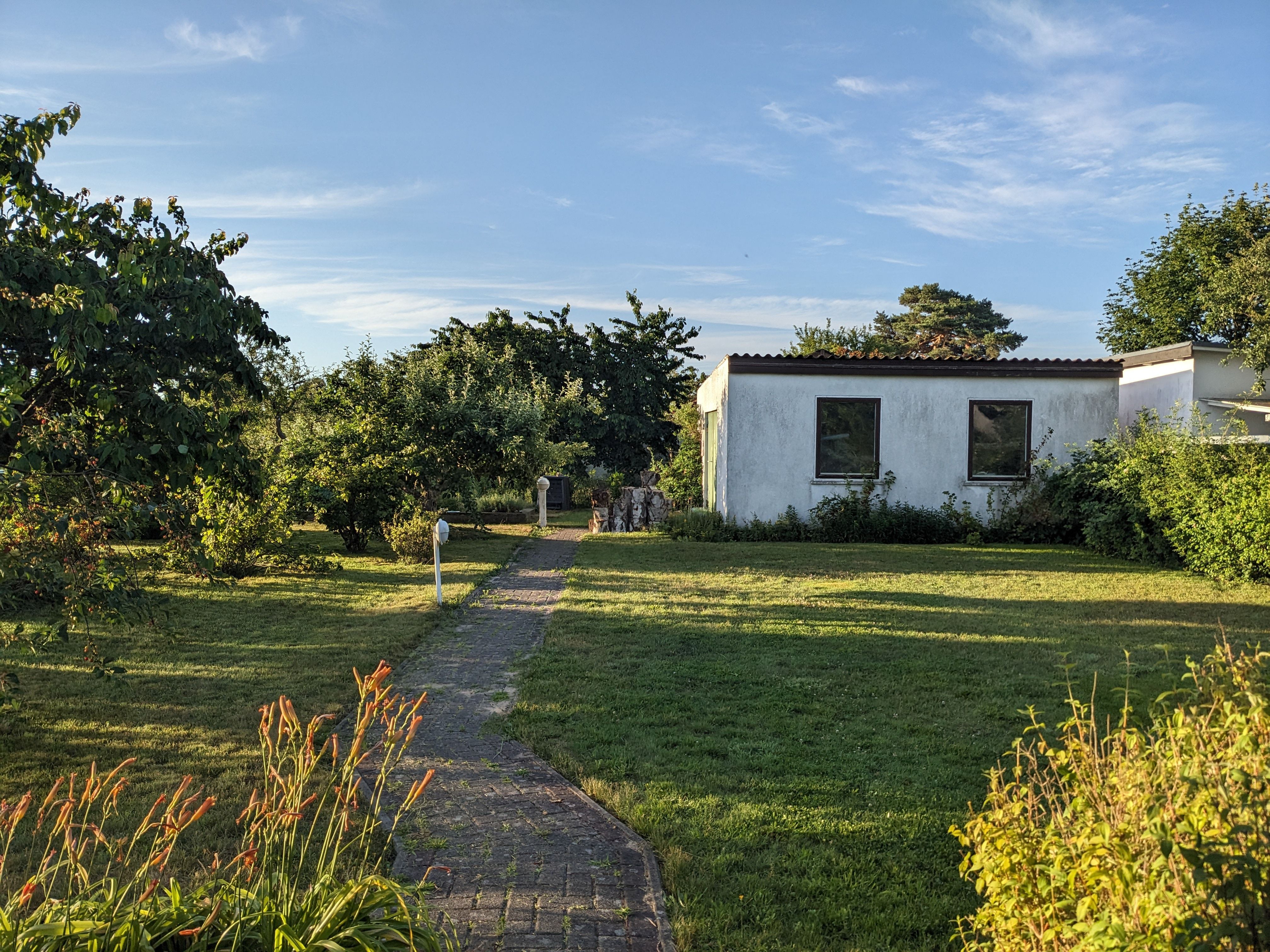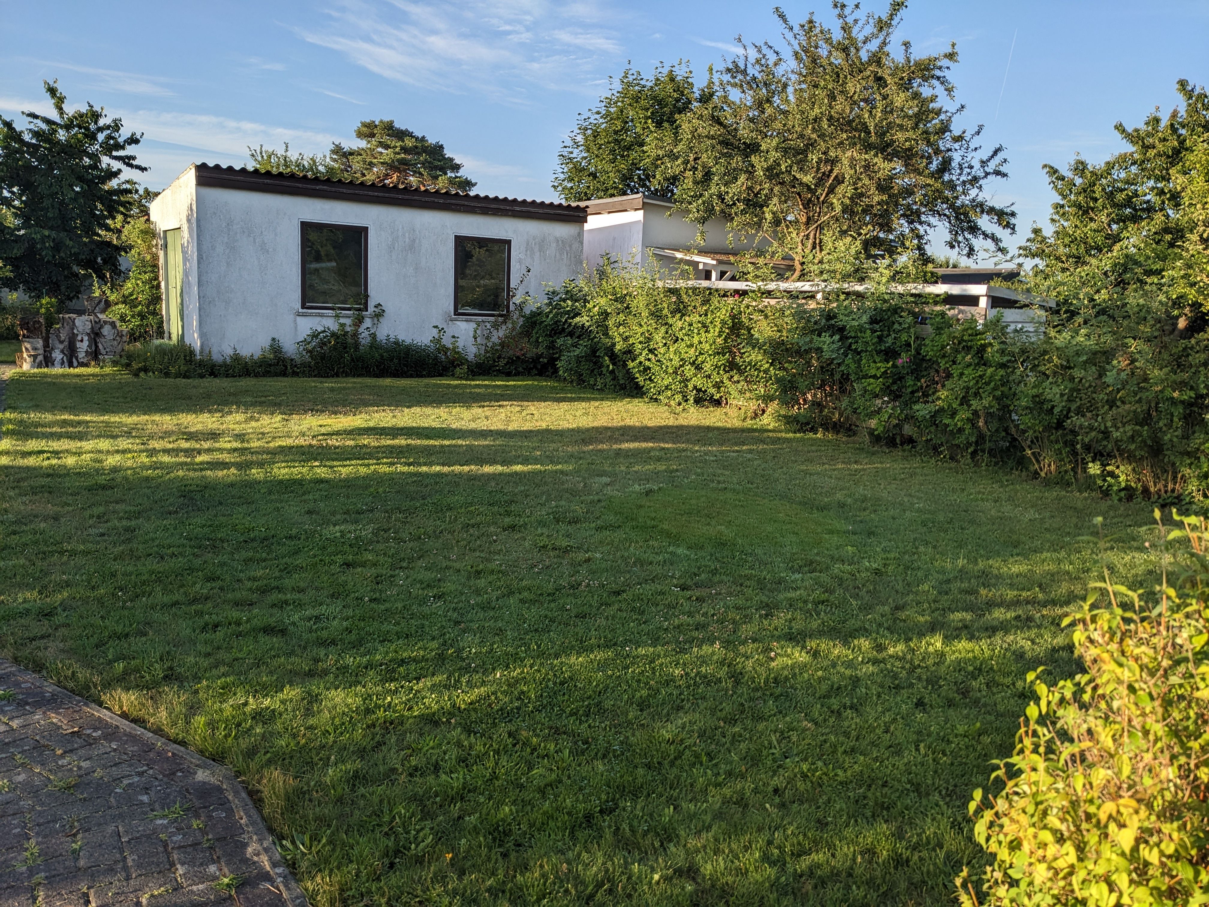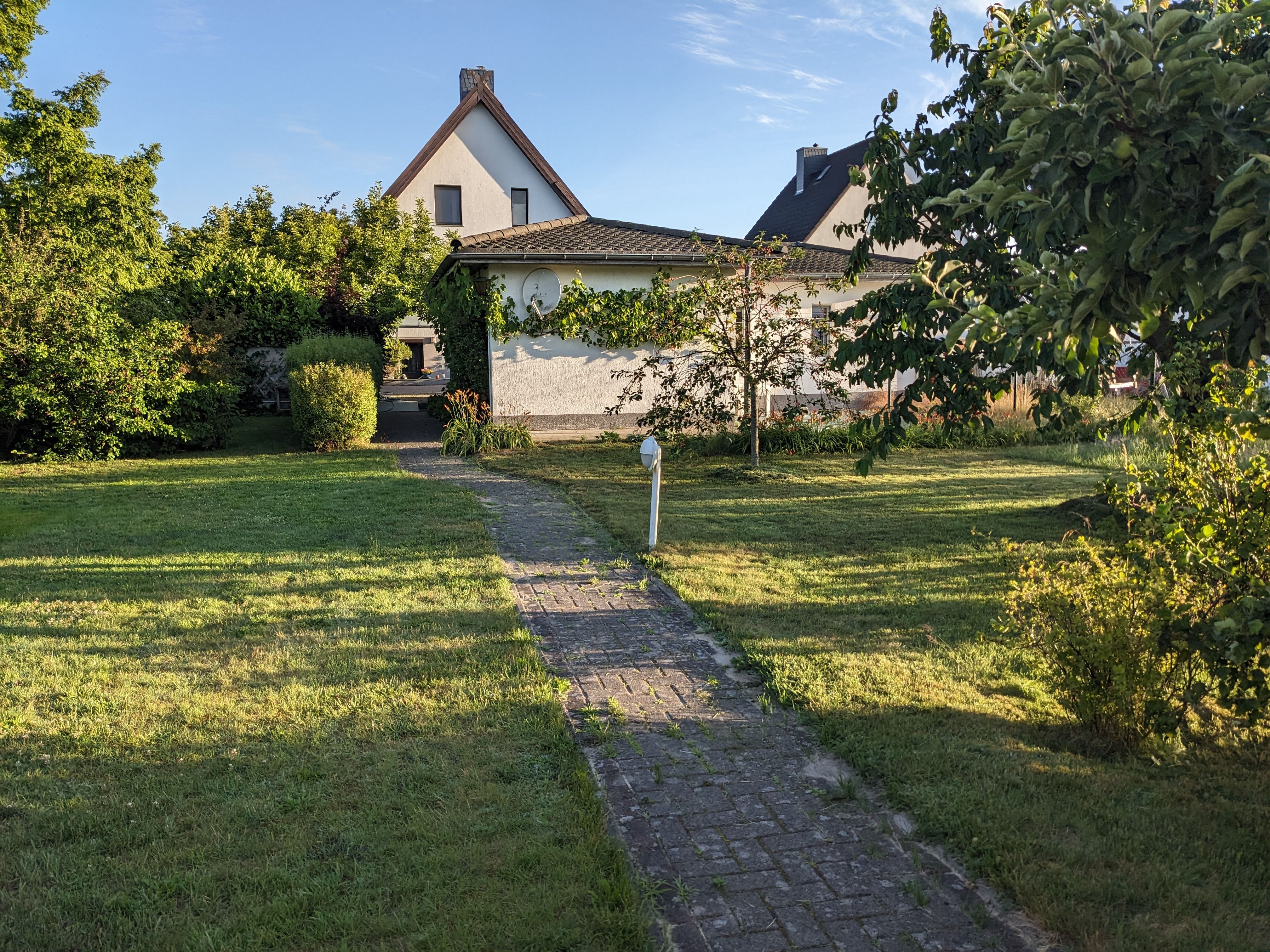 Die Ferienwohnung hat einen separaten Eingang mit Sitzecke. Genutzt werden können Liegewiese, Gartenmöbel und Holzkohlegrill.