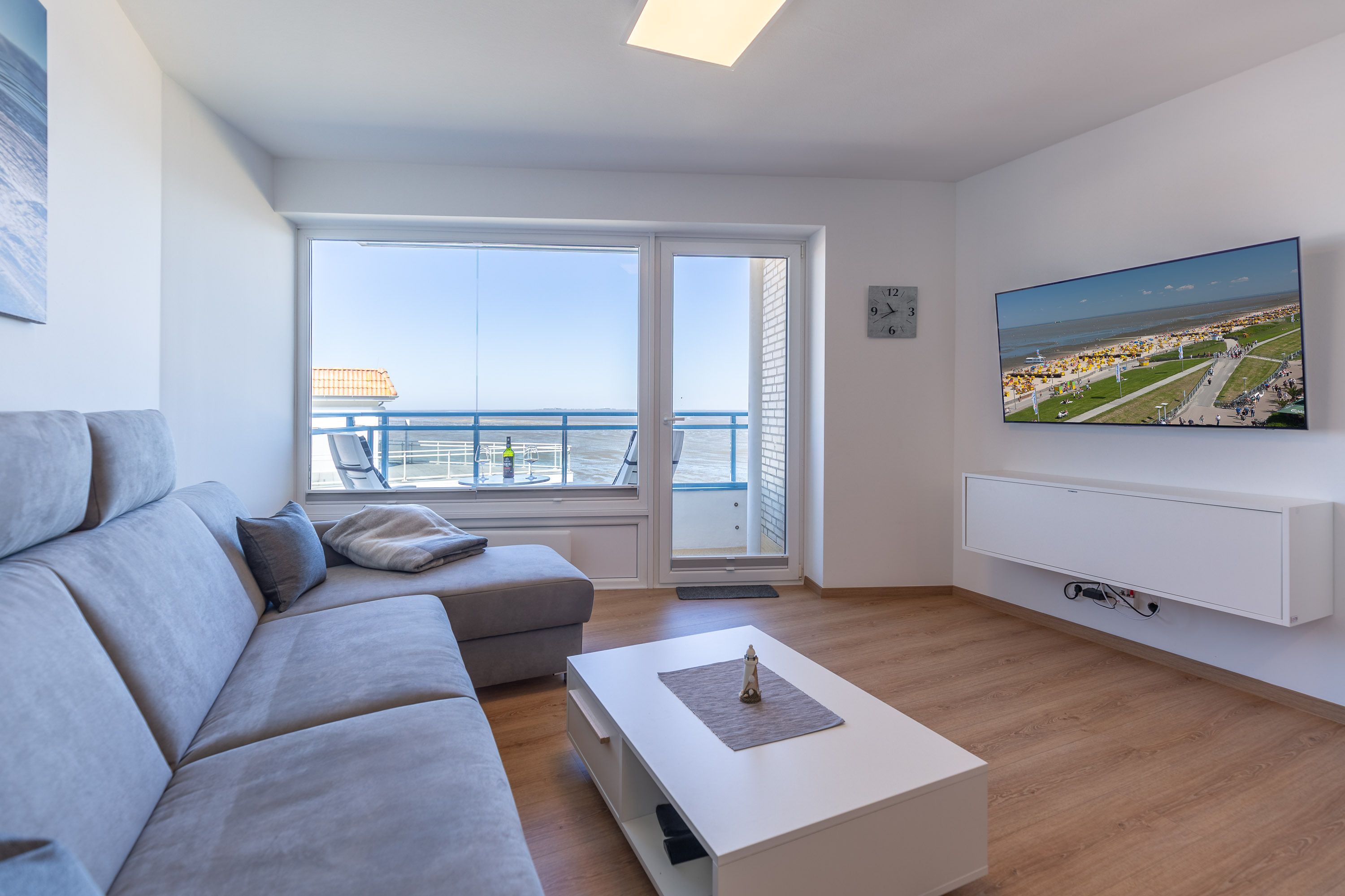 Die 2-Zimmer Ferienwohnung ist der optimale Logenplatz für 2 Personen. Egal ob Sie am Esstisch oder auf dem Sofa sitzen, immer genießen Sie den atemberaubenden Blick auf Nordsee, Wattenmeer und Insel Neuwerk. Am Abend können Sie bei einem Glas Wein traumhafte Sonnenuntergänge beobachten und einen erlebnisreichen Tag ausklingen lassen.