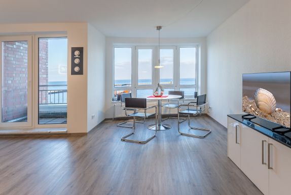 Moin, moin von der Waterkant! Ferienwohnung 27 im Haus Seeterrassen besticht durch eine moderne Ausstattung und einen traumhaften Blick auf den Weltschifffahrtsweg, die Elbe und den Fährhafen. Der Ausblick bietet Erholung und Erlebnis zugleich. Beobachten Sie Kreuzfahrtschiffe, Kutter und Großsegler direkt aus Ihrer komfortablen Ferienwohnung. Auf 70 m² bietet Ihnen die 2-Zimmer-Ferienwohnung mit separatem Schlafzimmer ausreichen Platz für 2 Personen.
