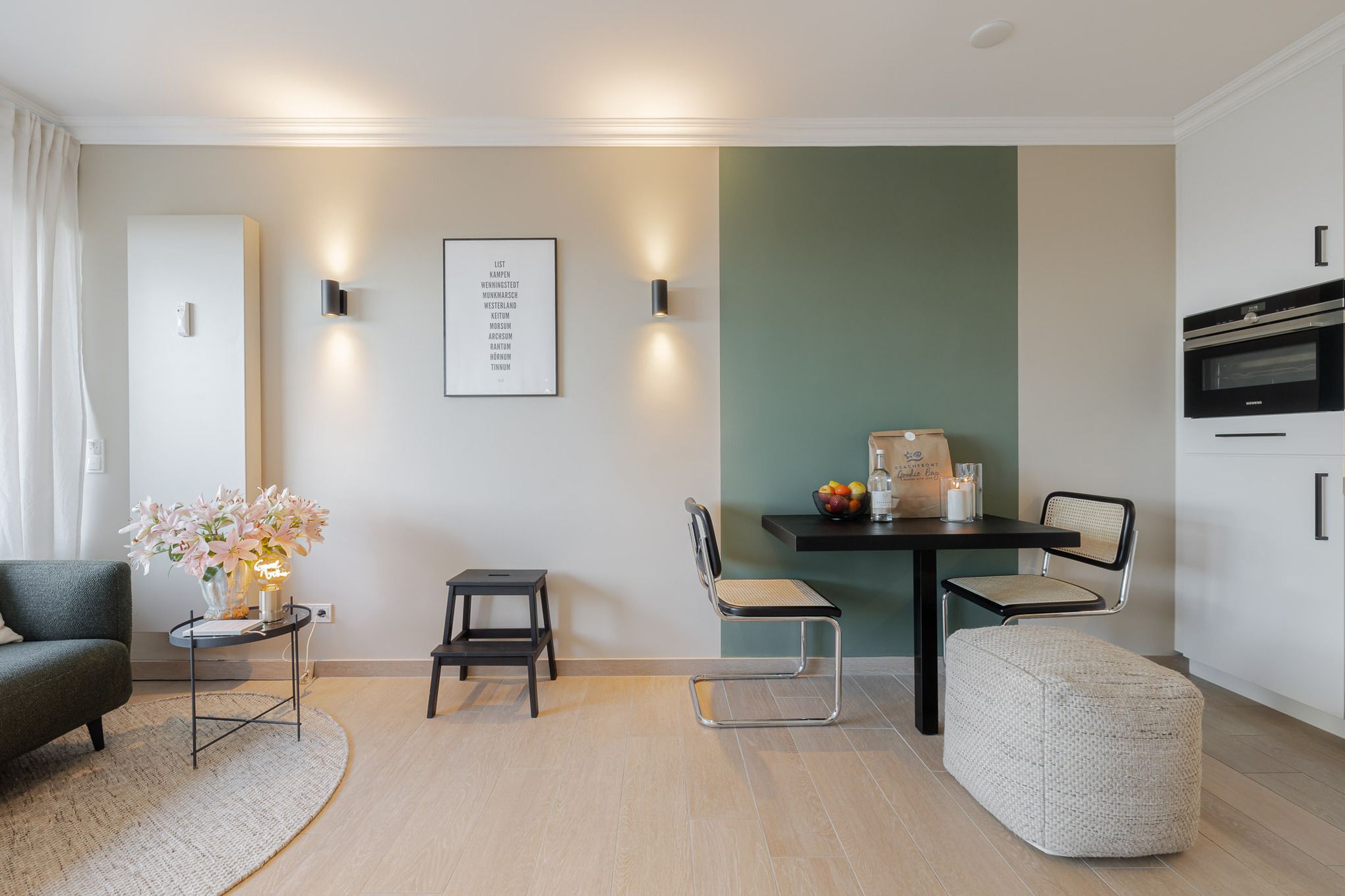 Am ruhigen Rand von Wenningstedt, in einer verkehrsberuhigten Zone, liegt unsere liebevoll renovierte Lütt Stuv – klein, fein und überraschend großzügig gedacht. Auf 31 m² genießen bis zu 2 Personen einen stilvollen Rückzugsort auf Sylt, modern, durchdacht und wunderbar gemütlich.