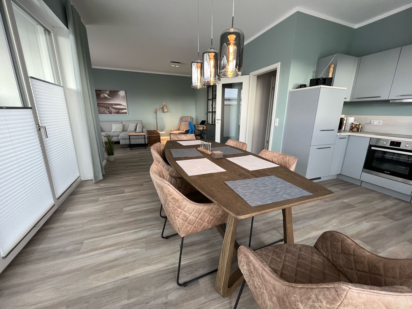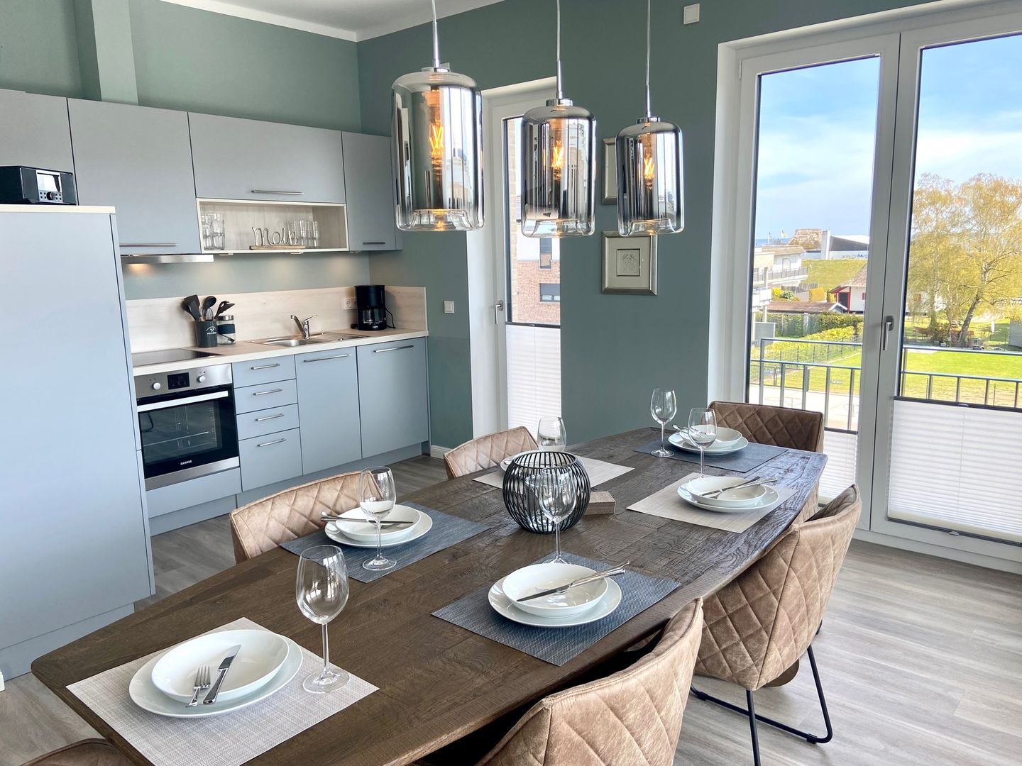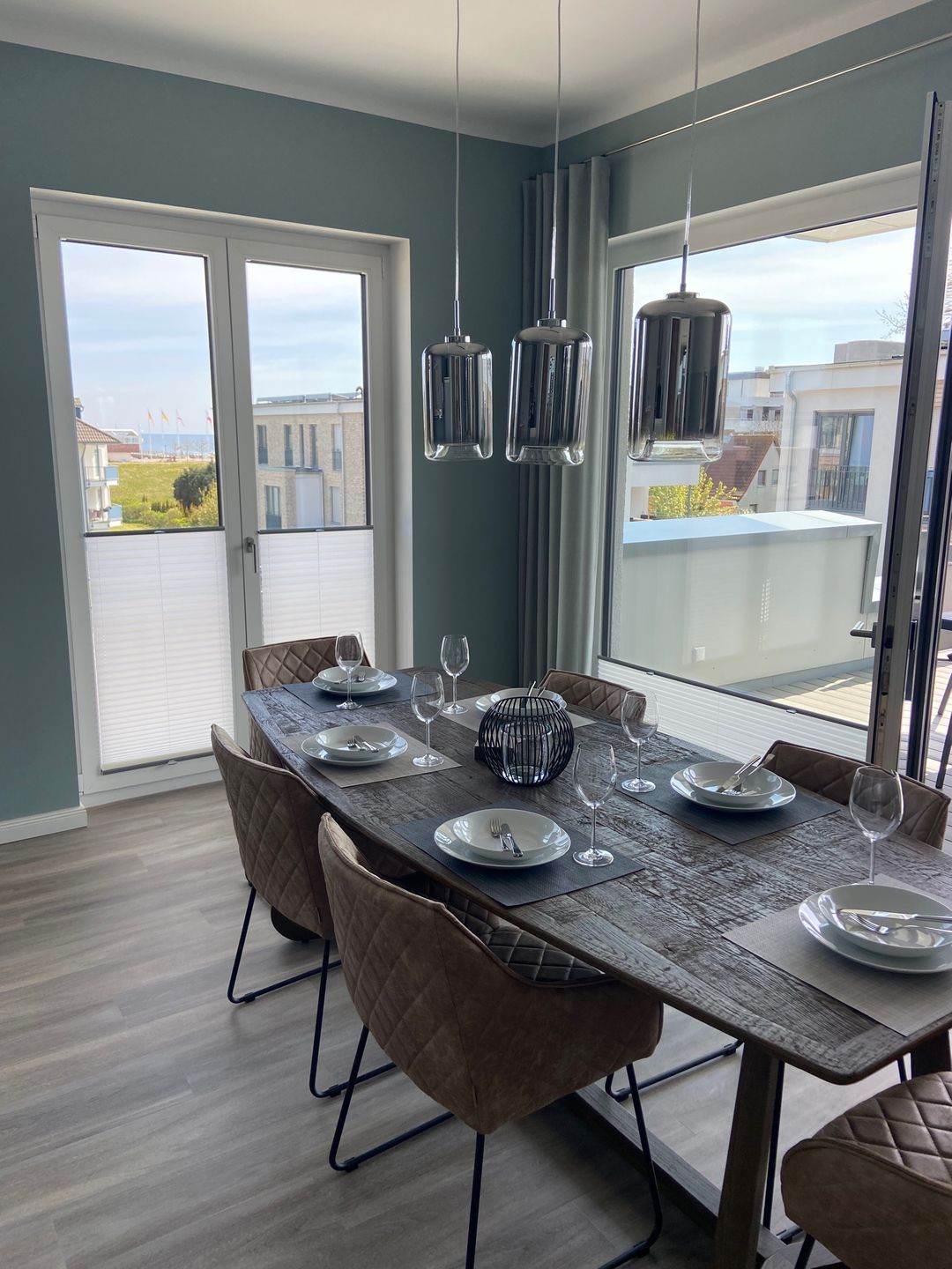 Traumwohnung an der Ostsee: Diese Penthousewohnung befindet sich in der beliebten Strandwiese. Ein Fahrstuhl bringt Sie nach oben und lässt den Urlaub sofort beginnen. Hier empfängt Sie eine modern eingerichtete 3 Zimmer-Wohnung mit großer Dachterrasse - teilüberdacht mit Strandkorb und bequemen Gartenmöbeln - in unmittelbarer Strandnähe. Die Wohnung verfügt über zwei Schlafzimmer, beide mit TV und jeweils einem Boxspring-Doppelbett 1,80 x 2,00 m (mit durchgängigen Matratzen) ausgestattet. Vom Wohnzimmer mit TV und vom Esszimmer aus haben Sie einen direkten Zugang zur sonnigen Südterrasse. Ein Schreibtisch lässt Sie auch beim Homeoffice mit kostenlosen WLAN entspannt arbeiten. Die sehr gute Raumaufteilung und die hochwertige Ausstattung sorgen für höchsten Urlaubskomfort. Die bodentiefer Dusche im großzügigen Badezimmer mit Waschmaschine ergänzen die gehobene und moderne Ausstattung dieser Wohnung. Die komplett ausgestattete Küche ist offen in den Wohnraum integriert. Die Fußbodenheizung sorgt für wohlige Wärme. Der PKW-Stellplatz für diese bezaubernde Wohnung befindet sich direkt vor dem Haus, das insgesamt aus acht Ferienwohnungen besteht. Auf dem Grundstück finden auch eine Unterstellmöglichkeit für mitgebrachte Fahrräder und E-Bikes. In dieser Wohnung können Sie Ihren Ostseetraum verwirklichen und schöne Urlaubstage verbringen ! Einziehen, wohlfühlen … und ab ins Meer ! Lifestyle Ferienwohnung für den besonderen Urlaub in Dahme. Auf den Bildern erkennen Sie, dass der Ausblick zur Ostsee von der Terrasse sowie vom Esszimmer grandios ist.