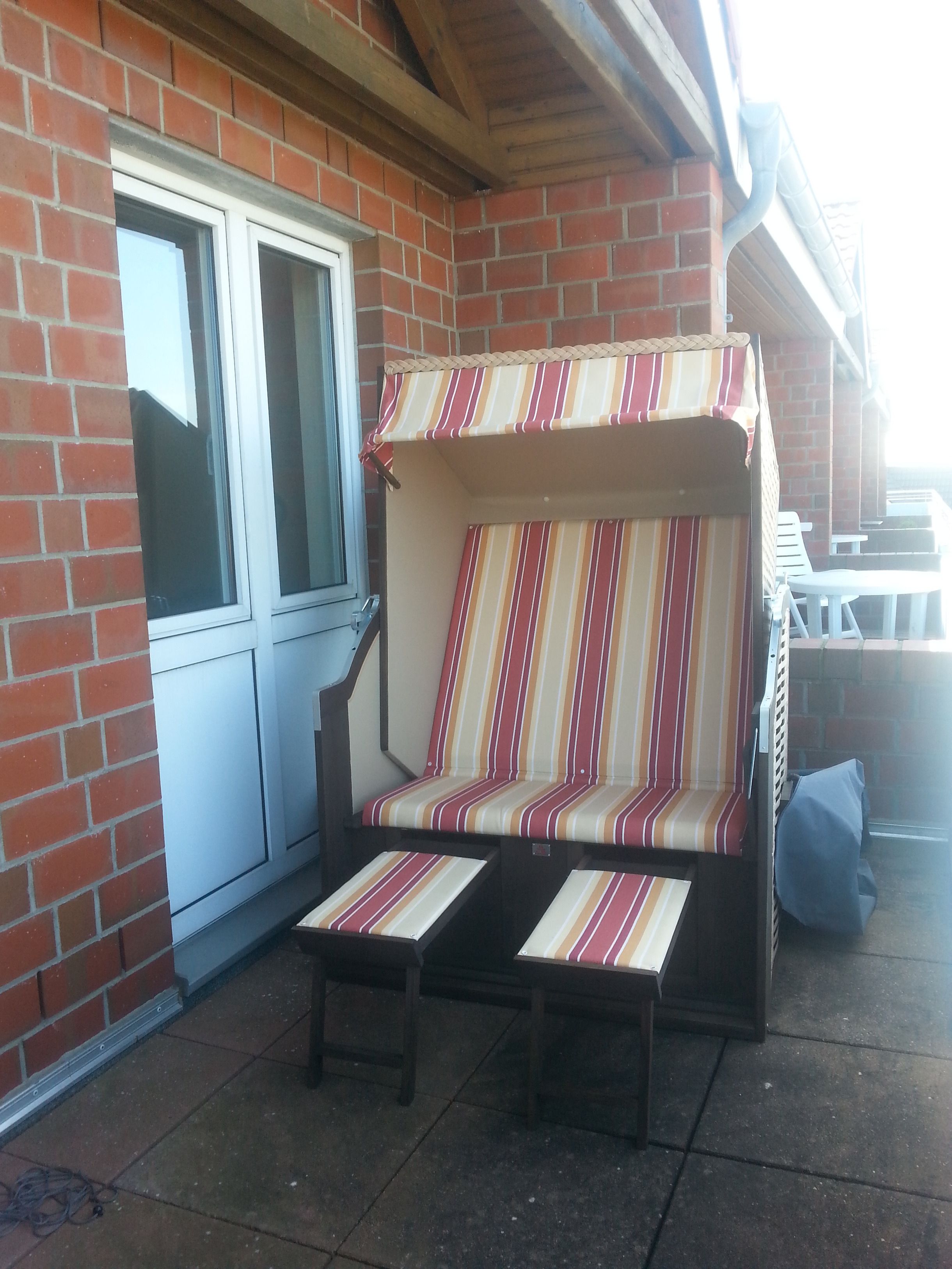 Auf dem Balkon der Wohnung, befindet sich ein Strandkorb. In der Ferienanlage gibt es für die kleinen Gäste einen kleinen Kinderspielplatz. Das Haus Knechtsand verfügt über eine Dampfsauna (geg. Geb.) und einem Wasch- und Trockenkeller mit Waschmaschine und Trockner (jeweils geg. Geb.). In den Nachbarhäusern befindet sich eine Finnische Sauna (geg. Gebühr), Tischtennisraum und ein Schwimmbad, das kostenfrei genutzt werden kann.