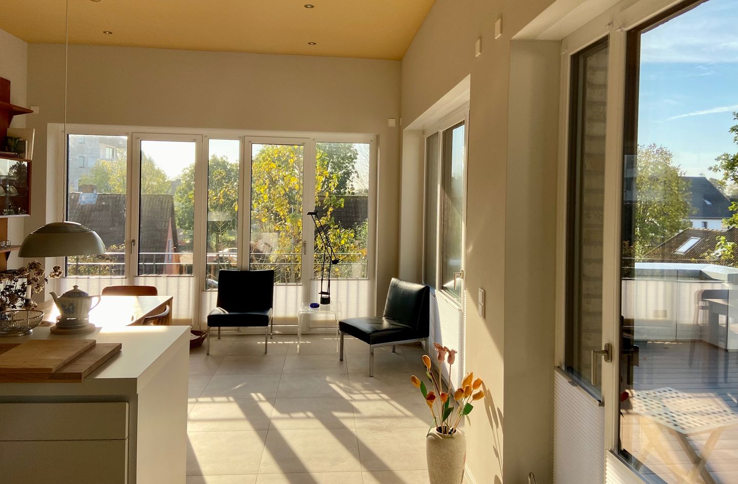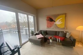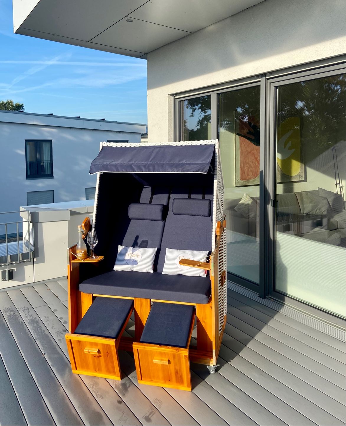 Die Neubauwohnung ist für 1 - 4 Erwachsene geeignet. Das Herzstück ist eine wunderschöne, gemütliche Wohnküche mit hochwertiger, moderner Küchenausstattung und einem gemütlichen Essbereich. Individuelle Stühle laden zum Verweilen ein. Große Fensterfronten zur Dachterrasse lassen sofort Urlaubsfeeling aufkommen. Überall in der Wohnung finden Sie wunderschöne Antiquitäten. Edle Teakmöbel, 2 Deckchairs und ein Strandkorb verführen dazu, das Leben auf der großen Dachterrasse zu verbringen. Die Süd-West-Lage ist dazu ideal. Zwei Schlafzimmer (jeweils mit Doppelbett 2 x 90x200 cm) - eines mit TV - sowie zwei Bäder mit Dusche sorgen für gewünschten Freiraum. Eine gemütliche Couch im Wohnzimmer und ein Fernseher sind selbstverständlich. Die außergewöhnliche Deckenhöhe vermittelt Loftgefühl. Ein Abstellraum, eine Garderobe, elektrische Außenrollläden, eine Waschmaschine und ein PKW-Stellplatz sind nur ein paar der Annehmlichkeiten, die Ihren Urlaub unvergesslich werden lassen. Das Objekt ist sehr strandnah, also in bester Lage. Fahrräder können- nach Verfügbarkeit - untergestellt werden. Wir freuen uns, Ihnen dieses schöne Adults Only - Objekt anbieten zu können. Lassen Sie Ihren Urlaubstraum wahr werden. Herzlich Willkommen!