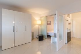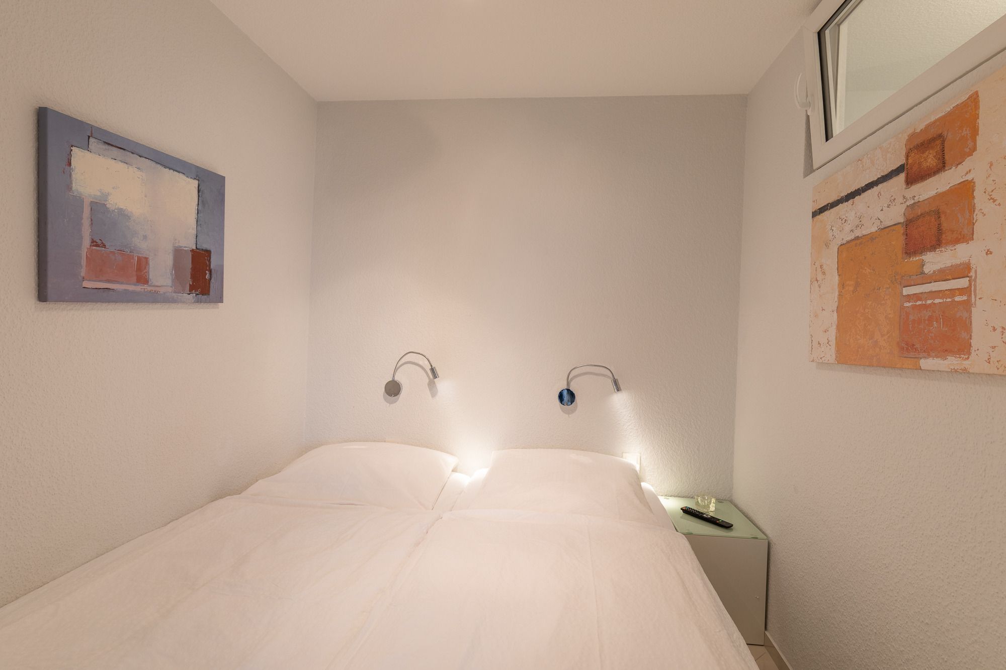 Mit einer Größe von ca. 54 m² Wohnfläche ist die Wohnung komplett bis zu 2 Personen ausgestattet, Wohnzimmer mit kompletter Einbauküche (Backofen, Cerankochfeld, Geschirrspüler, Toaster, Wasserkocher, Kühlschrank), Essplatz/Tresen, Sofa-Ecke und direktem Zugang zum Balkon (Balkon mit Markise), der Schlafbereich, mit separaten TV, geht direkt vom Wohnzimmer ab und kann mit einer Glasschiebetür am Tag verschlossen werden, Bad mit Dusche und WC, 1 Flatscreen TV im Wohnzimmer, Nichtraucherwohnung, keine Haustiere, PKW-Stellplatz direkt am Haus.