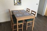Mit einer Größe von ca. 66 m² Wohnfläche ist die Wohnung komplett bis zu 4 Personen ausgestattet, Wohnzimmer mit kompletter neuer Einbauküche (Backofen, Cerankochfeld, Geschirrspüler, Toaster, Wasserkocher, Kühlschrank), Essplatz für 2 Personen, Sofa-Ecke und direktem Zugang zur großen Dachterrasse, 1 Schlafzimmer mit Doppelbett (Kleiderschrank, 1 Flatscreen TV), Bad mit Dusche und WC, 1 Flatscreen TV im Wohnzimmer, Nichtraucherwohnung, keine Haustiere, PKW-Stellplatz direkt am Haus. Die kompletten Außen-Türen und die Fenster sind mit Insektenschutz versehen.