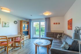 Die 2 Zimmer Wohnung (Erdgeschoss) ca. 52m² ist für bis zu 4 Personen ausgestattet, helles großes Wohnzimmer mit Sofa (kann auch als Schlafsofa genutzt werden), Flatscreen TV, Essplatz für 4 Personen und Zugang zur Terrasse (mit Gartenmöbel), Küchenzeile (Backofen, 4 - Plattenherd, Dunstabzugshaube, Kühlschrank, Kaffeemaschine, Wasserkocher, Toaster), 1 Bad mit Dusche und WC, Flur, Abstellraum, 1 Schlafzimmer mit Doppelbett, PKW-Stellplatz am Haus (über den Wilhelm-Laage-Weg zu erreichen), Nichtraucher, es sind keine Tiere erlaubt.