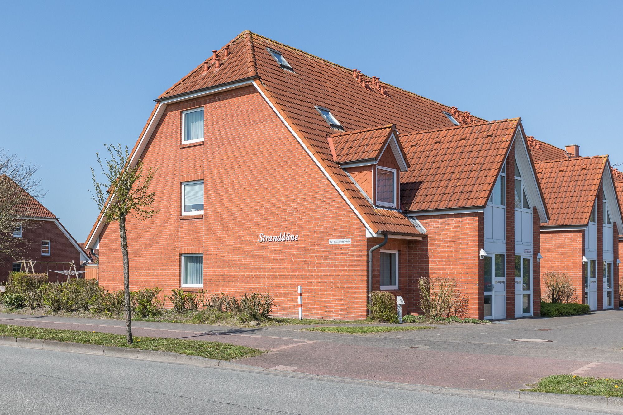 Vom Haus Stranddüne sind es zu Fuß ca. 700 Meter bis Sie die Nordsee mit dem Sandstrand, die Promenade, diverse Restaurants und verschiedene Einkaufsmöglichkeiten erreichen.