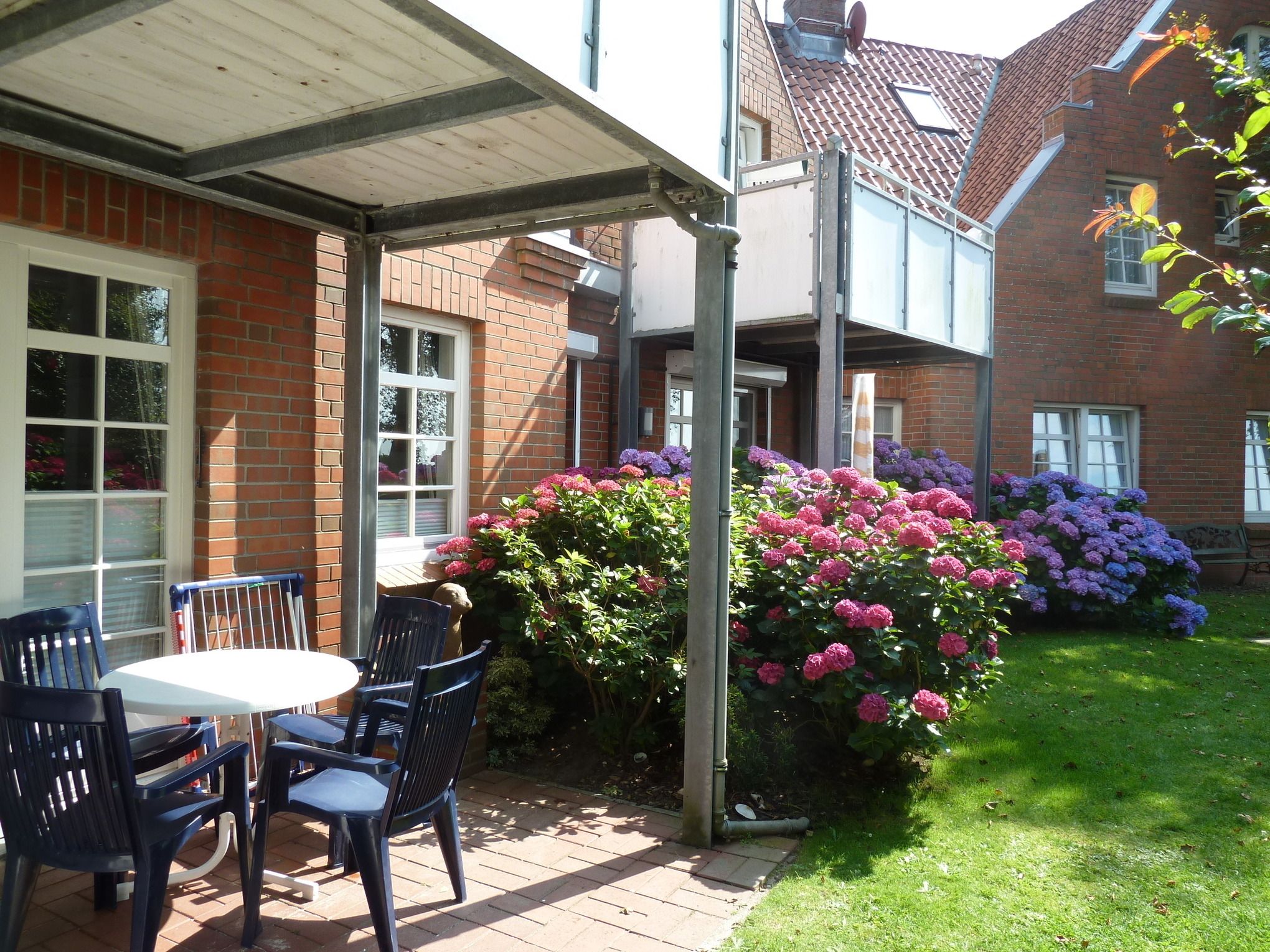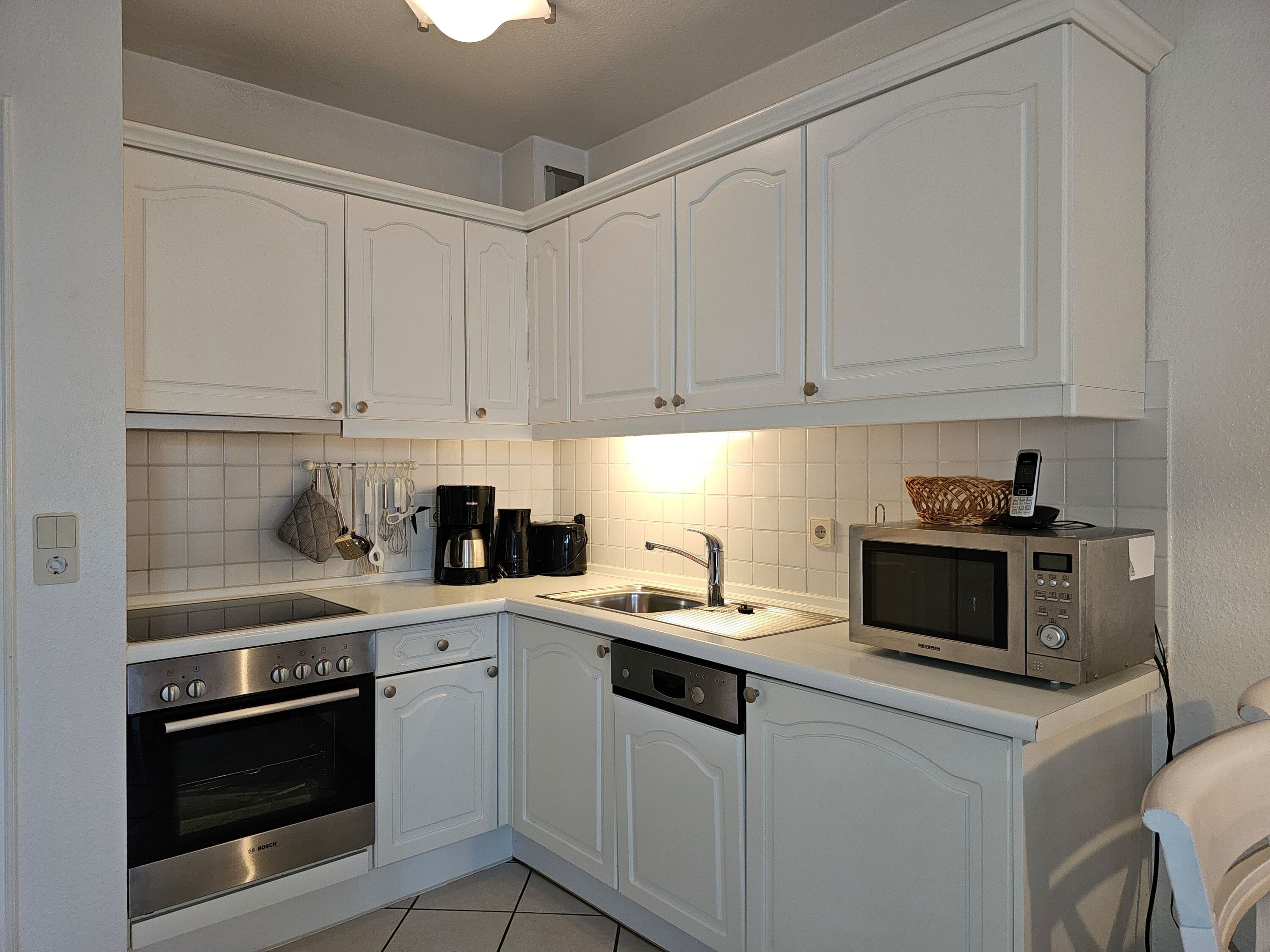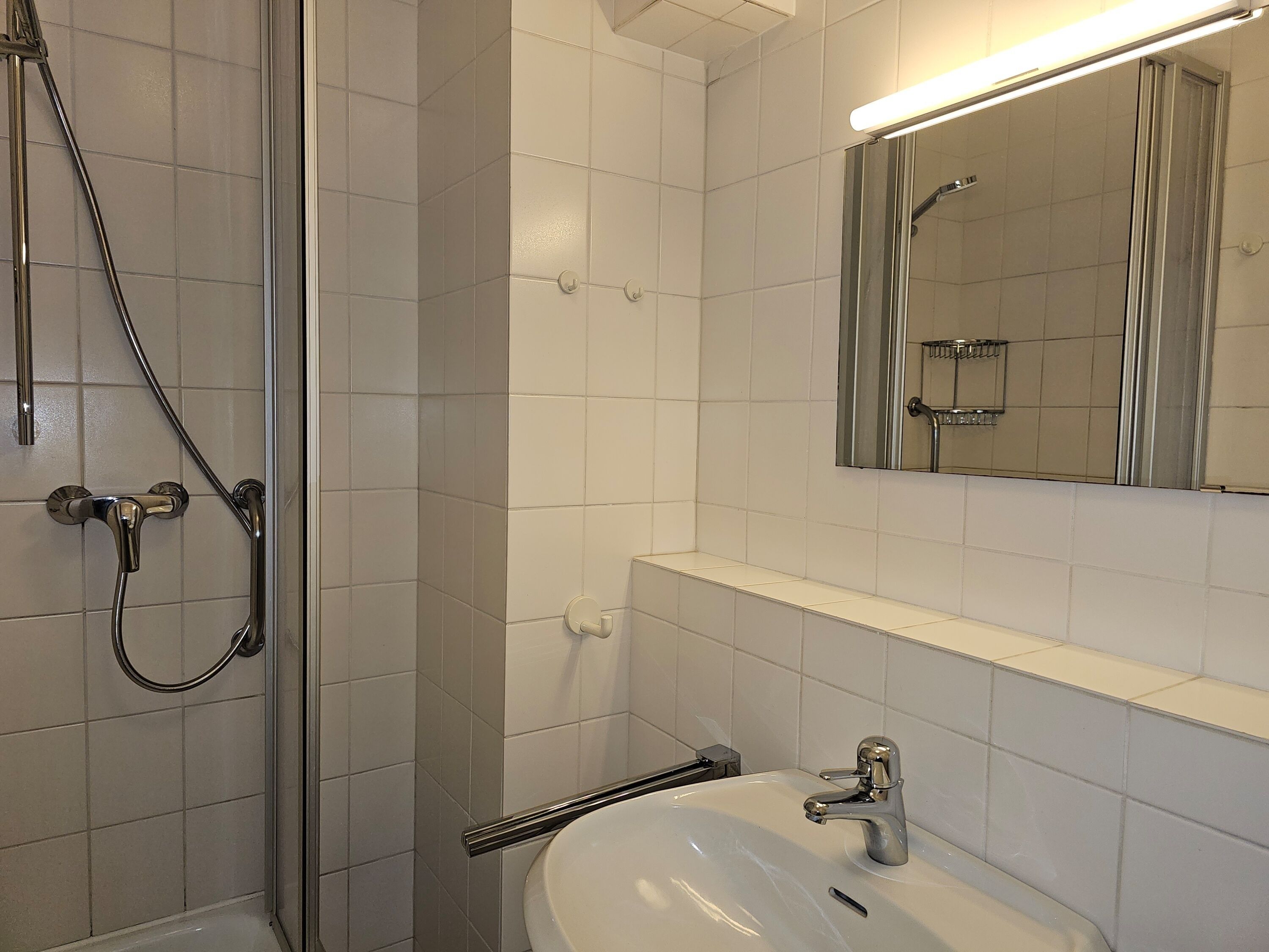 Die Wohnung befindet sich im Erdgeschoss und verfügt über eine teilweise überdachte Terrasse. Im Wohnbereich gibt es eine voll ausgestattete Küche mit Esstisch, eine gemütliche Couch, ein Duschbad und zwei Schlafzimmer. Im Keller des Hauses befindet sich eine Sauna für kühle Abende sowie Waschmaschine und Trockner (gegen Gebühr und zur gemeinschaftlichen Nutzung).