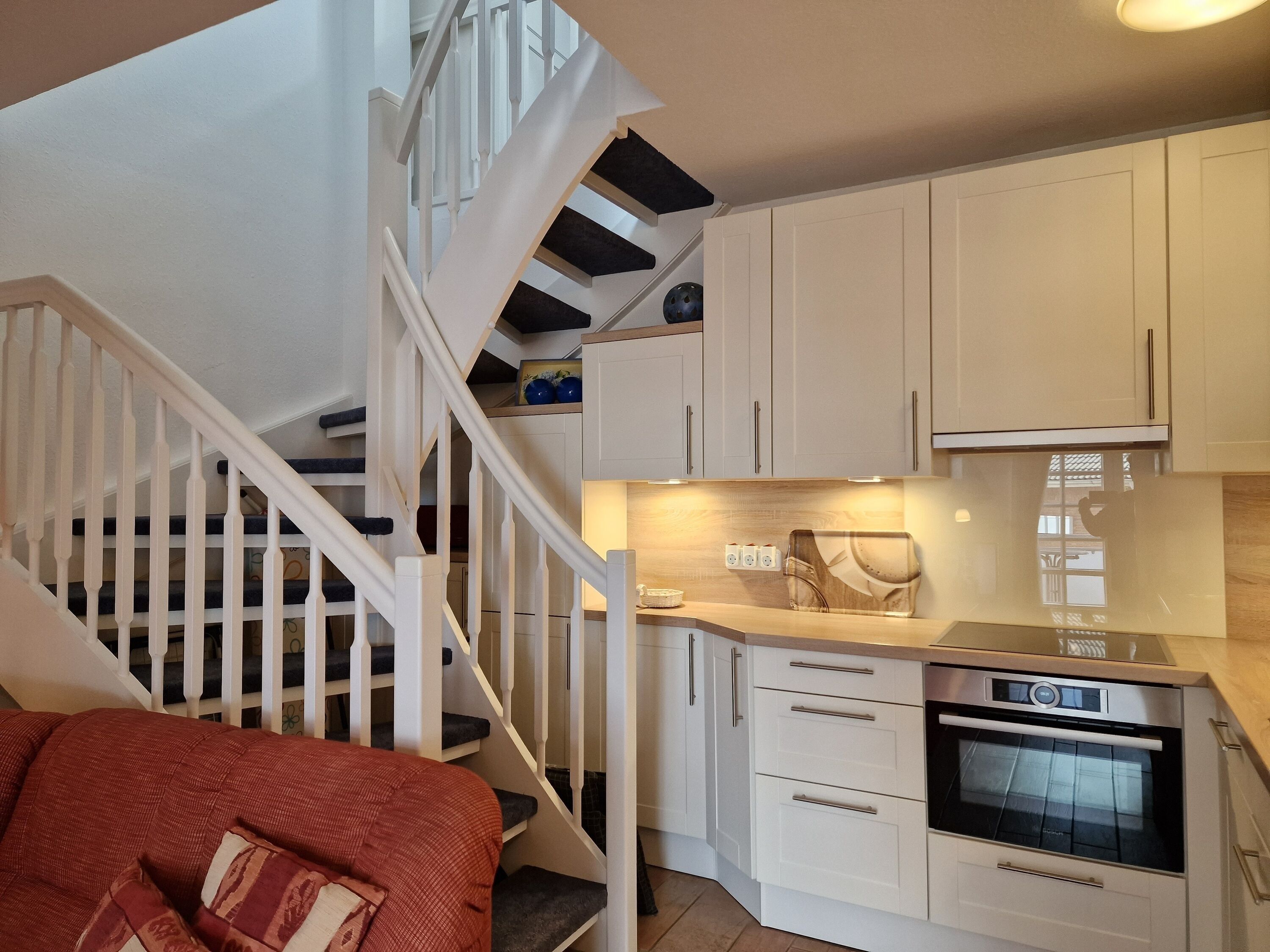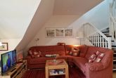 Nur wenige Meter befinden Sie sich hier vom Strand entfernt. Lediglich der Garten und der Stockmannsweg liegt zwischen Haus und Meer - was will man mehr? Wie wäre es morgens mit sportlicher Betätigung am Strand und abends zum Tagesabschluss noch ein Spaziergang auf der schönen Promenade? Ebenso schön ist es, auf dem Balkon (Süd-West) den seitlichen Meerblick zu genießen.