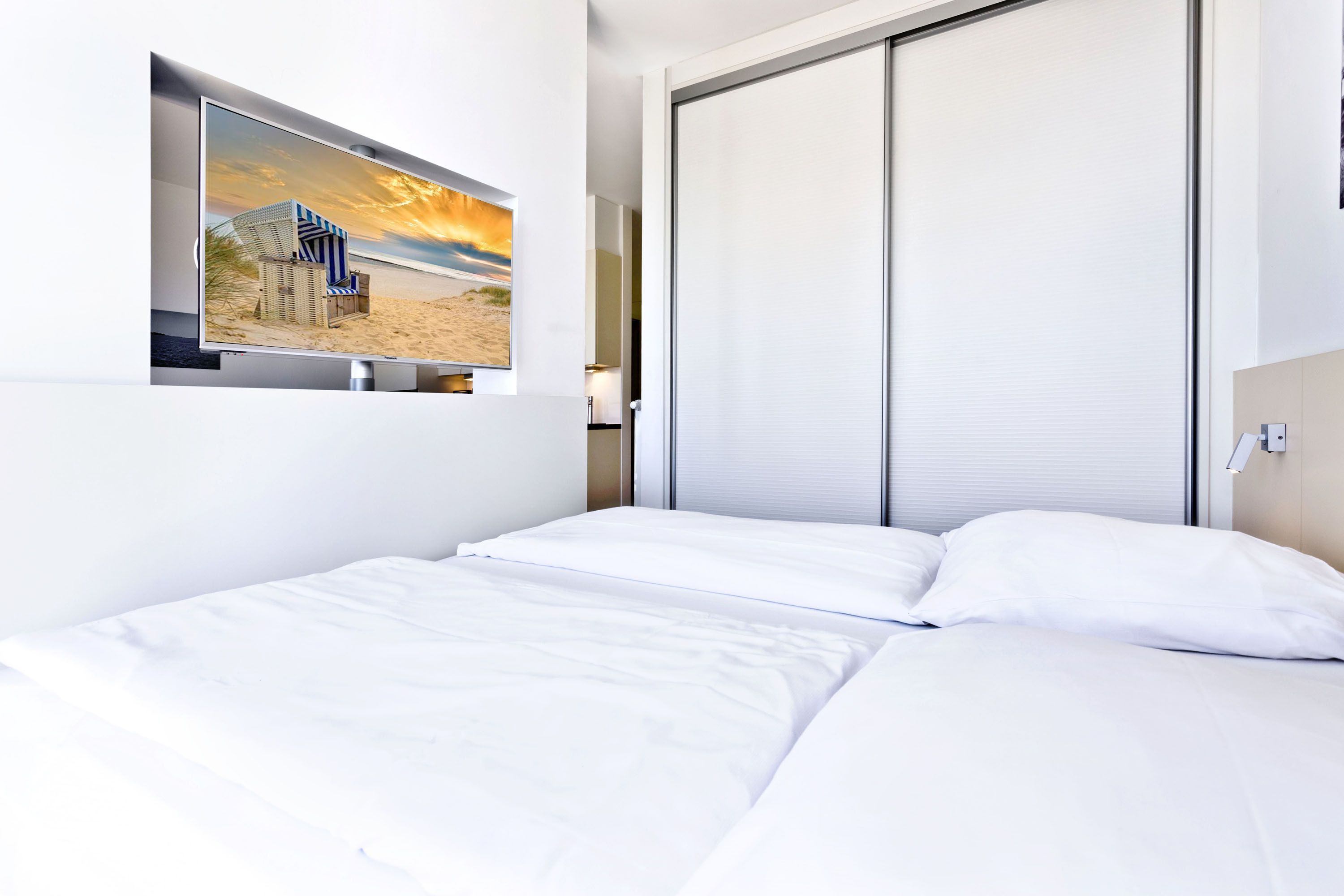 Appartement der Extraklasse mit Seesicht! Das hochwertige Interieur in diesem App. für 2 Pers. für Ihren Wohlfühlurlaub. Großer Balkon mit Seesicht (ost), vollständige Küchenzeile mit Mikrow., Geschirrspüler etc., das gesamte App. ist über Außenjalousien und Vorhang abzudunkeln, SAT-TV (drehbar zum Bett), Blue-Ray-DVD, CD-Kompaktanlage, USB-Steckdosen, kostenloses W-Lan-Internet, allergikerfreundlich, ebenerdige Dusche/WC, Föhn, freie Saunanutzung, reservierter Außenstellplatz am Haus, keine Haustiere und natürlich Nichtraucher.