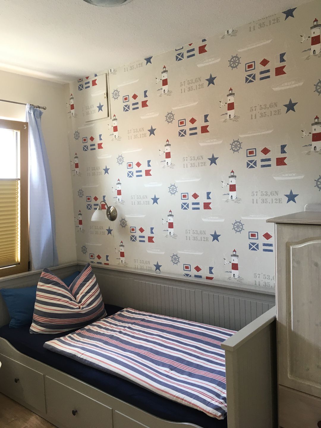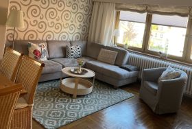 Unsere helle und gemütliche Ferienwohnung im 1. Obergeschoss bietet auf rund 90 m² viel Platz für bis zu 5 Personen. Zwei Schlafzimmer mit komfortablen Doppelbetten und großzügigen Kleiderschränken sowie ein weiteres Schlafzimmer mit Einzelbett sorgen für erholsamen Schlaf. Für unsere kleinen Gäste stehen ein Kinderreisebett, ein Babybett und ein Hochstuhl bereit.