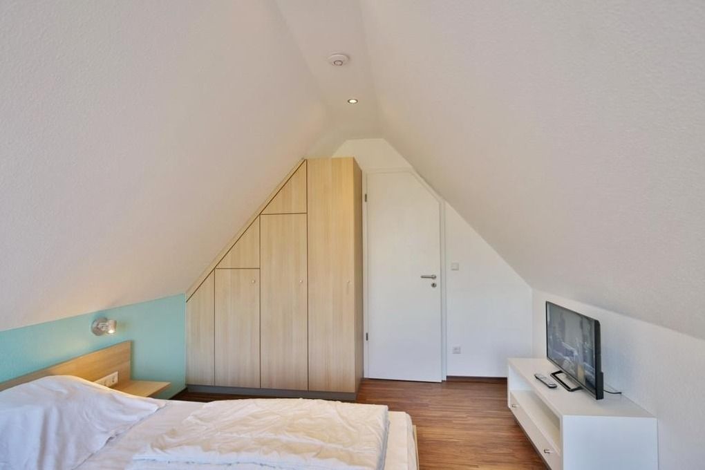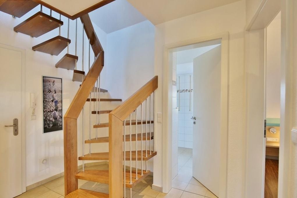 Sehr schöne, helle 3-Raum-Maisonette-Wohnung, 1.Etage, 1 Schlafzimmer mit Doppelb., 1 Schlafzimmer im Dachgeschoss mit Doppelbett und separaten WC, Wohnzimmer mit Küchenzeile (Backofen, Mikrowelle, Geschirrspüler) 2x SAT-TV, CD, DVD, kostenloses W-LAN Internet, Du/Wc, großer Balkon (süd) mit Balkonmöbeln und Sonnenschirm (saisonabhängig), Rollladen, reservierter Pkw-Stellplatz vor dem Haus, keine Haustiere erlaubt, Nichtraucher.