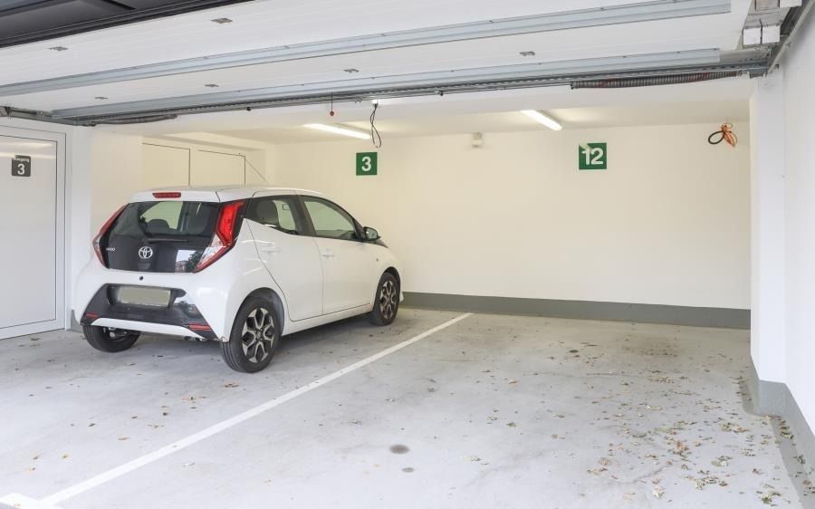 Das Badezimmer verfügt über eine Dusche, ein WC und ein Urinal. Ein ebenerdiger Doppelgaragenstellplatz mit großzügigen Maßen von 2,75 m Breite und 190 cm Höhe gehört zur Wohnung. Des Weiteren stehen Ihnen ein abschließbarer Fahrradabstellplatz im Keller sowie weitere im Außenbereich zur Verfügung.