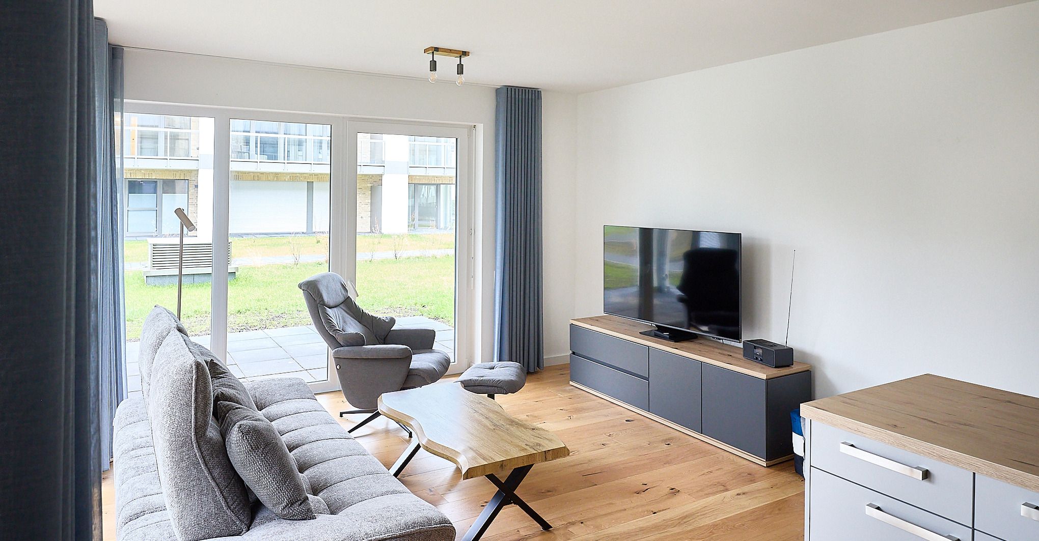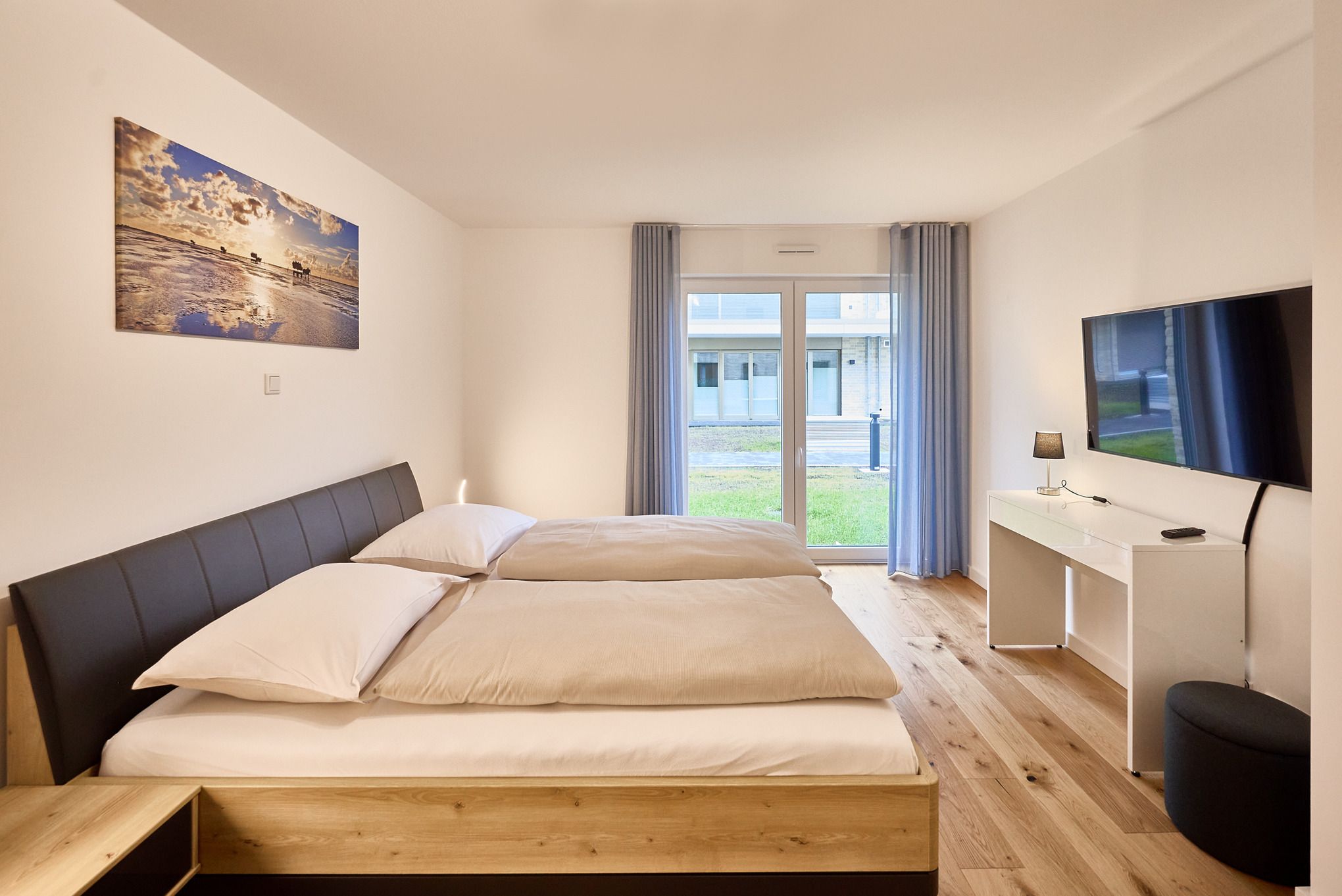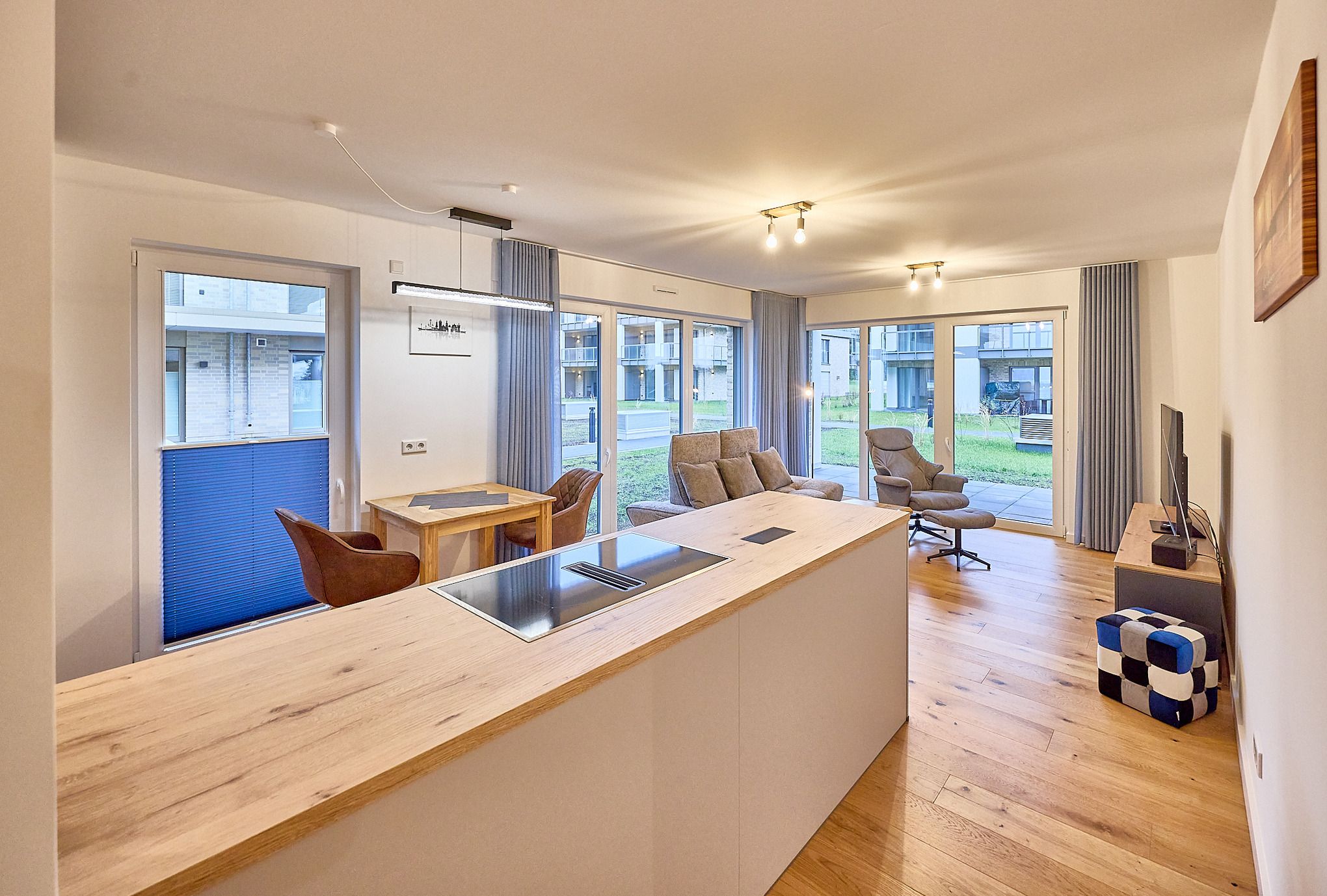 Barrierefreie 64 m² Erdgeschosswohnung in Top-Lage Duhner Spitze, nur wenige Meter zum Strand. Für 2 Personen, Terrasse mit seitlichem Meerblick, teilüberdacht. Tiefgarage (breiter Stellplatz), Fahrstuhl, Fahrradraum mit E-Bike-Ladestation. Schlafzimmer mit Doppelbett, TV & Schreibtisch. Wohnbereich mit Sofa, Sessel & Smart-TV. Moderne Küche mit Ceranfeld, Backofen, Kühlschrank, Pad- & Filterkaffeemaschine. Bad mit bodengleicher Dusche. WLAN, Bettwäsche & Handtücher (ab 3 J.) inkl. 6x freier Eintritt ins Thalasso ahoi! Erlebnisbad & Sauna. Strandnah, komfortabel, ideal für Paare.