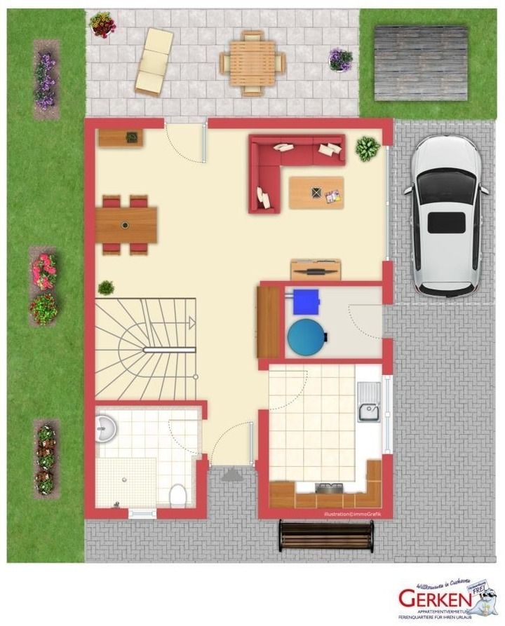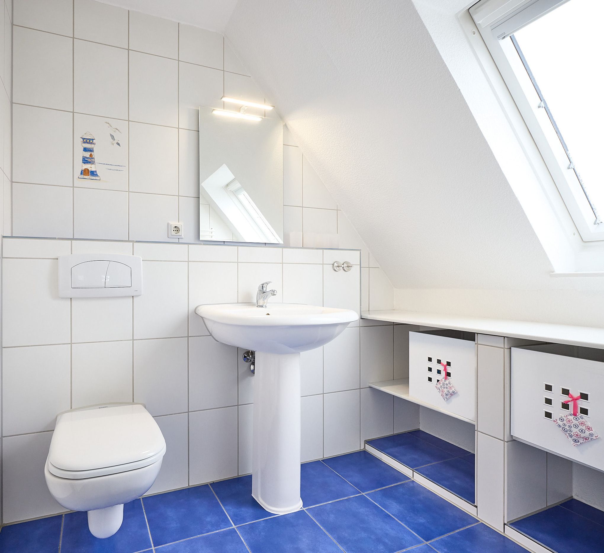 Beide Sanitärräume sind tageslichthell durch ein Fenster. Der Garten bietet Ihnen Rückzugsmöglichkeiten im Grünen – ein Grill steht zwar nicht zur Verfügung, das Grillen ist aber erlaubt. Bitte sorgen Sie für die ordnungsgemäße Entsorgung eines eigenen Grills – dieser darf nicht am Haus verbleiben.