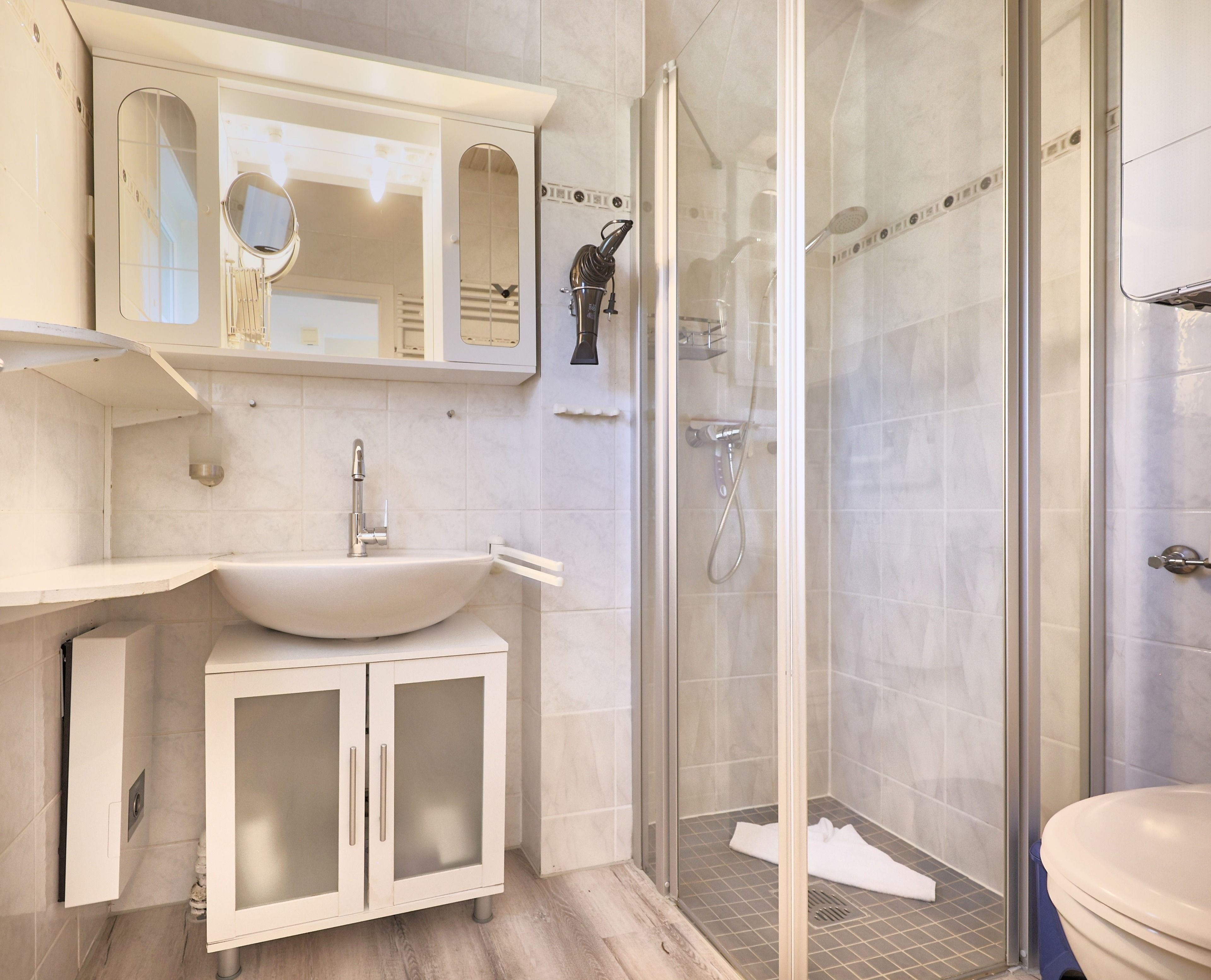 Erstausstattung zum Start in den Urlaub - Bezogene Betten sowie ein Fewo-Starterpaket einschließlich Duschvorleger, ein Geschirrtuch, Geschirrspültabs, Spülmittel, Spülbürste, Spültuch, 1 Toilettenrolle, Müllbeutel etc.