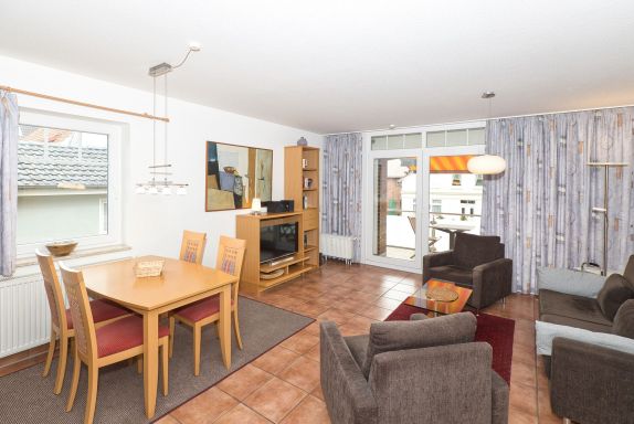 Das Apartment ist geschmackvoll eingerichtet und bietet alles, was Sie für einen erholsamen Aufenthalt benötigen. Das geräumige Schlafzimmer verfügt über einen großen Kleiderschrank und lädt zu erholsamen Nächten ein. Das Duschbad mit Fußbodenheizung und Fenster bietet Ihnen den nötigen Komfort und eine angenehme Atmosphäre.