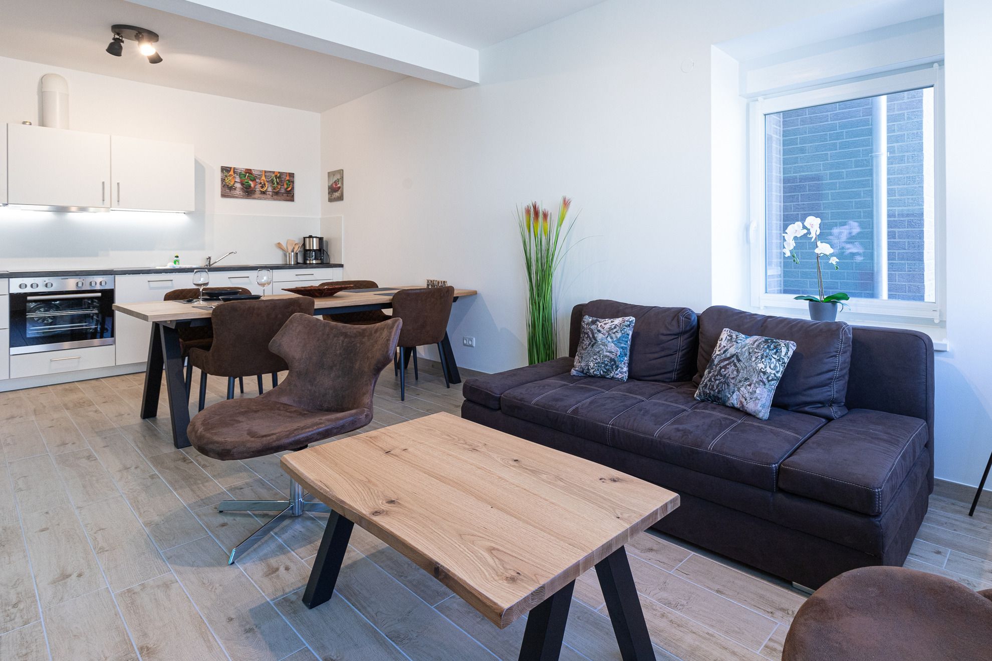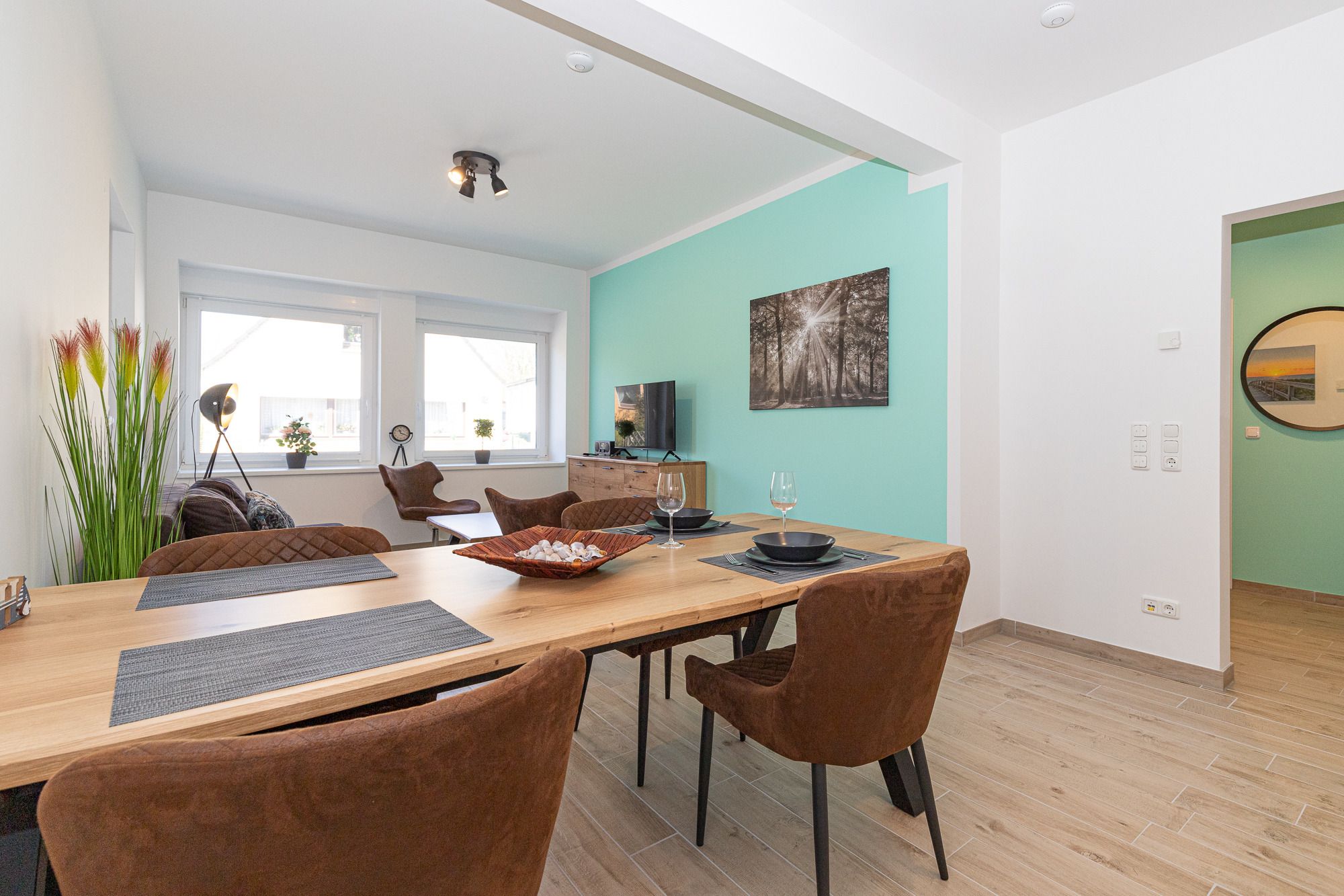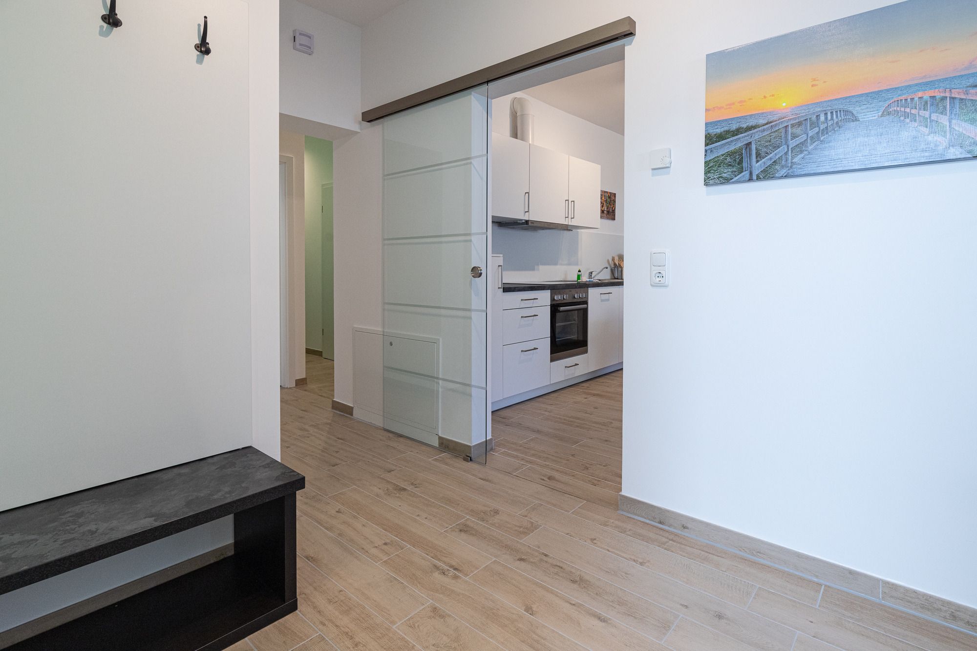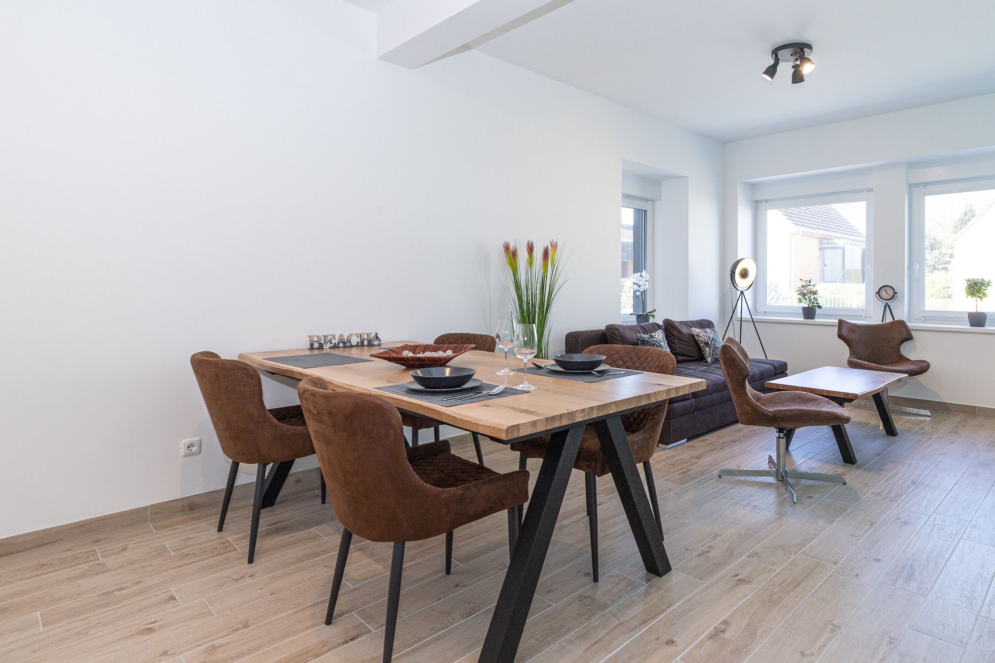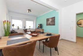 Sahlenburger Weg 17 für bis zu 4 Personen. Fußläufig zum Ortskern ist die barrierefreie, neu sanierte Wohnung ebenerdig gelegen. Sie wohnen in hellen Räumen in modernem Ambiente. Die voll ausgestattete Küche verfügt über Herd und Backofen, Kühlschrank mit Gefrierfach, Spülmaschine, Mikrowelle, Toaster, Wasserkocher und Kaffeemaschine. Das Badezimmer bietet Ihnen mit barrierefreier Dusche und Bidet allen notwendigen Komfort. Ein Schlafzimmer ist mit Doppelbett, das zweite Schlafzimmer mit einem Etagenbett funktional eingerichtet. Eine Waschmaschine finden Sie im Flur zum Fahrradraum, über den Sie auf die möblierte Terrasse gelangen. Wenn Gräser und Lavendel blühen ist es ein wohltuender Ort der Entspannung. Alle Fenster verfügen über Plissees, Rollläden und Fliegengitter. Auch können Sie einen kleinen Abstellraum, der von der Terrasse aus für Sie erreichbar ist, für Fahrrad oder Bollerwagen bzw. Kinderwagen nutzen.  Die Fußbodenheizung bietet behagliche Wärme. WLAN ist kostenfrei. Erstbezug 2021.