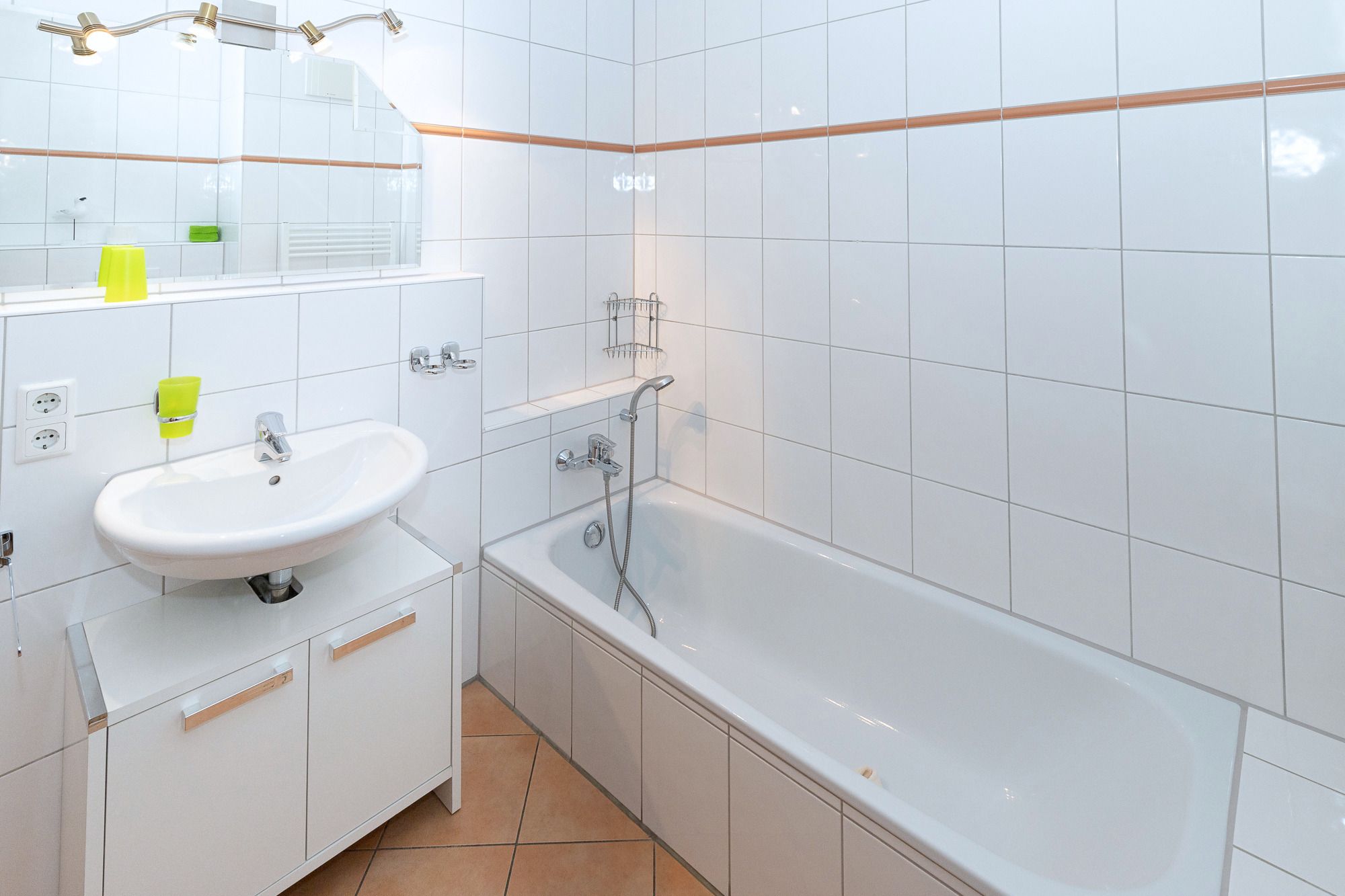 Die Wohnung verfügt über zwei moderne Bäder, eines mit Dusche und WC und das andere mit Badewanne und WC, sodass Komfort und Privatsphäre für alle Gäste gewährleistet sind.