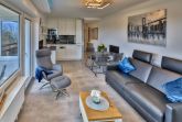 Das Appartement 77 ist ein 2-Raum-Apartment im 6. Obergeschoss für bis zu 3 Personen mit 39 qm. Der möblierte Ostbalkon mit Meerblick bietet morgens Sonne und nachmittags Schatten.